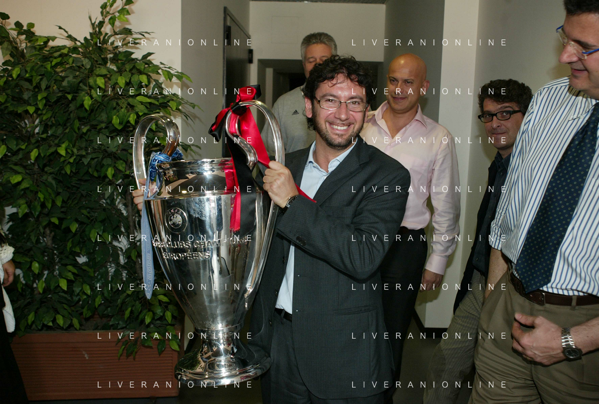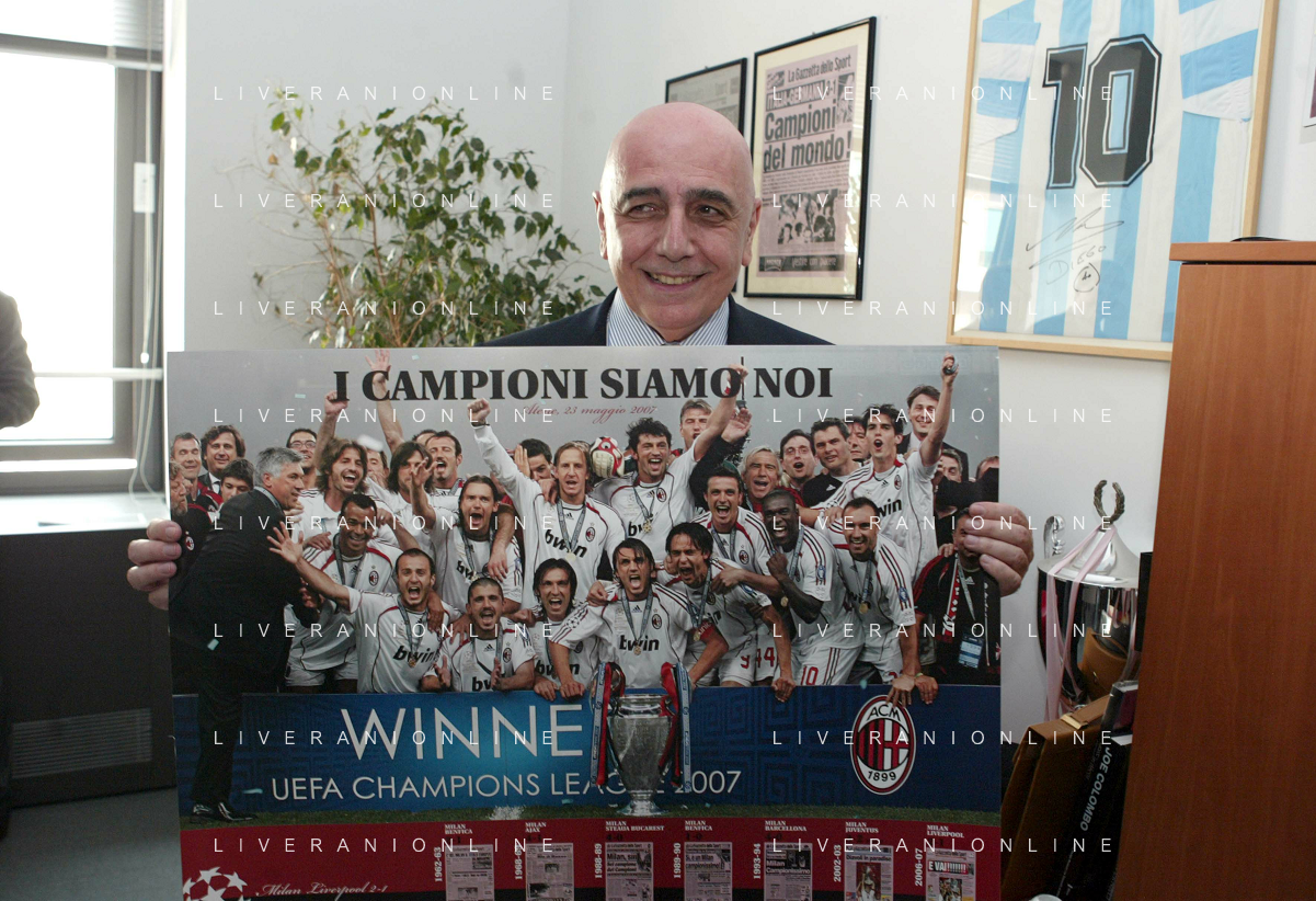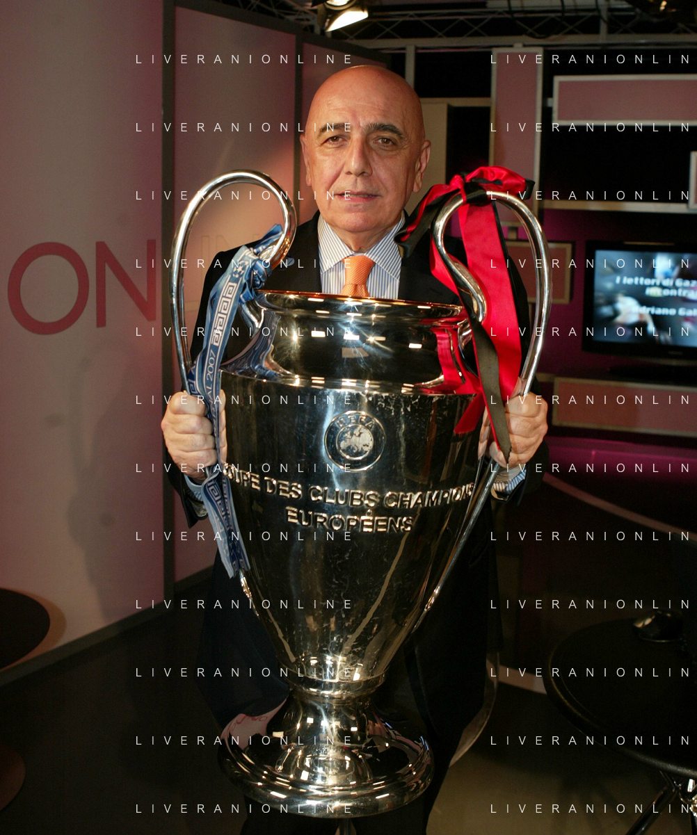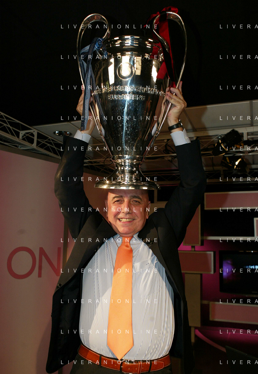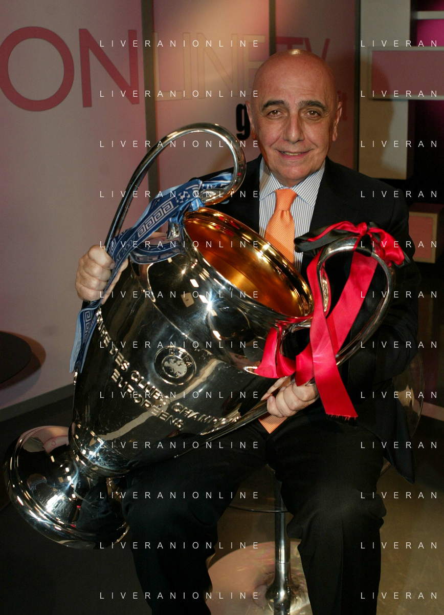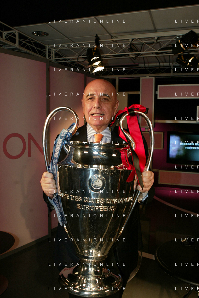 MILANO 2007- ADRIANO GALLIANO AMMNISTRATORE DEL AC MILAN PORTA LA COPPA DEI CAMPIONI VINTA AD ATENE ALLA GAZZETTA DELLO SPORT DI VIA SOLFERINO 28 MILANO NELLA FOTO ADRIANO GALLIANI CON LA COPPA DEI CAMPIONI AG ALDO LIVERANI