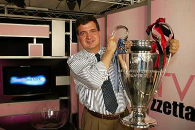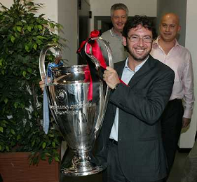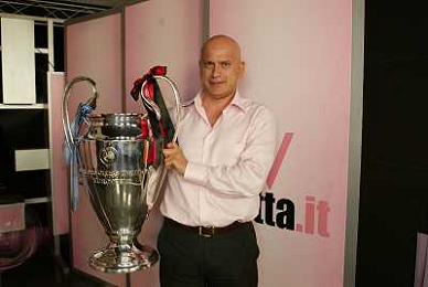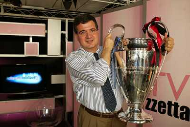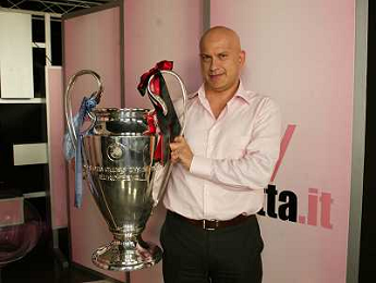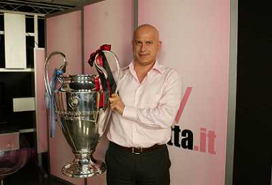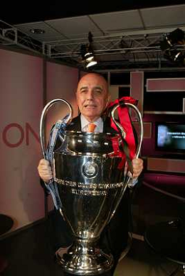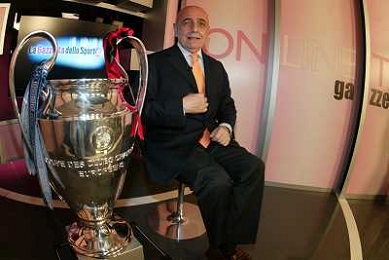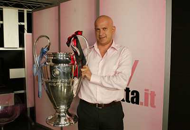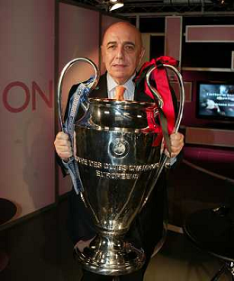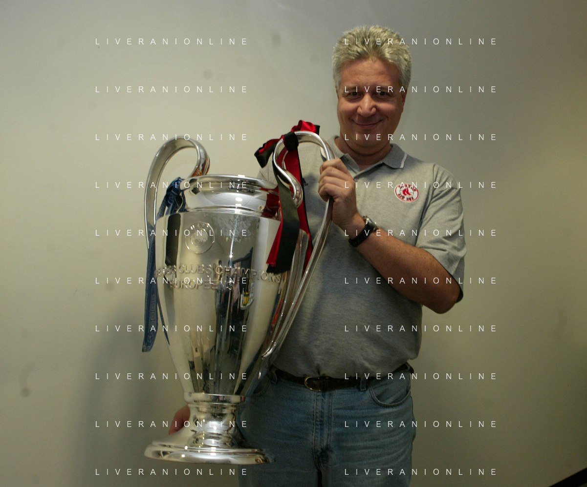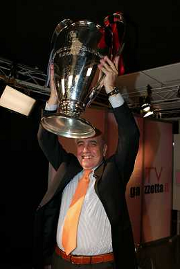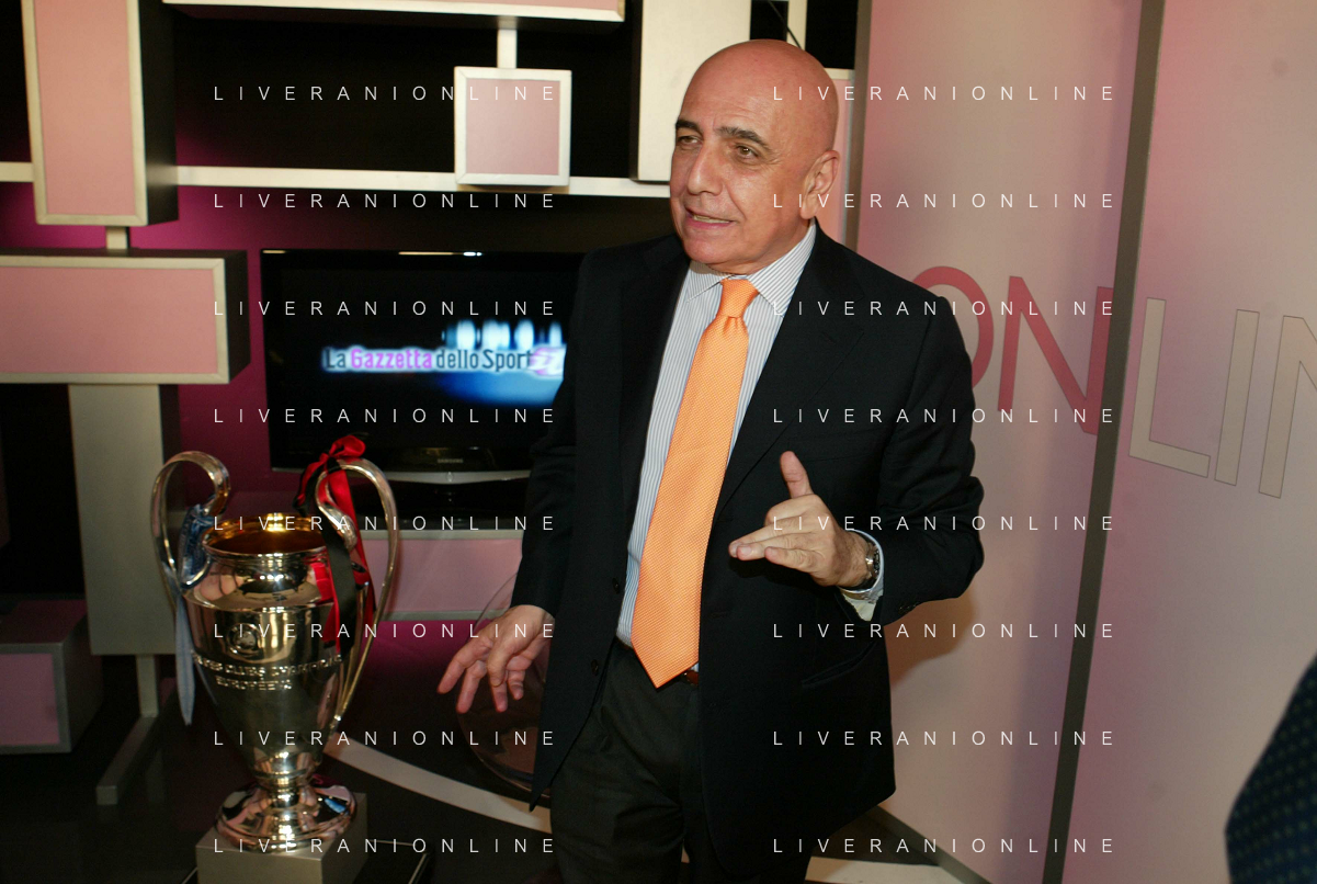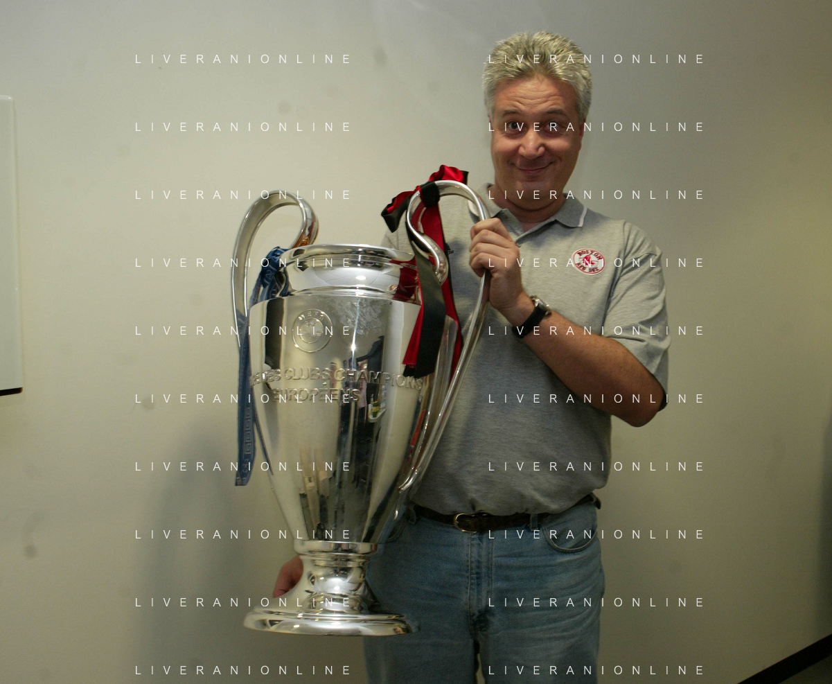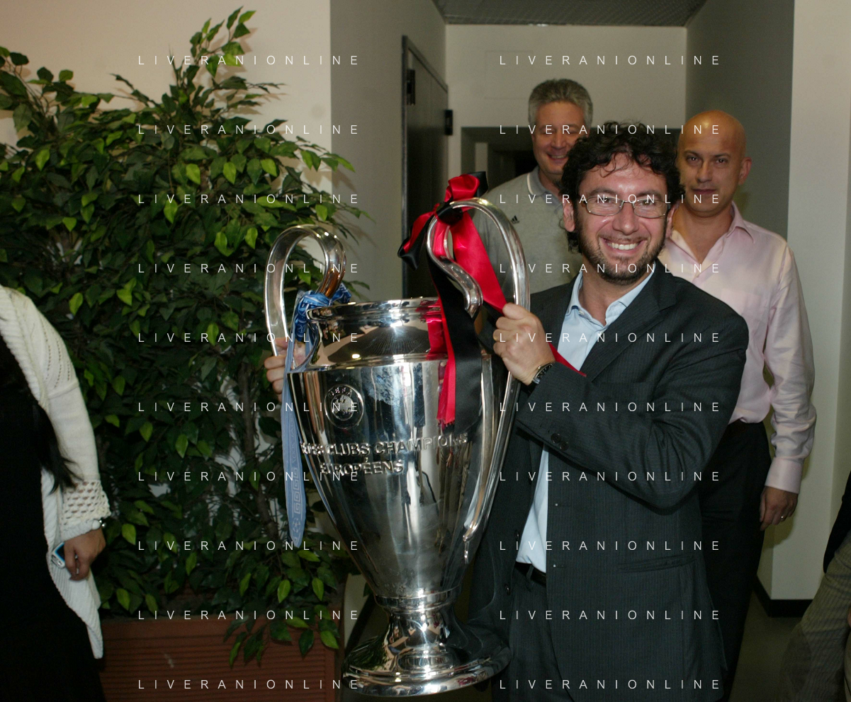MILANO 2007- ADRIANO GALLIANO AMMNISTRATORE DEL AC MILAN PORTA LA COPPA DEI CAMPIONI VINTA AD ATENE ALLA GAZZETTA DELLO SPORT DI VIA SOLFERINO 28 MILANO NELLA FOTO ADRIANO GALLIANI CON LA COPPA DEI CAMPIONI AG ALDO LIVERANI