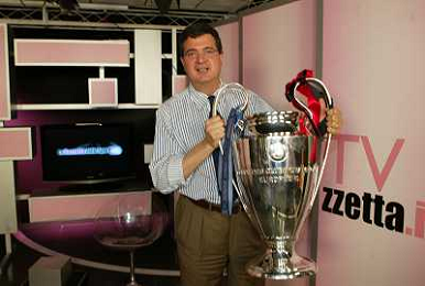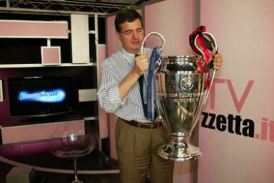 MILANO 2007- ADRIANO GALLIANO AMMNISTRATORE DEL AC MILAN PORTA LA COPPA DEI CAMPIONI VINTA AD ATENE ALLA GAZZETTA DELLO SPORT DI VIA SOLFERINO 28 MILANO NELLA FOTO UMBERTO ZAPELLONI VICE DIRETTORE DELLA GAZZETTA DELLO SPORT AG ALDO LIVERANI