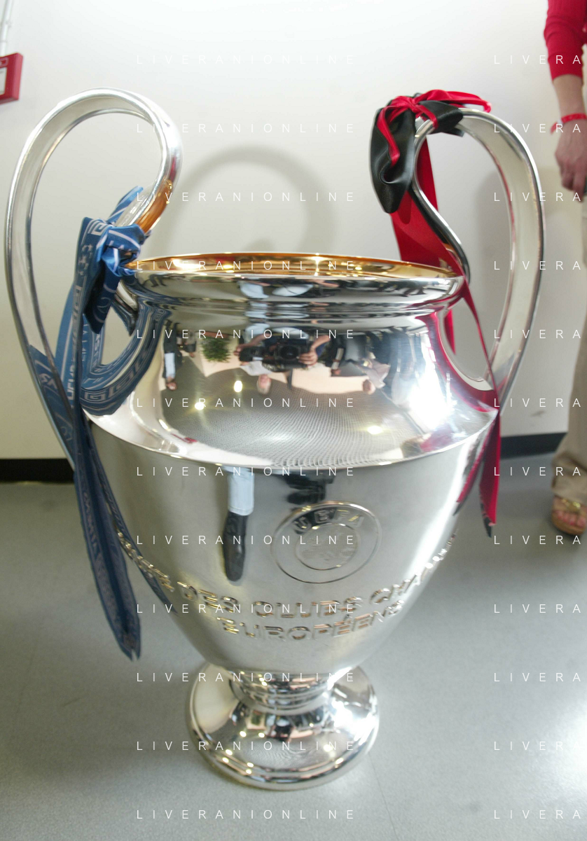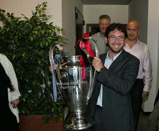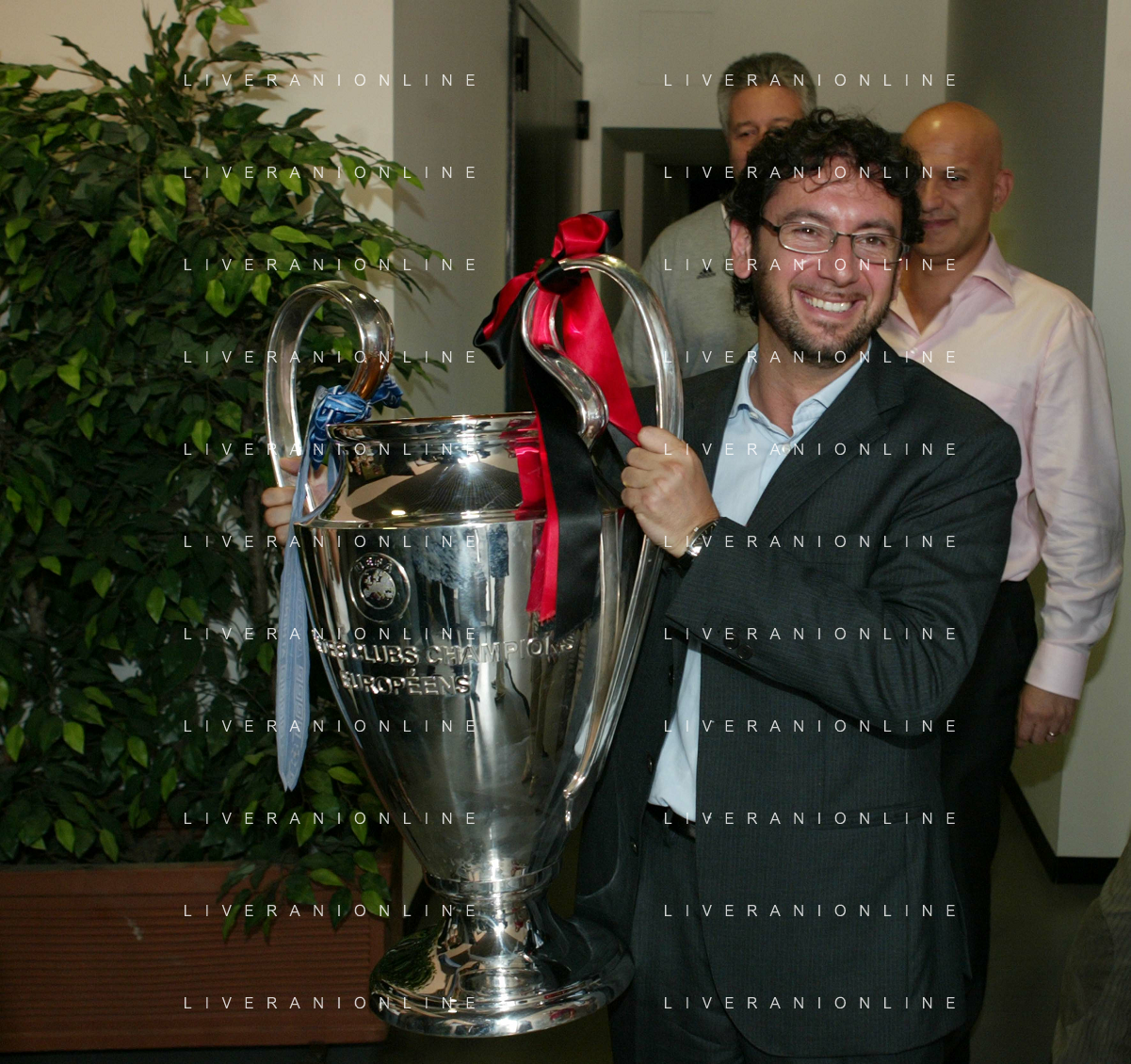 MILANO 2007- ADRIANO GALLIANO AMMNISTRATORE DEL AC MILAN PORTA LA COPPA DEI CAMPIONI VINTA AD ATENE ALLA GAZZETTA DELLO SPORT DI VIA SOLFERINO 28 MILANO NELLA FOTO LA COPPA DEI CAMPIONI AG ALDO LIVERANI