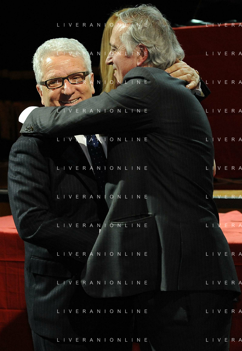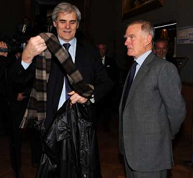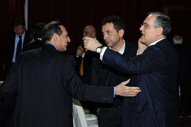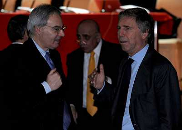 Assemblea Ordinaria Lega Calcio Serie A Desenzano del Garda (Brescia) - 19.12.2011 Nella Foto:beretta e abete al tavolo dell'assemblea /Ph.Vitez-Ag. Aldo Liverani