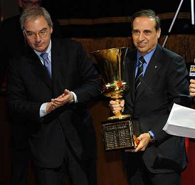 Assemblea Ordinaria Lega Calcio Serie A Desenzano del Garda (Brescia) - 19.12.2011 Nella Foto:paolillo con la coppa italia /Ph.Vitez-Ag. Aldo Liverani