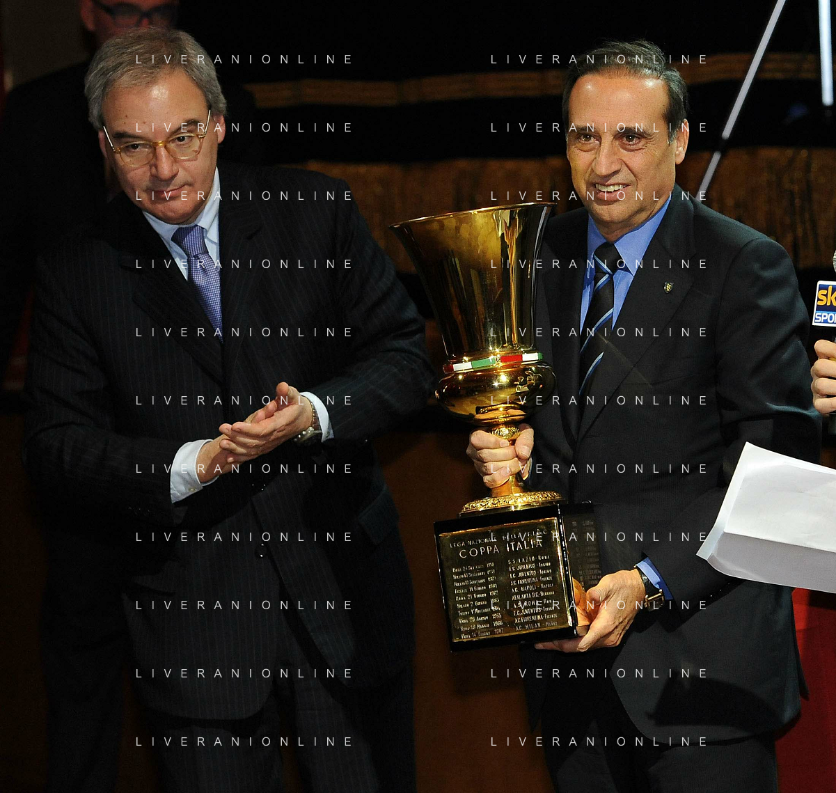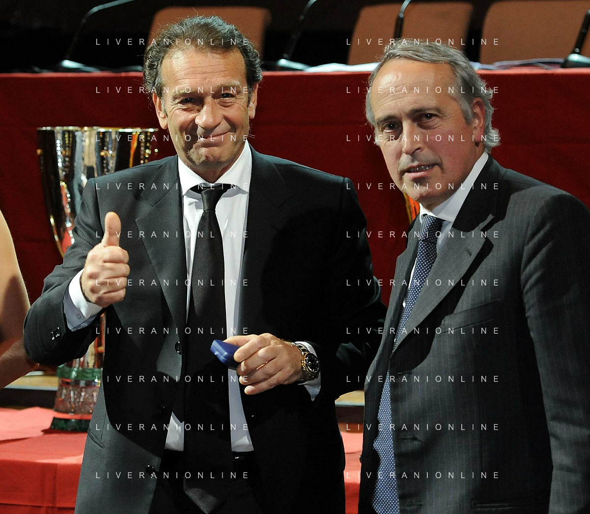 Assemblea Ordinaria Lega Calcio Serie A Desenzano del Garda (Brescia) - 19.12.2011 Nella Foto:braida e galliani con la supercoppa /Ph.Vitez-Ag. Aldo Liverani