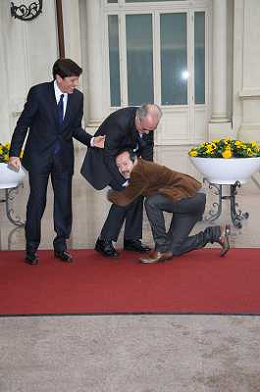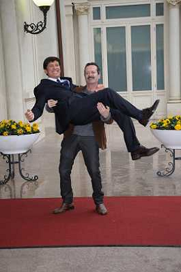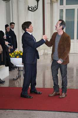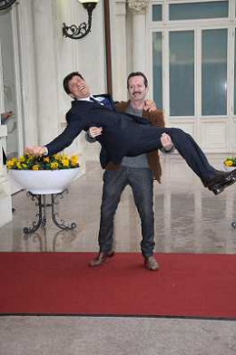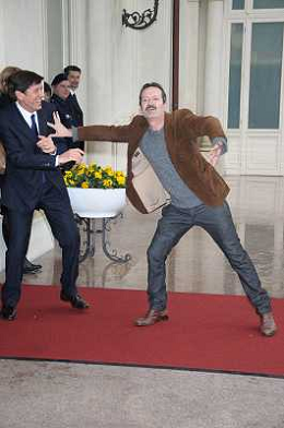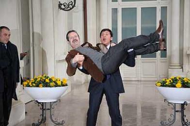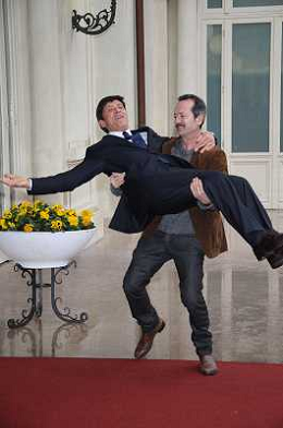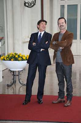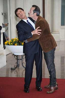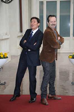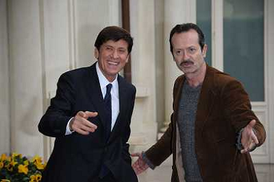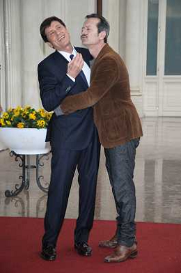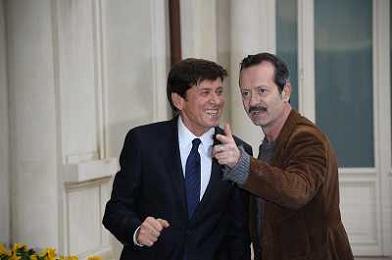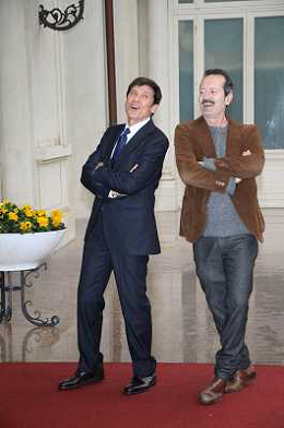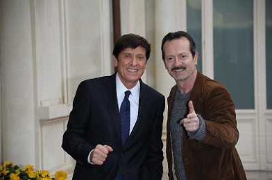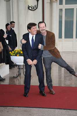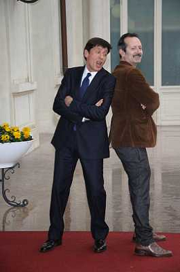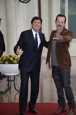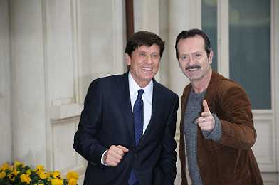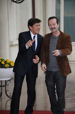 Conferenza stampa di presentazione della 62ma edizione del Festival della Canzone Italiana di Sanremo 31-01-2012 nella foto Gianni Morandi con Rocco Papaleo ©Gazzaniga/Agenzia Aldo Liverani Sas