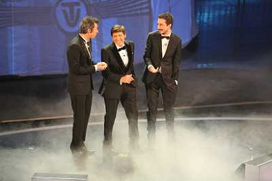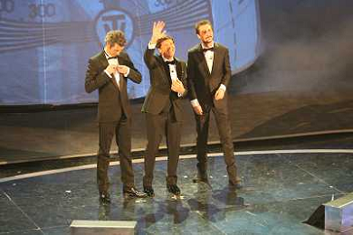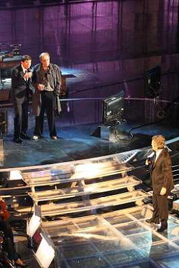 SANREMO: 62mo FESTIVAL DELLA CANZONE ITALIANA - PRIMA SERATA 14/02/2012 NELLA FOTO GIANNI MORANDI CON LUCA BIZZARRI E PAOLO KESSISOGLU ©GAZZANIGA/AGENZIA ALDO LIVERANI SAS