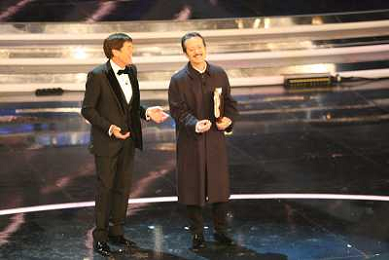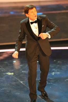 SANREMO: 62mo FESTIVAL DELLA CANZONE ITALIANA - PRIMA SERATA 14/02/2012 NELLA FOTO GIANNI MORANDI CON ELISABETTA CANALIS ©GAZZANIGA/AGENZIA ALDO LIVERANI SAS