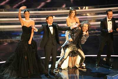 SANREMO: 62mo FESTIVAL DELLA CANZONE ITALIANA - PRIMA SERATA 14/02/2012 NELLA FOTO GIANNI MORANDI E ELISABETTA CANALIS ©GAZZANIGA/AGENZIA ALDO LIVERANI SAS