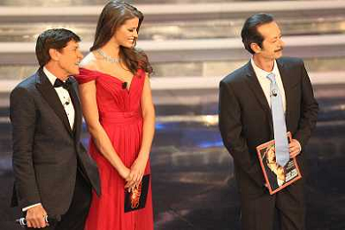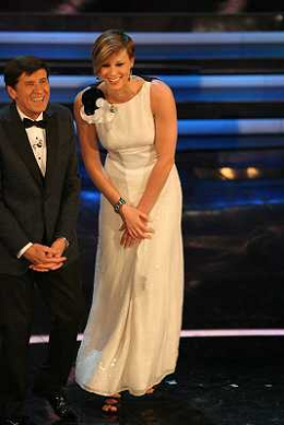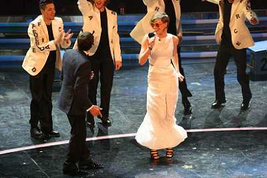 SANREMO: 62mo FESTIVAL DELLA CANZONE ITALIANA - TERZA SERATA 16/02/2012 NELLA FOTO IVANKA MRAZOVA CON GIANNI MORANDI ©GAZZANIGA/AGENZIA ALDO LIVERANI SAS