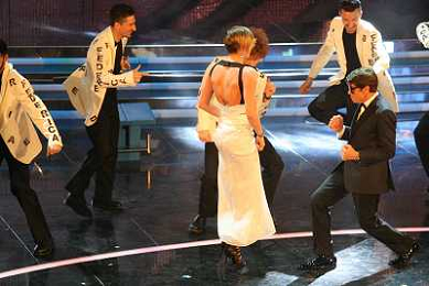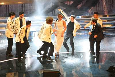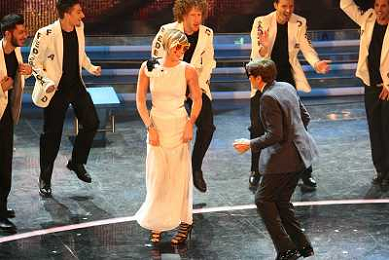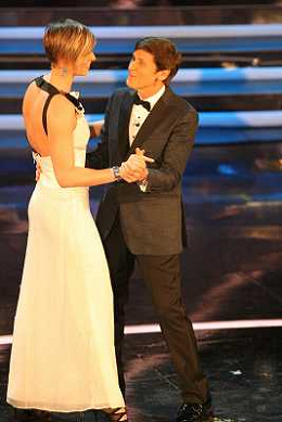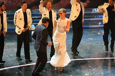 SANREMO: 62mo FESTIVAL DELLA CANZONE ITALIANA - TERZA SERATA 16/02/2012 NELLA FOTO FEDERICA PELLEGRINI CON GIANNI MORANDI DURANTE IL BALLETTO ©GAZZANIGA/AGENZIA ALDO LIVERANI SAS