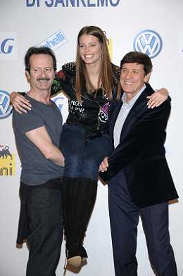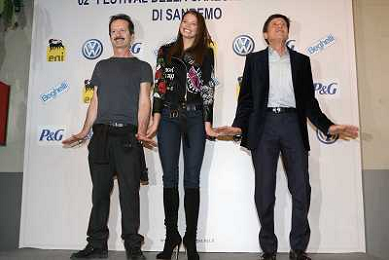 SANREMO: 62mo CONFERENZA STAMPA FESTIVAL DELLA CANZONE ITALIANA - 18/02/2012 NELLA FOTO INANKA MRAZOVA CON GIANNI MORANDI E ROCCO PAPALEO ©GAZZANIGA/AGENZIA ALDO LIVERANI SAS