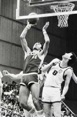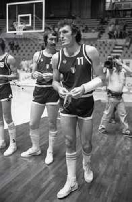 NEG-RETROSPETTIVA DINO MENEGHIN BASKET NELLA FOTO DINO MENEGHIN CON LA MAGLIA DELLA NAZIONALE ITALIANA ALLE OLIMPIADI DI MOSCA ANNO 1980 AG ALDO LIVERANI SAS