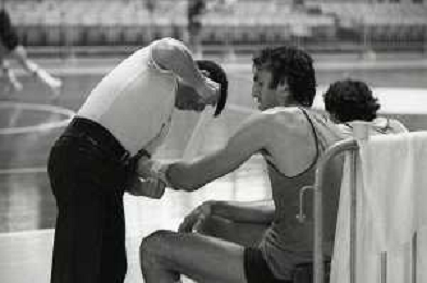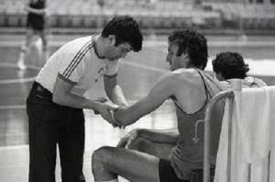 NEG-RETROSPETTIVA DINO MENEGHIN BASKET NELLA FOTO DINO MENEGHIN ALLA CLINICA PIO X PER LE VISITE MEDICHE STAGIONALI A MILANO NELL'ANNO 1981-82 AG ALDO LIVERANI SAS