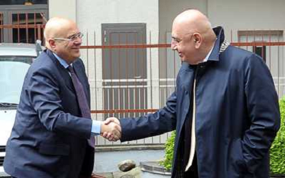 MILANO 20/4/2012 VIA ROSELLINI, 4 RIUNIONE LEGA CALCIO SERIE A NELLA FOTO ADRIANO GALLIANI E PIERPAOLO MARINO FOTO ROMANO/AG ALDO LIVERANI