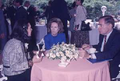 DIAP-RETROSPETTIVA LAURA BIAGIOTTI STILISTA NELLA FOTO LAURA BIAGIOTTI A MILANO NELL'ANNO 1987 CON ROMEO DALLA CHIESA AG ALDO LIVERANI SAS
