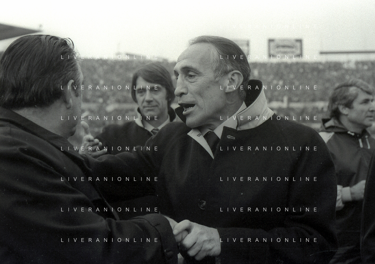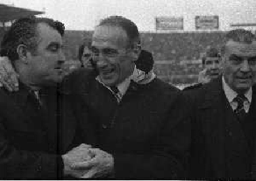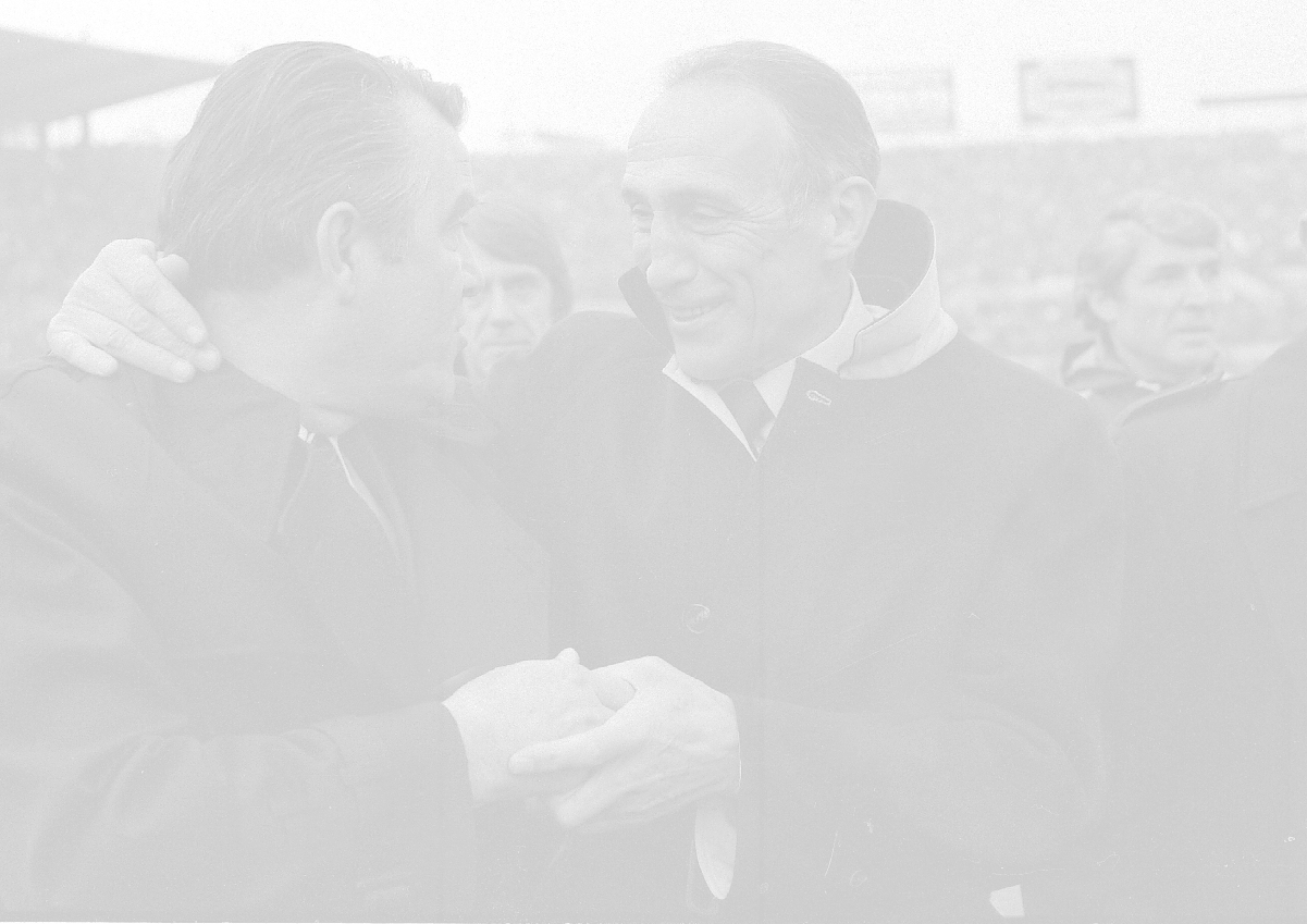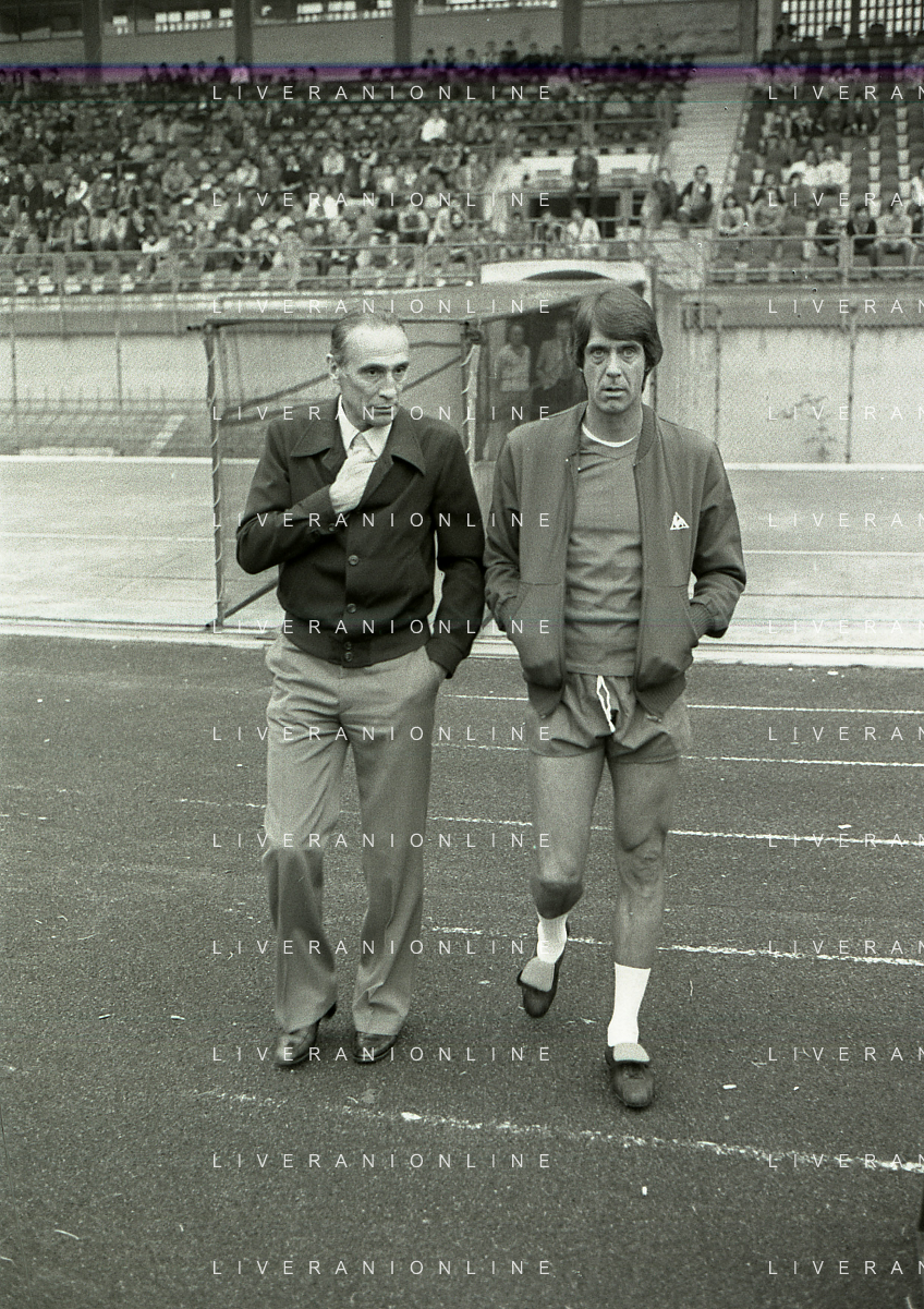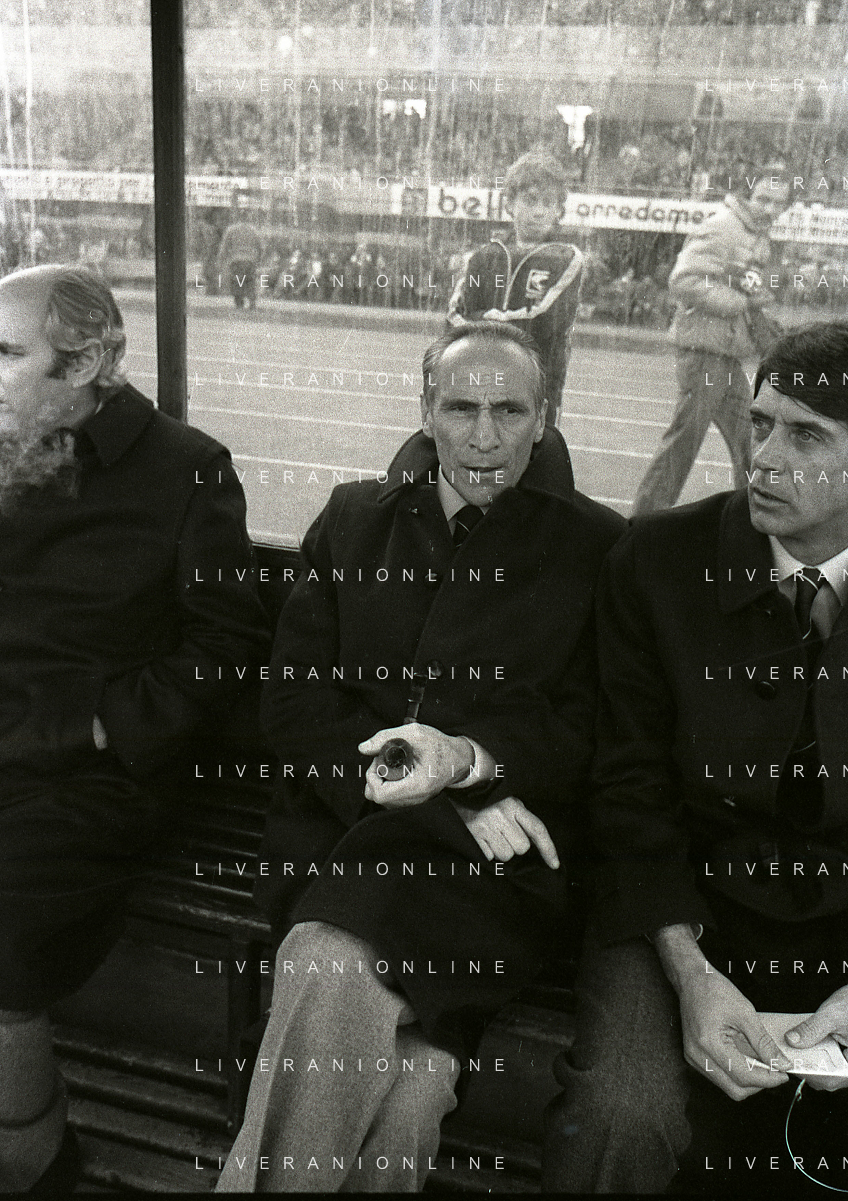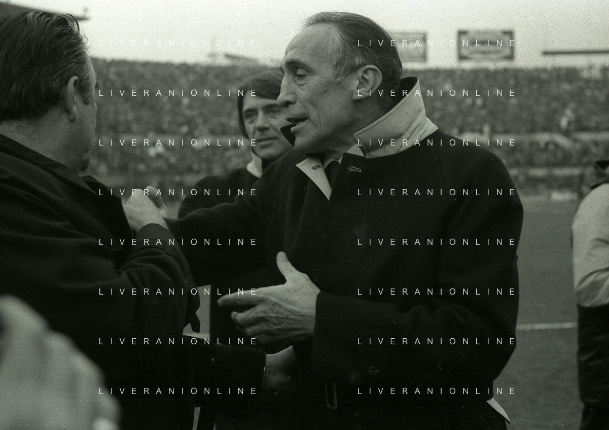 RETROSPETTIVA ENZO BEARZOT ALLENATORE NAZIONALE ITALIANA CALCIO NELLA FOTO ENZO BEARZOT NELL'ANNO 198O A TORINO NELLA PARTITA ITALIA-JUGOSLAVIA CON L'ALLENATORE DELLA NAZIONALE JOGOSLAVIA Miljan Miljanić AG ALDO LIVERANI SAS