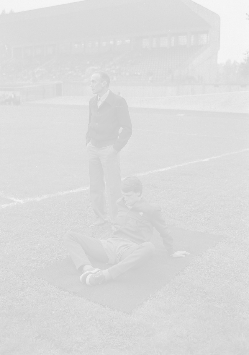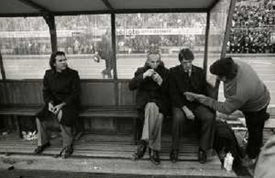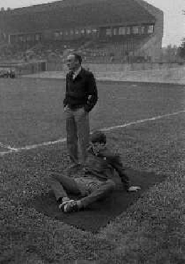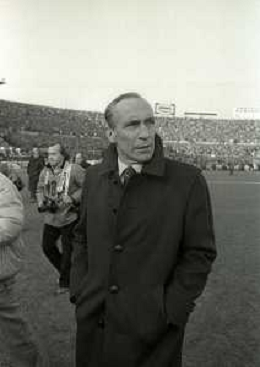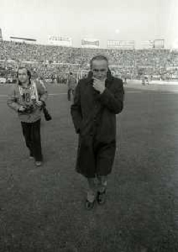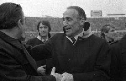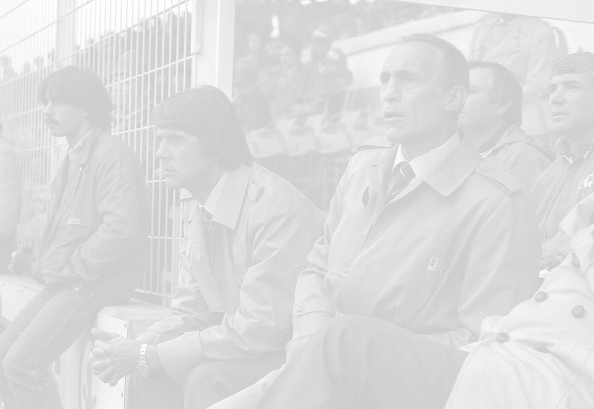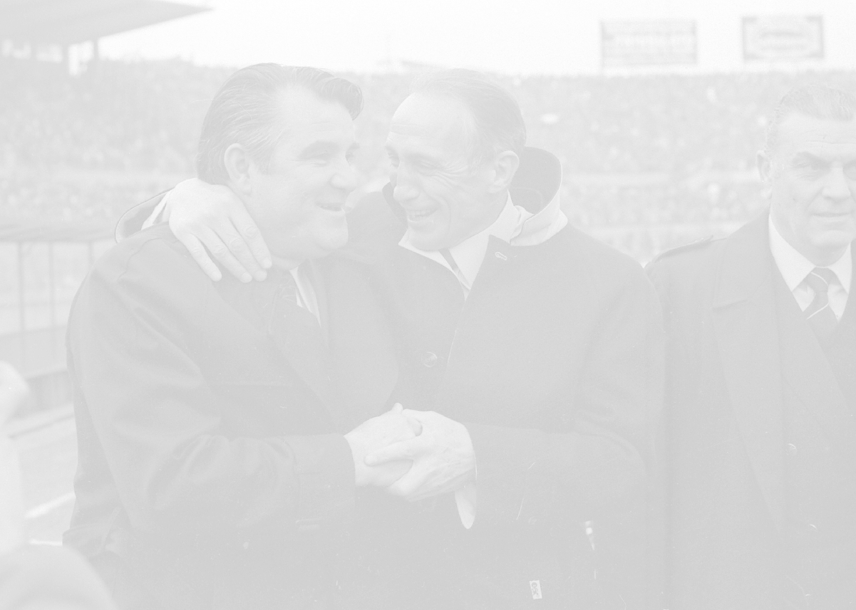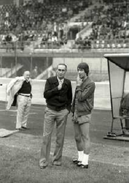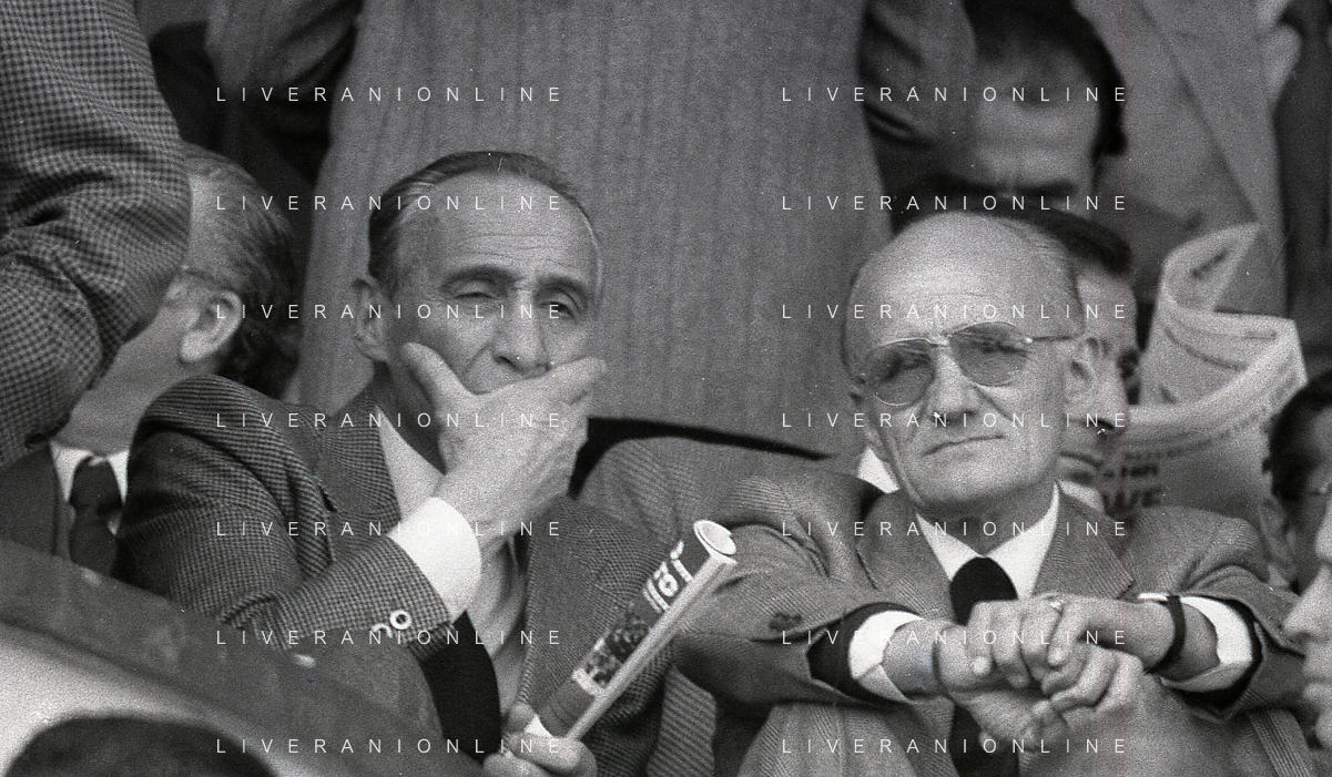 RETROSPETTIVA ENZO BEARZOT ALLENATORE NAZIONALE ITALIANA CALCIO NELLA FOTO ENZO BEARZOT NELL'ANNO 198O A TORINO NELLA PARTITA ITALIA-JUGOSLAVIA CON L'ALLENATORE DELLA NAZIONALE JOGOSLAVIA Miljan Miljanić AG ALDO LIVERANI SAS