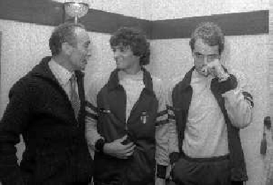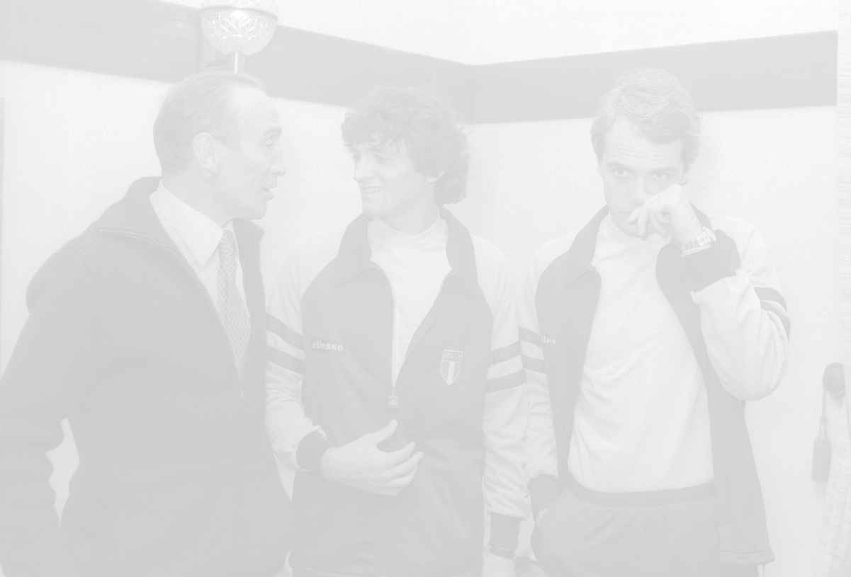 RETROSPETTIVA ENZO BEARZOT ALLENATORE NAZIONALE ITALIANA CALCIO NELLA FOTO ENZO BEARZOT NELL'ANNO 198O CON ALESSANDRO ALTOBELLI E ROBERTO BETTEGA AG ALDO LIVERANI SAS