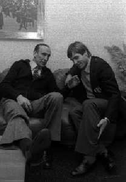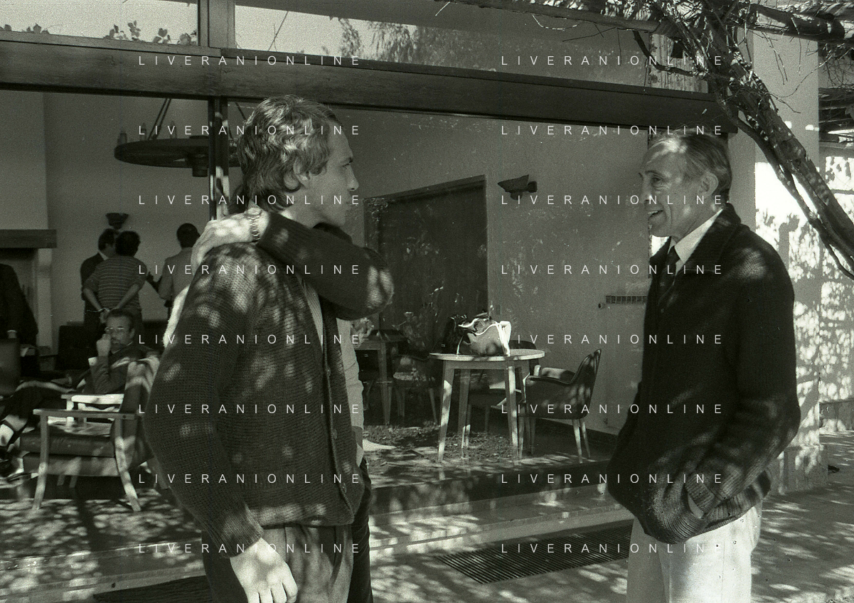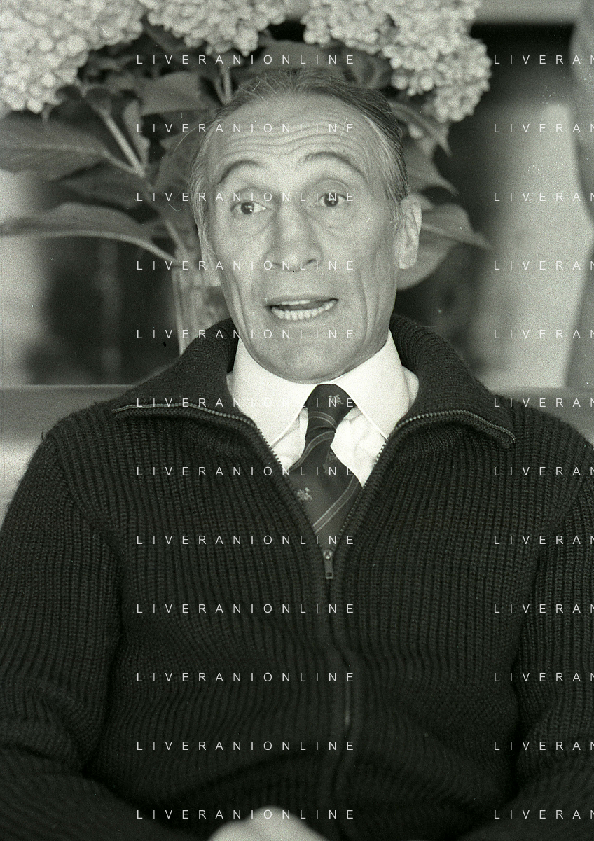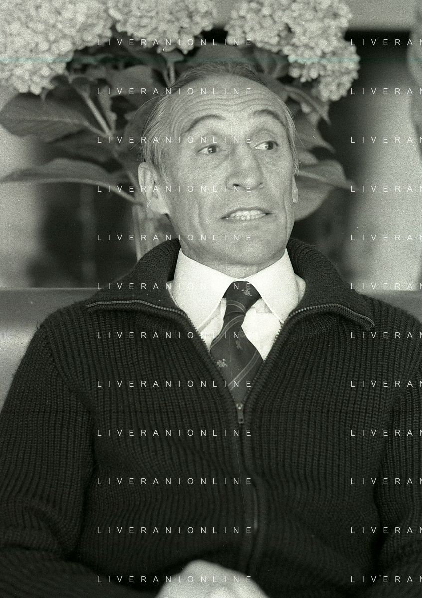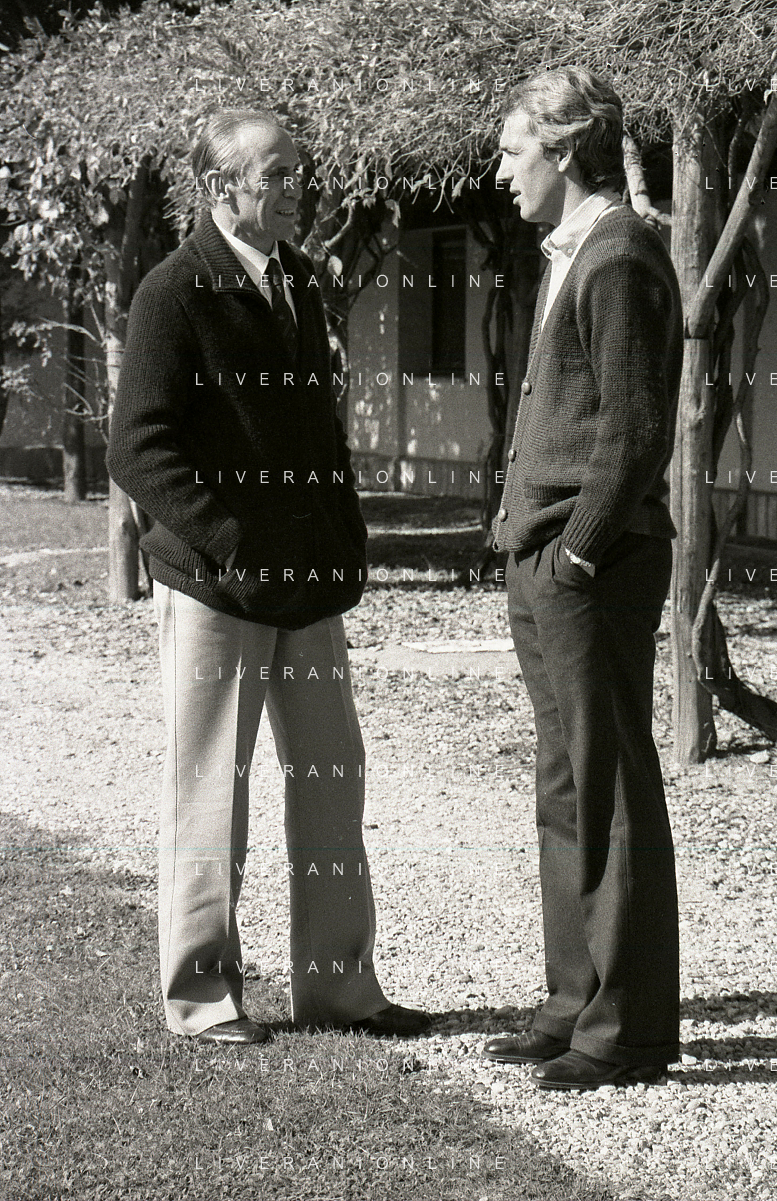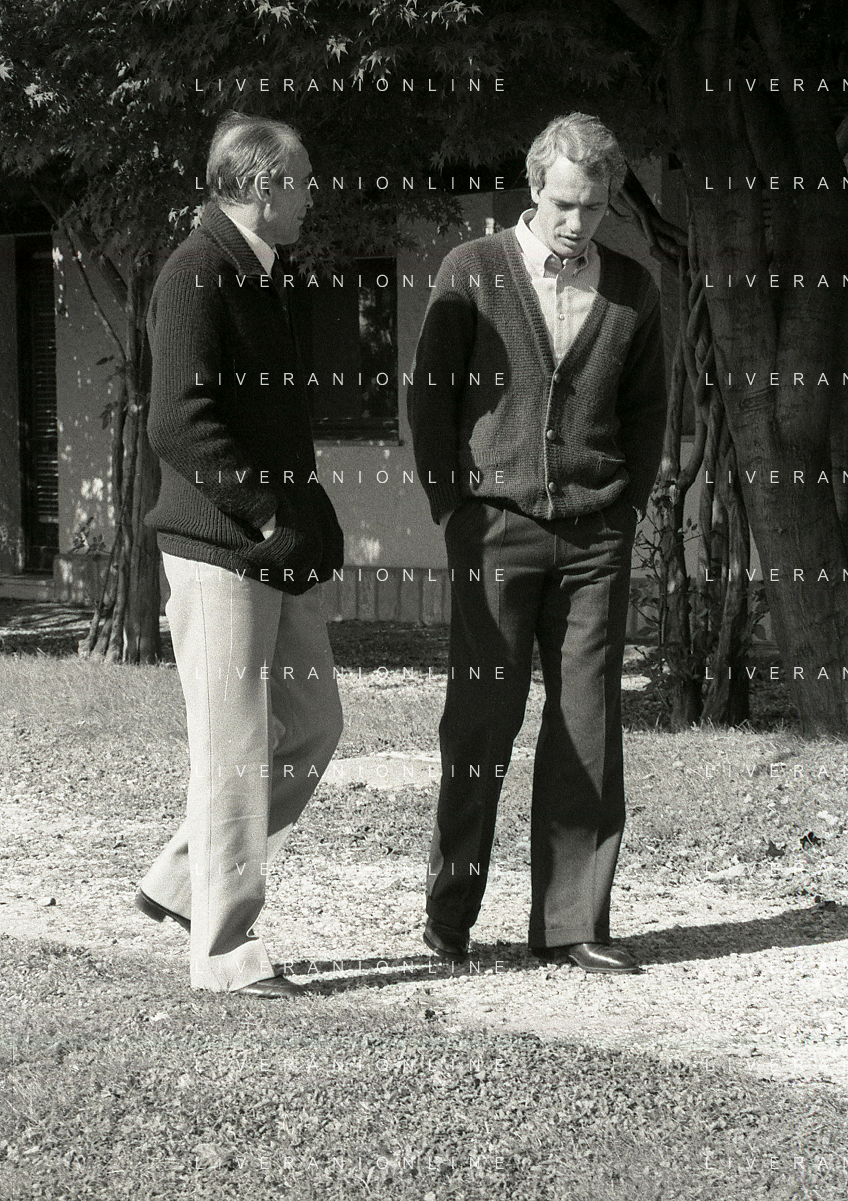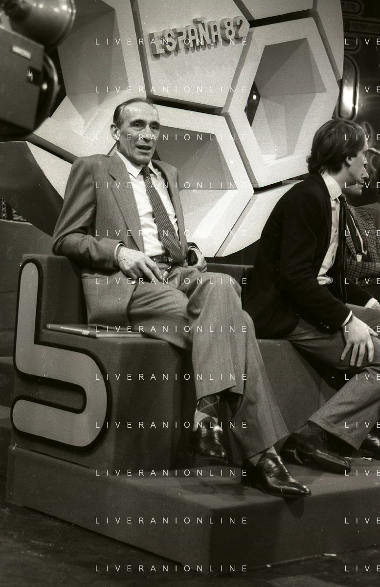 RETROSPETTIVA ENZO BEARZOT ALLENATORE NAZIONALE ITALIANA CALCIO NELLA FOTO ENZO BEARZOT NELL'ANNO 198O CON IL GIORNALISTA GIGI GARANZINI AG ALDO LIVERANI SAS