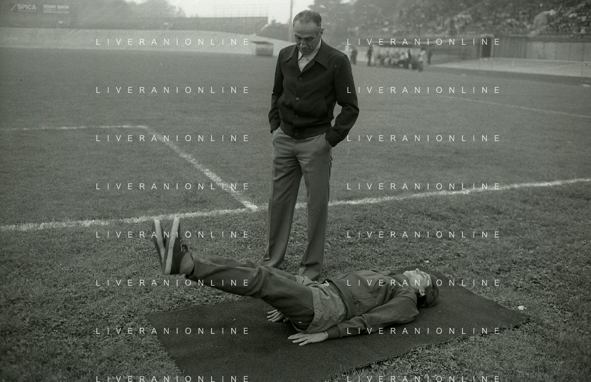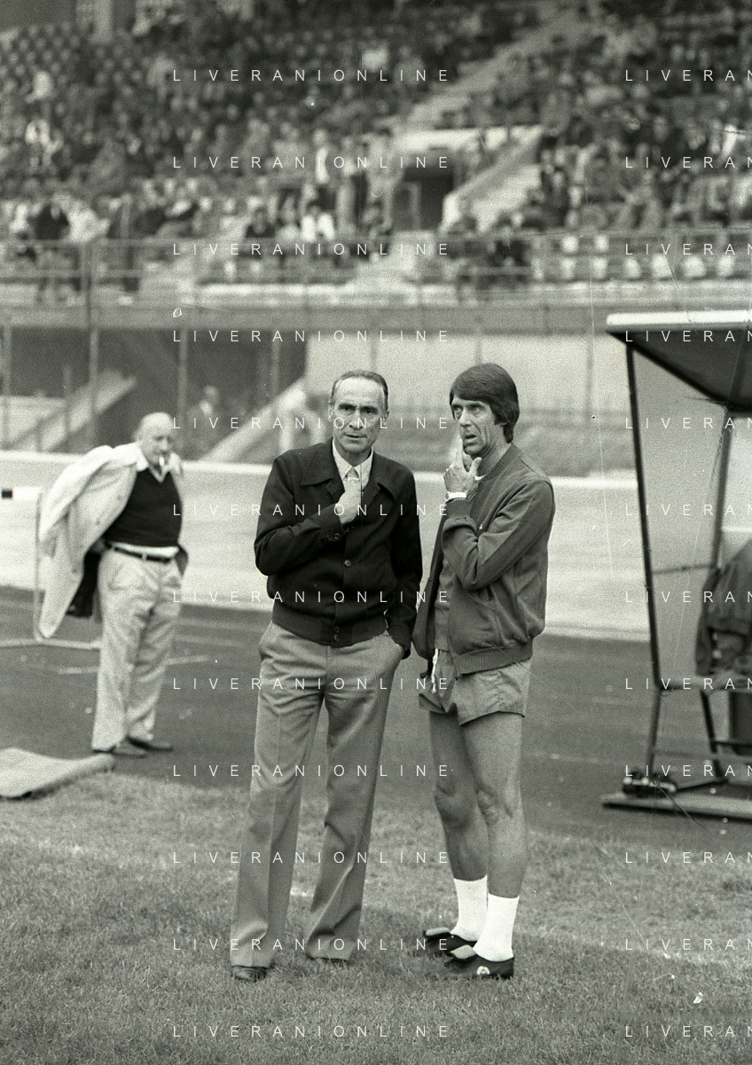 RETROSPETTIVA ENZO BEARZOT ALLENATORE NAZIONALE ITALIANA CALCIO NELLA FOTO ENZO BEARZOT NELL'ANNO 1981 -1982 A MILANELLO CON ROBERTO BETTEGA AG ALDO LIVERANI SAS