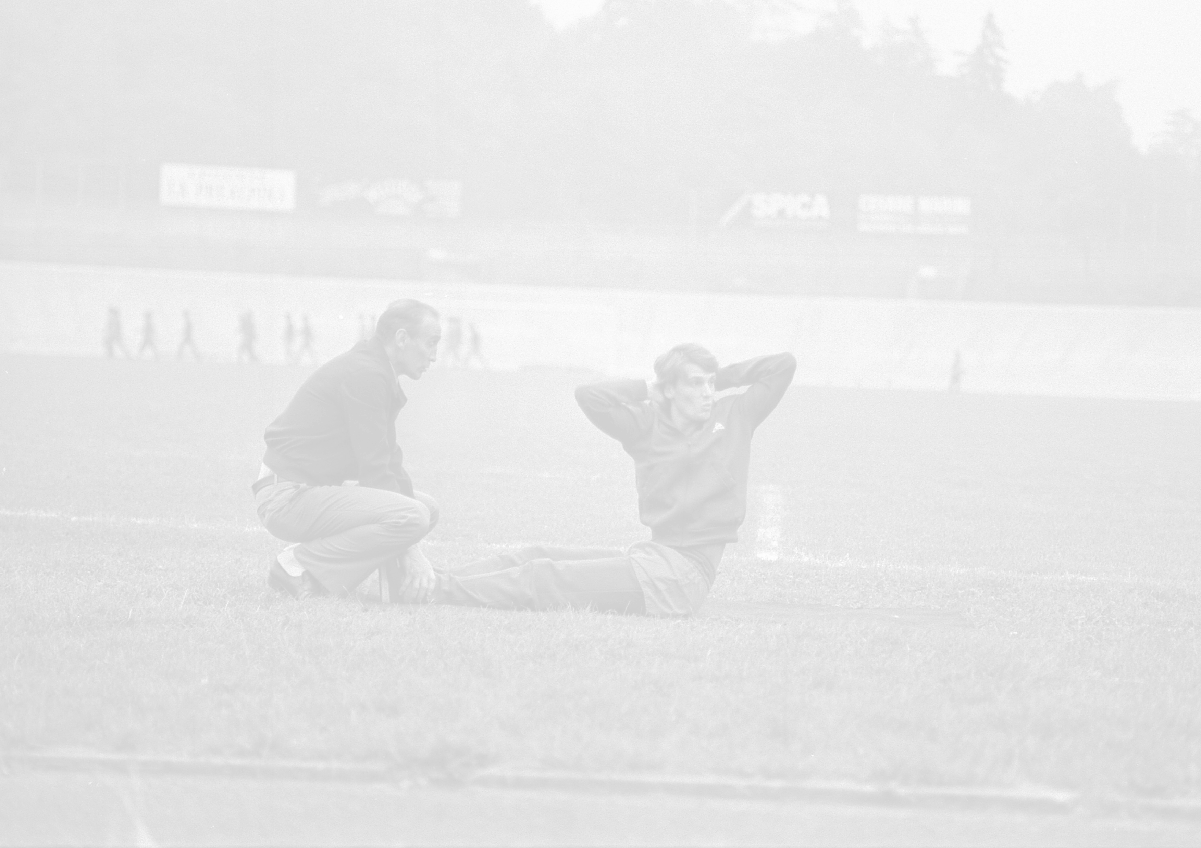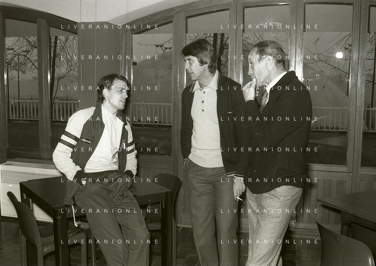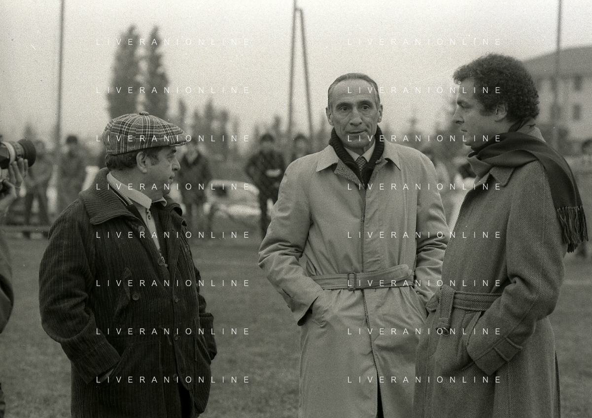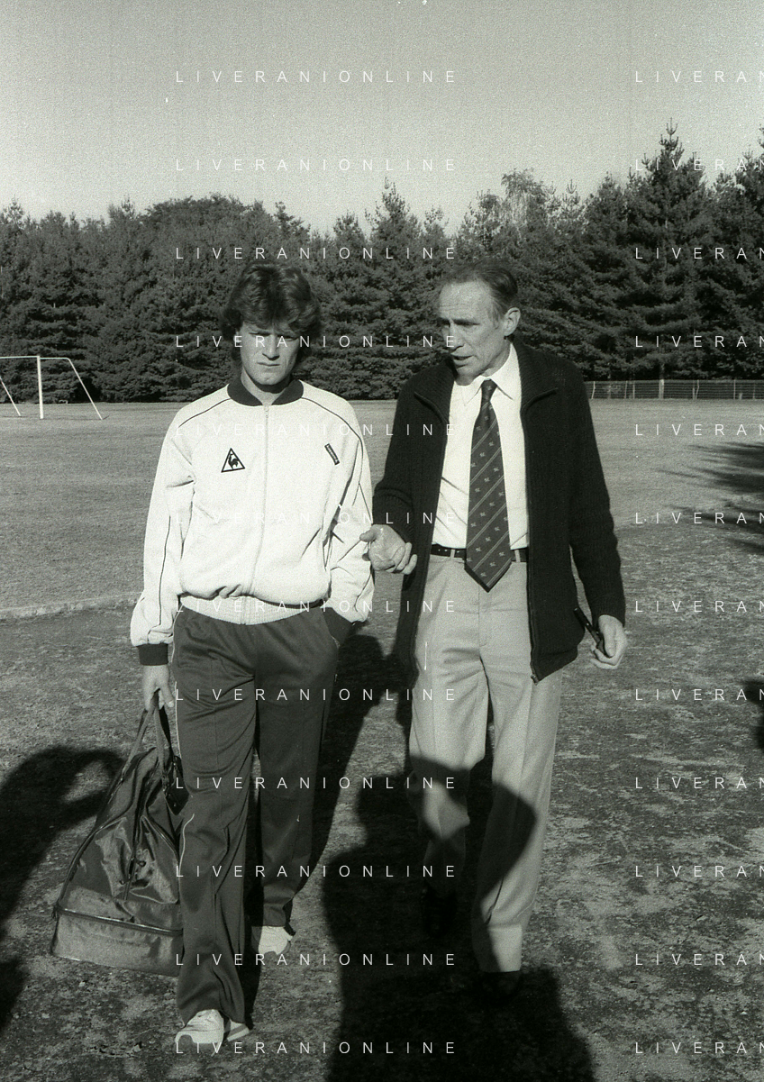 RETROSPETTIVA ENZO BEARZOT ALLENATORE NAZIONALE ITALIANA CALCIO NELLA FOTO ENZO BEARZOT NELL'ANNO 1981 -1982 A MILANELLO CON GIANCARLO ANTOGNONI AG ALDO LIVERANI SAS