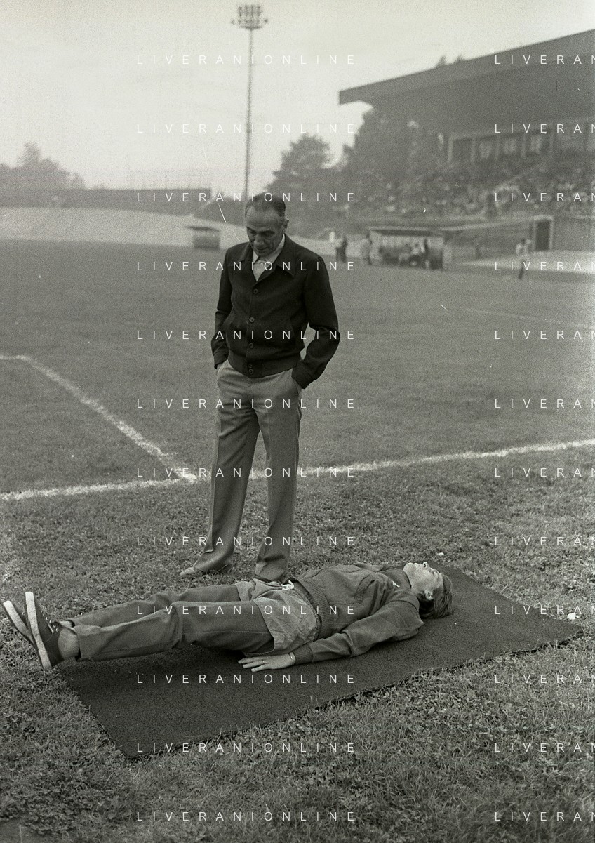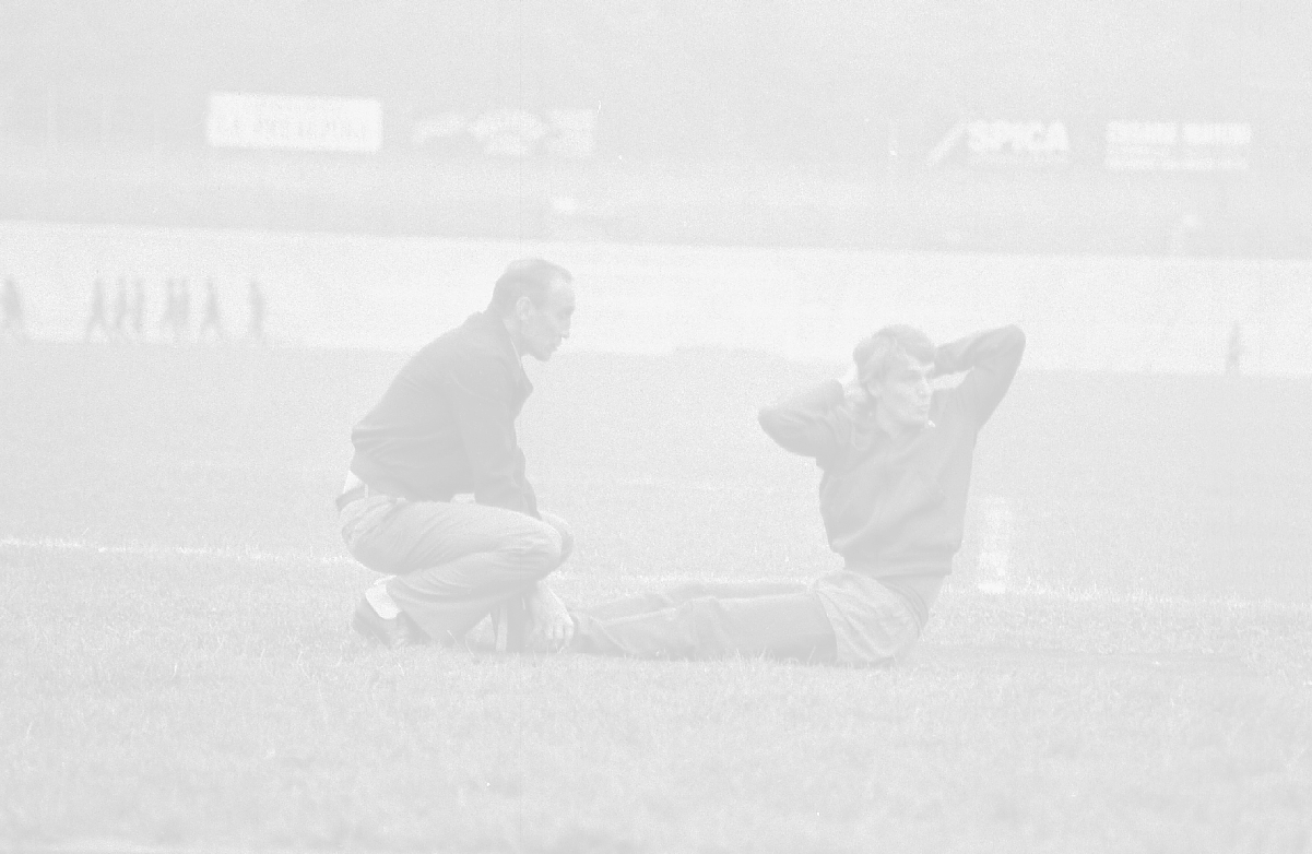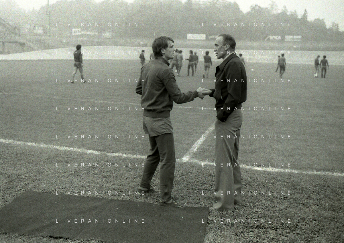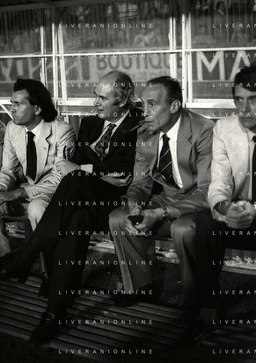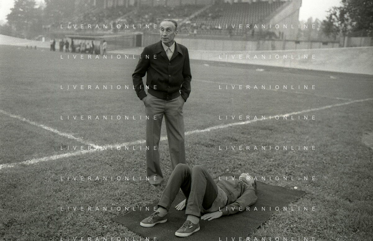 RETROSPETTIVA ENZO BEARZOT ALLENATORE NAZIONALE ITALIANA CALCIO NELLA FOTO ENZO BEARZOT NELL'ANNO 1981 -1982 A MILANELLO CON GIANCARLO ANTOGNONI AG ALDO LIVERANI SAS