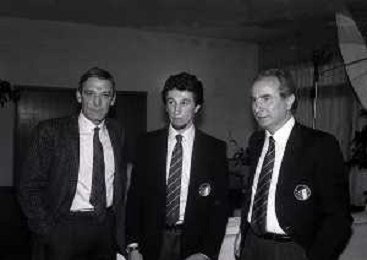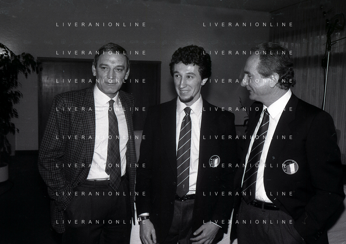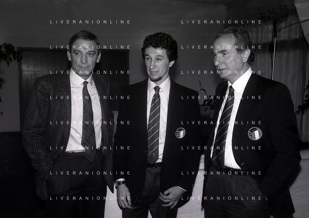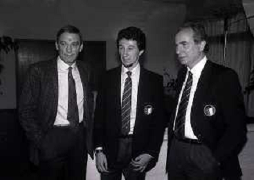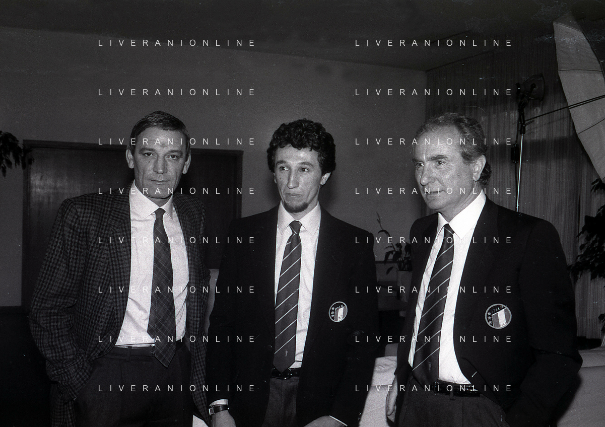 RETROSPETTIVA GIGI RIVA EX CALCIATORE E DIRIGENTE NAZIONALE ITALIANA CALCIO NELLA FOTO GIGI RIVA CON LUCA FUSI E AZEGLIO VICINI AG ALDO LIVERANI SAS