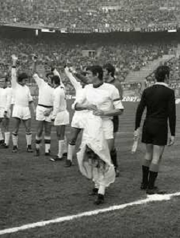 RETROSPETTIVA GIGI RIVA CALCIATORE NELLA FOTO GIGI RIVA CON LA MAGLIA DELLA NAZIONALE ITALIANA CON ROMEO BENETTI E FABIO CAPELLO AG ALDO LIVERANI SAS