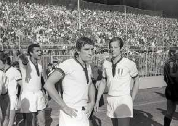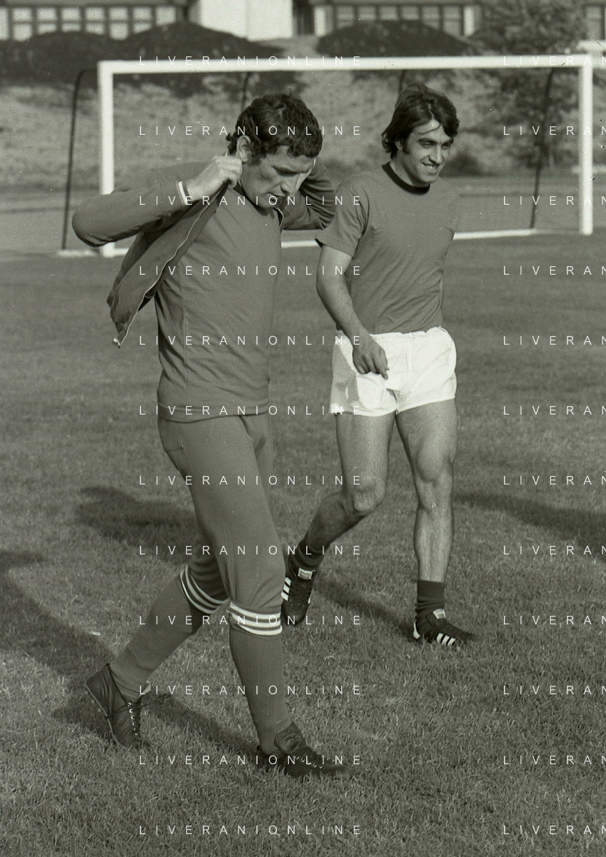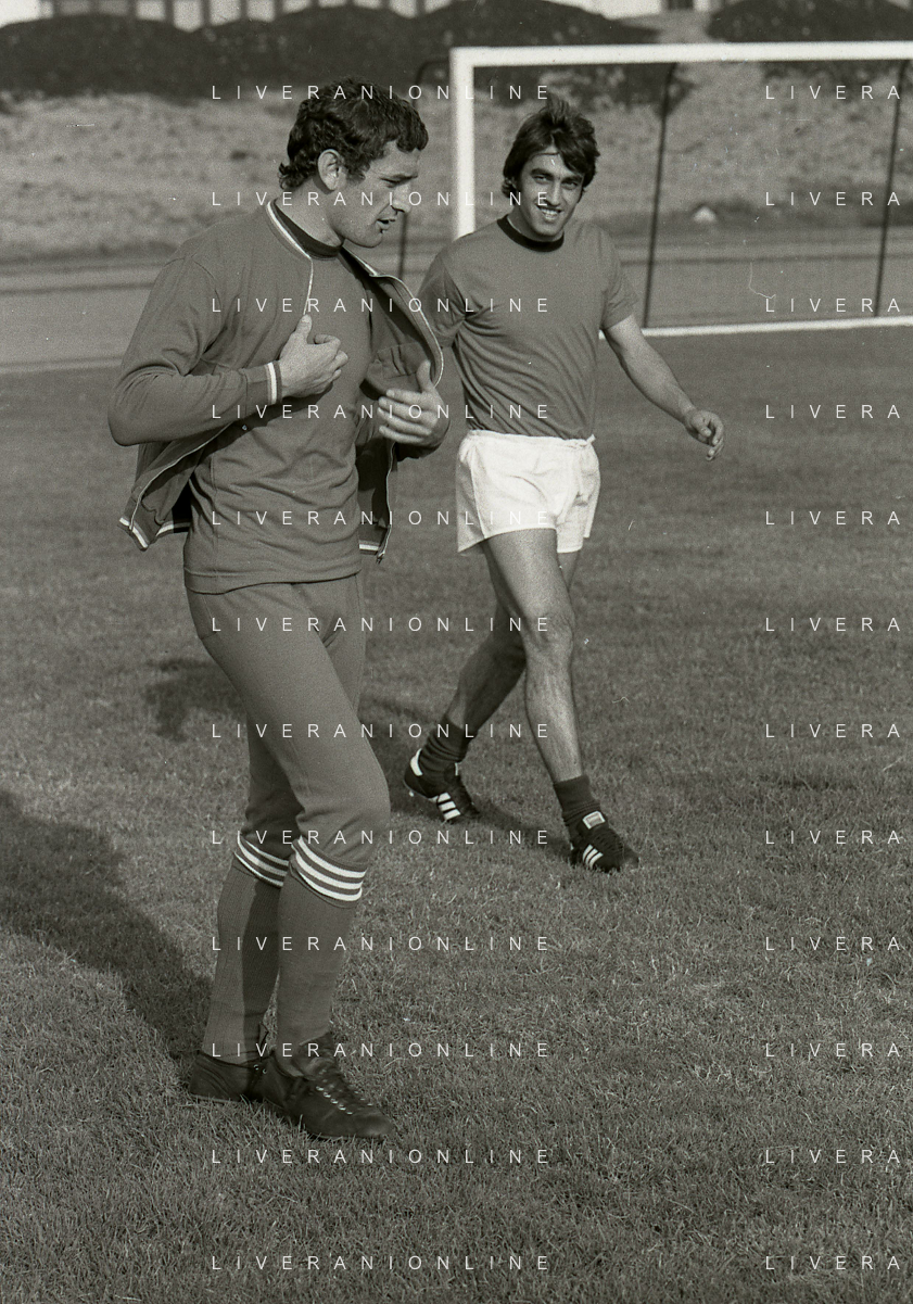 1974 RETROSPETTIVA GIGI RIVA CALCIATORE CAMPIONATI DEL MONDO GERMANIA NELLA FOTO GIGI RIVA E LUCIANO CASTELLINI AG ALDO LIVERANI SAS