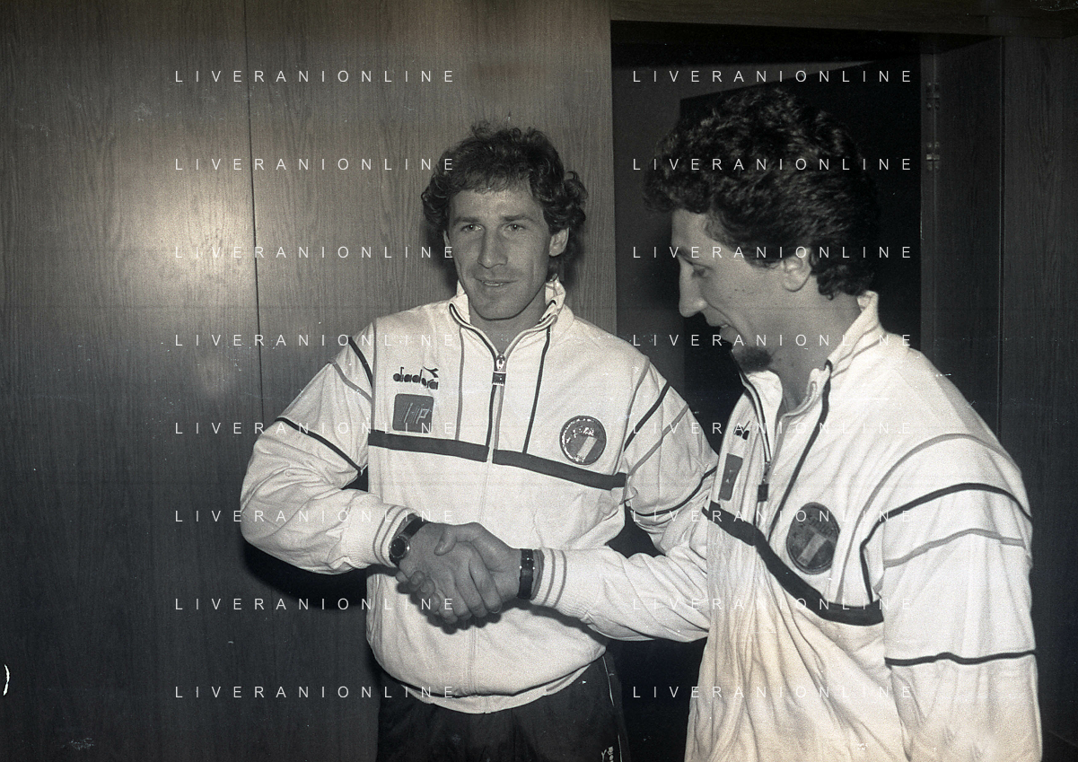 RETROSPETTIVA GIGI RIVA EX CALCIATORE E DIRIGENTE NAZIONALE ITALIANA CALCIO NELLA FOTO GIGI RIVA CON WALTER ZENGA AG ALDO LIVERANI SAS