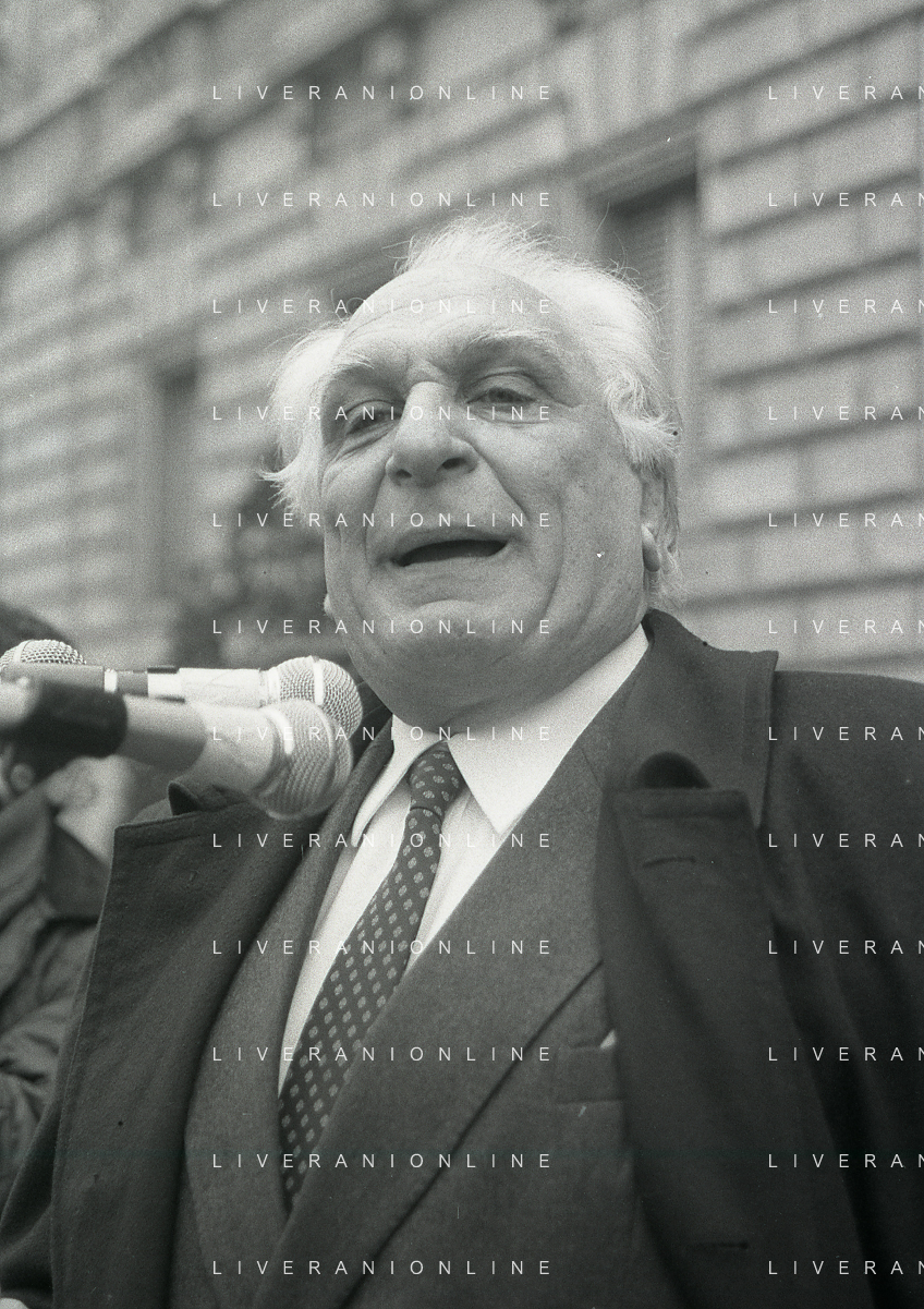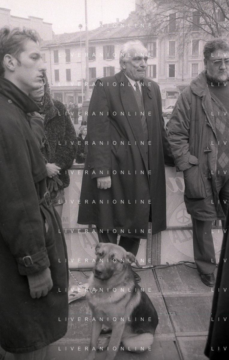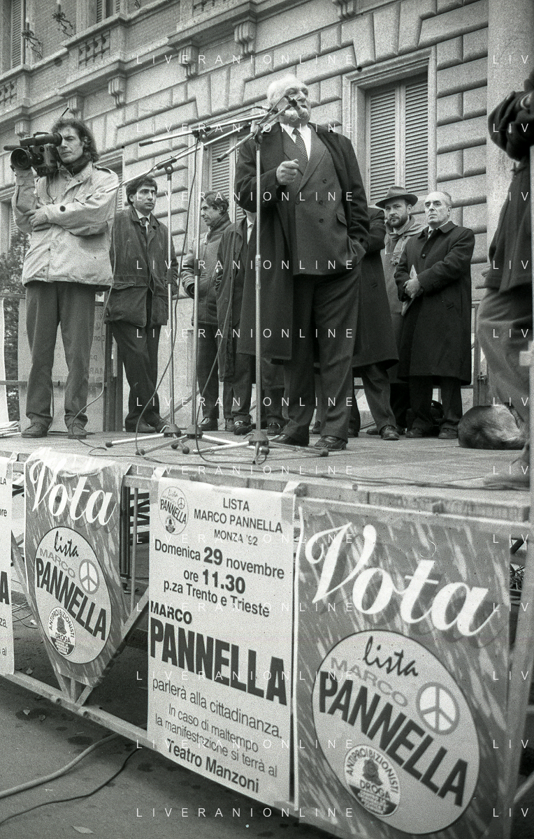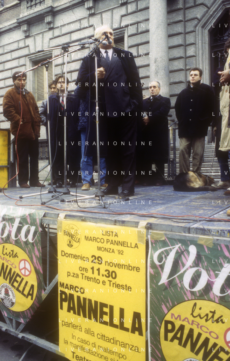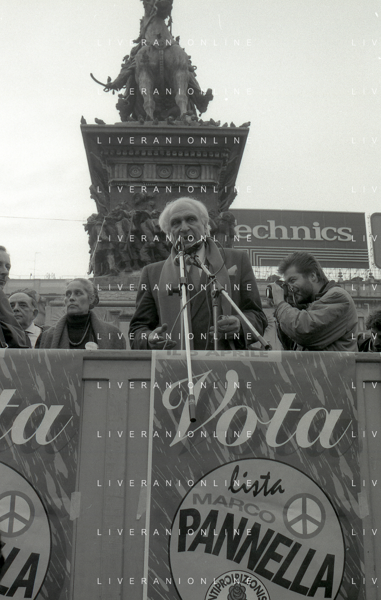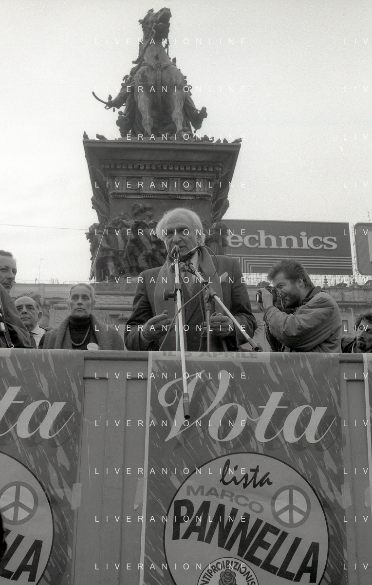 NEG-RETROSPETTIVA MARCO PANNELLA POLITICO NELLA FOTO MARCO PANNELLA NELL'ANNO 1992 IN PIAZZA DUOMO A MILANO AG ALDO LIVERANI SAS