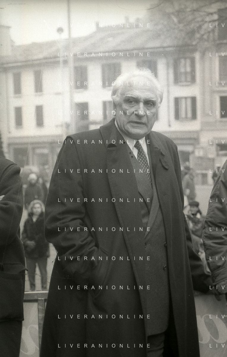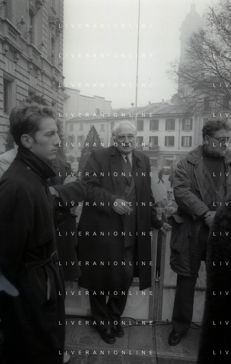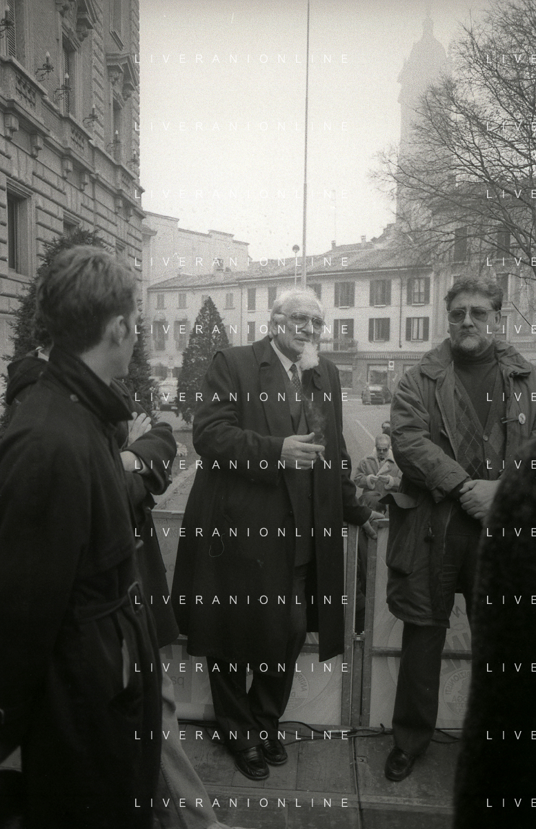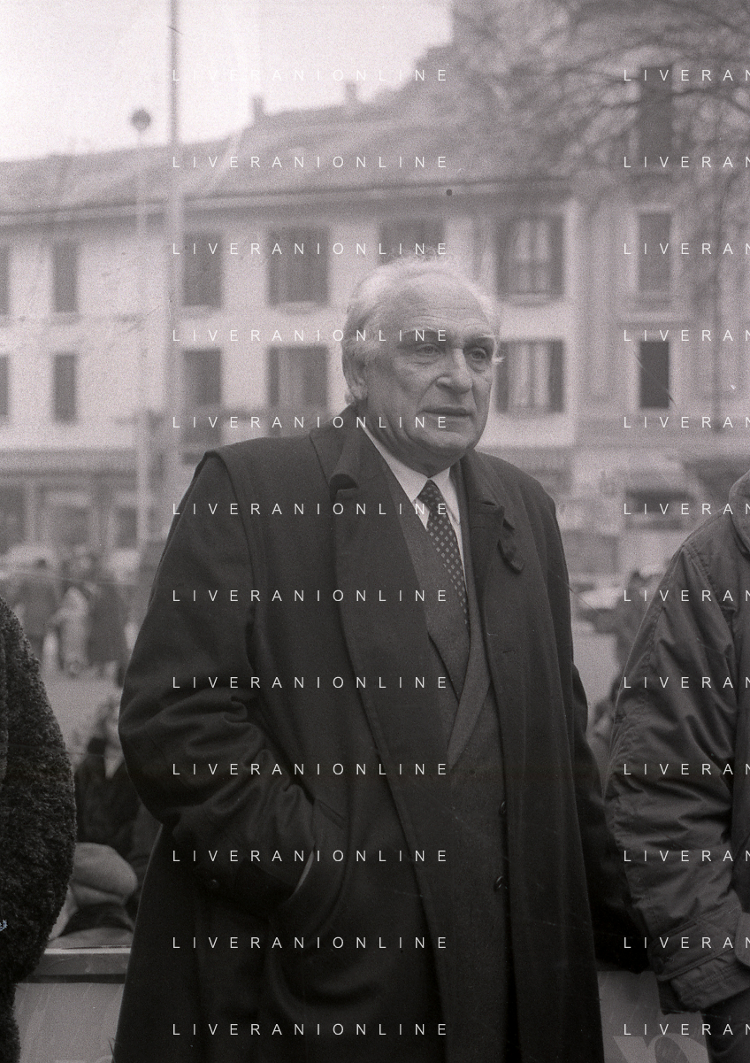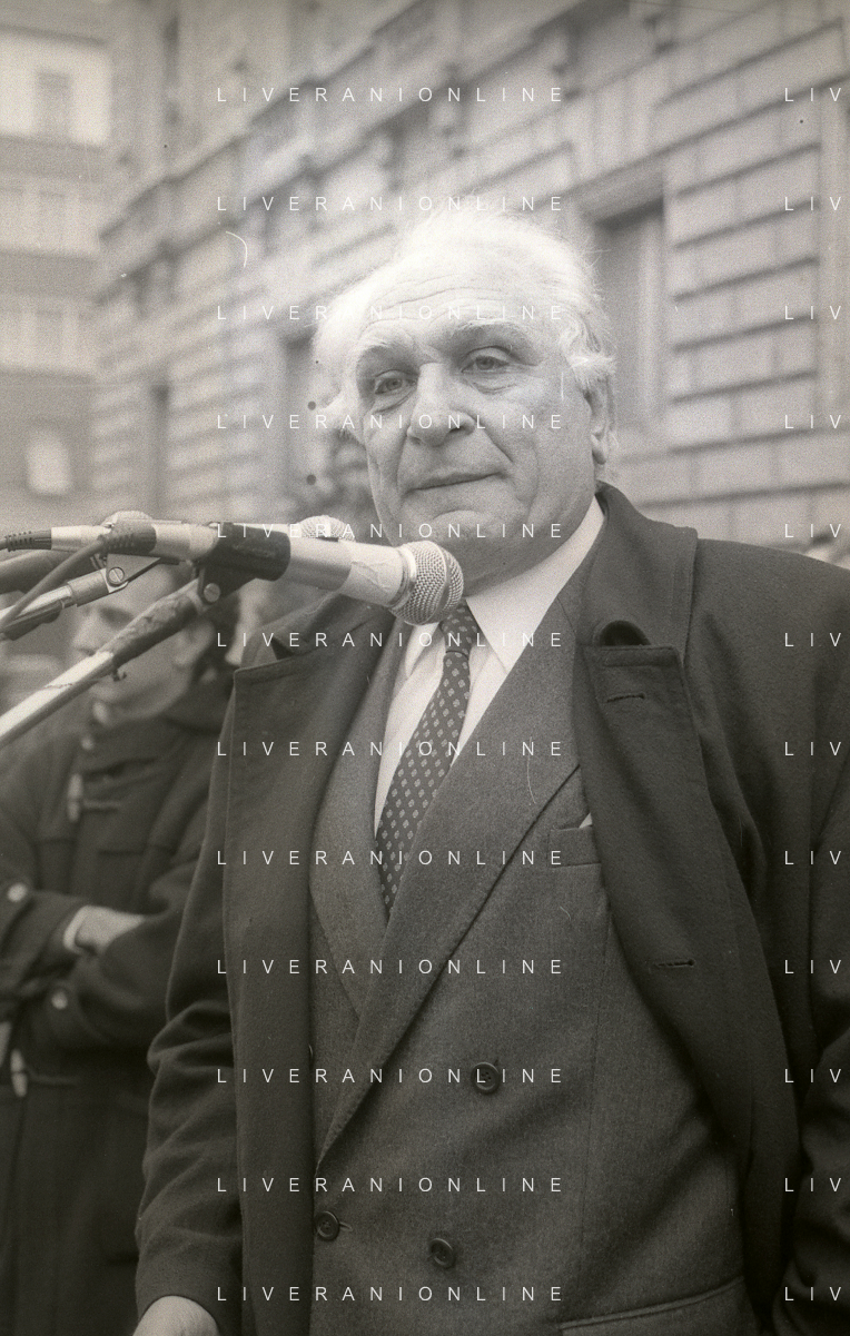 NEG-RETROSPETTIVA MARCO PANNELLA POLITICO NELLA FOTO MARCO PANNELLA NELL'ANNO 1992 IN PIAZZA DUOMO A MILANO AG ALDO LIVERANI SAS