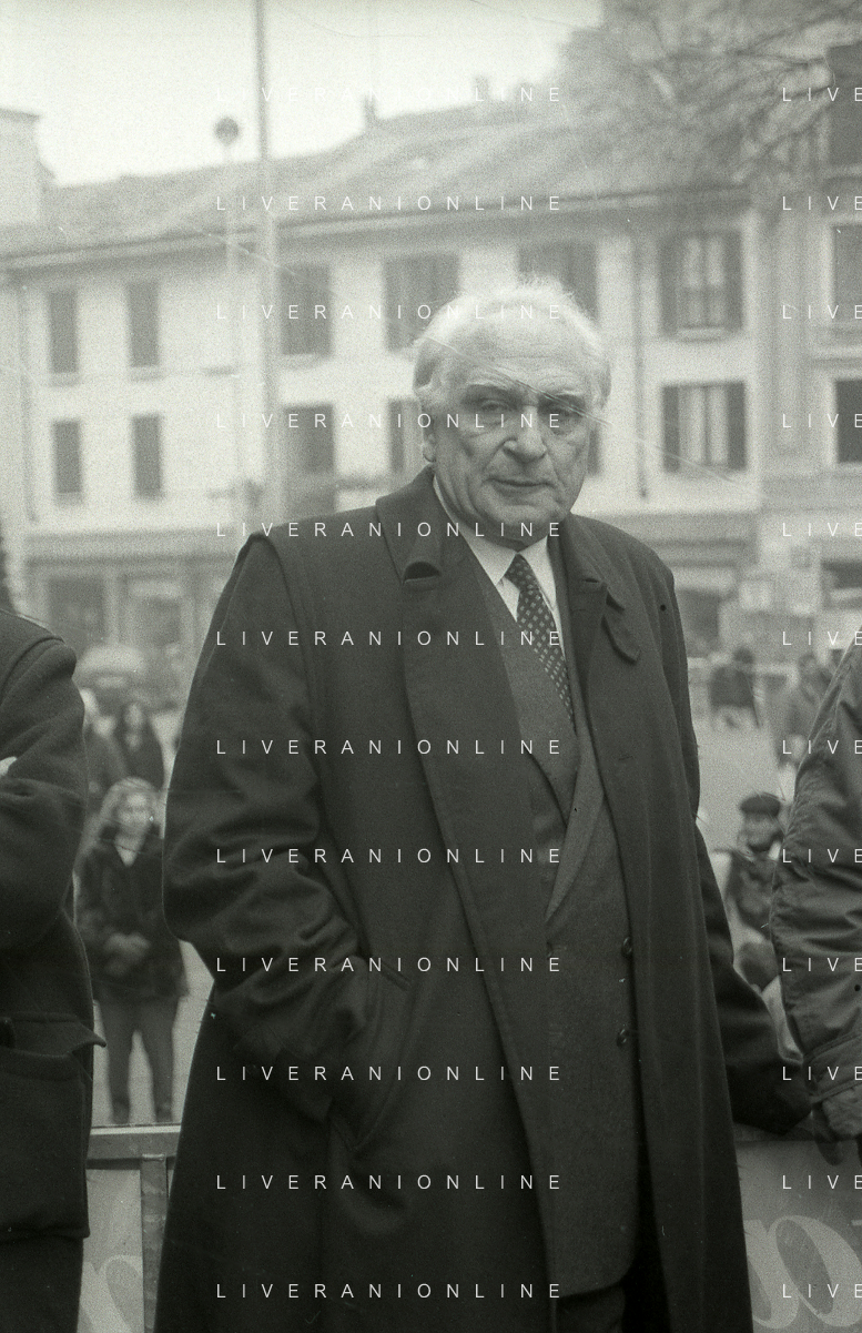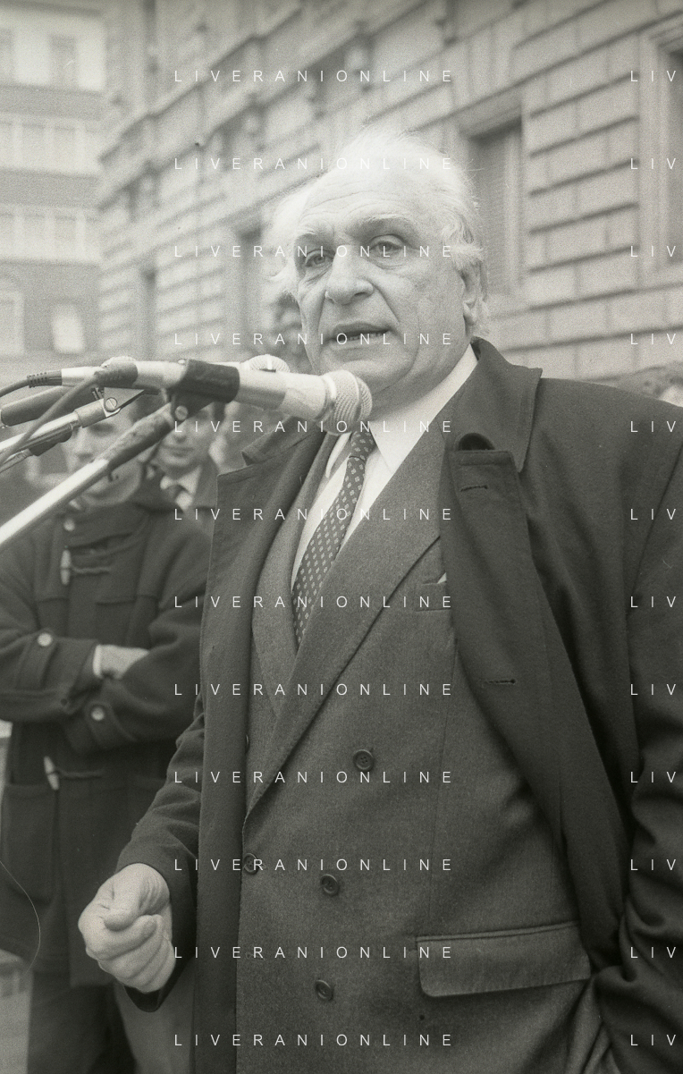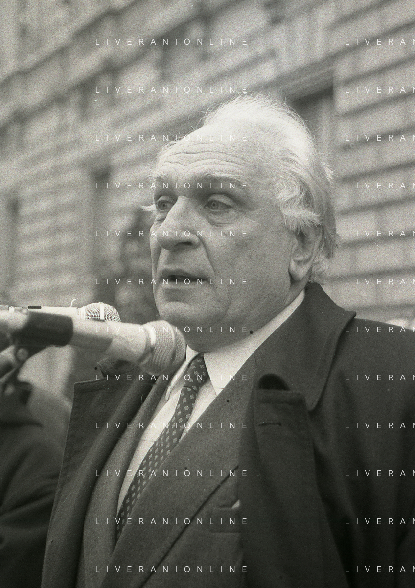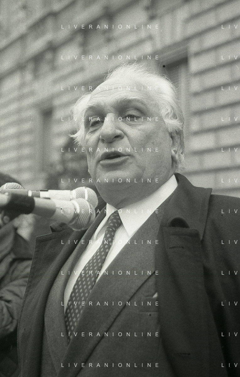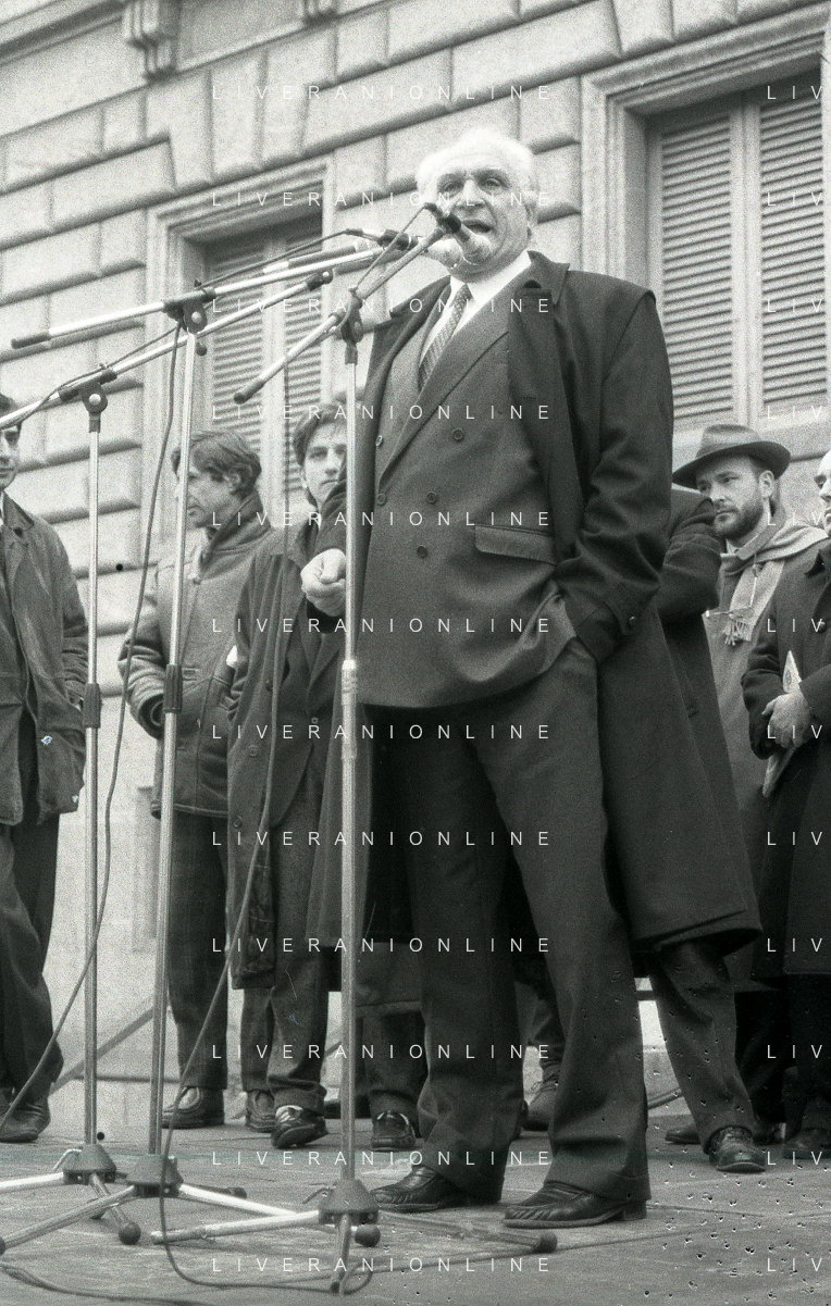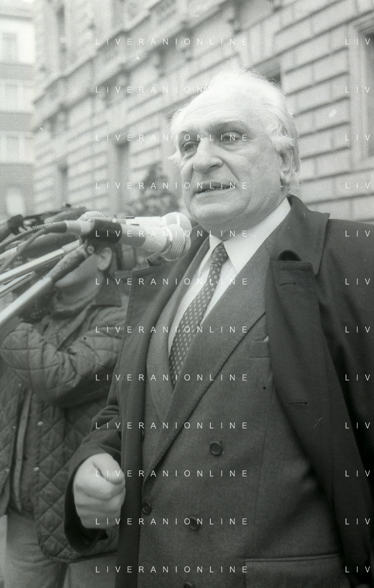 NEG-RETROSPETTIVA MARCO PANNELLA POLITICO NELLA FOTO MARCO PANNELLA NELL'ANNO 1992 IN PIAZZA DUOMO A MILANO AG ALDO LIVERANI SAS