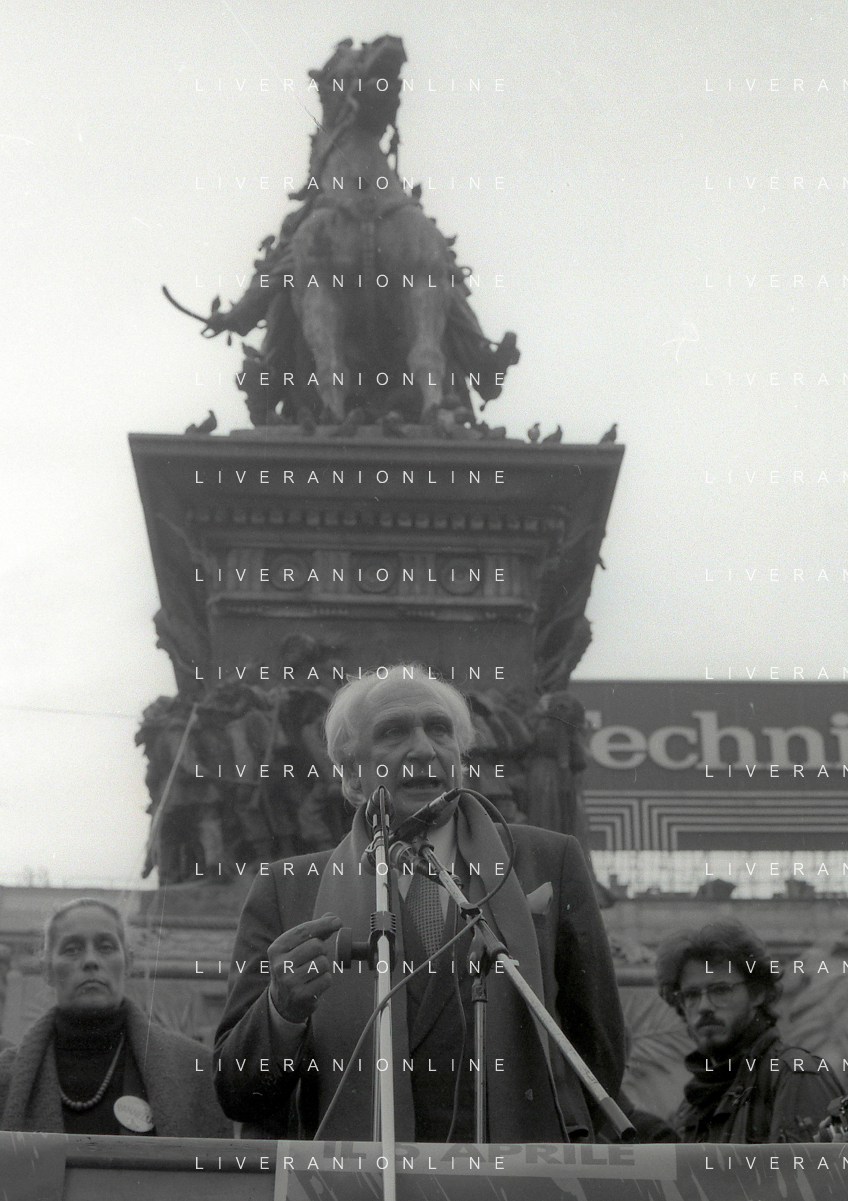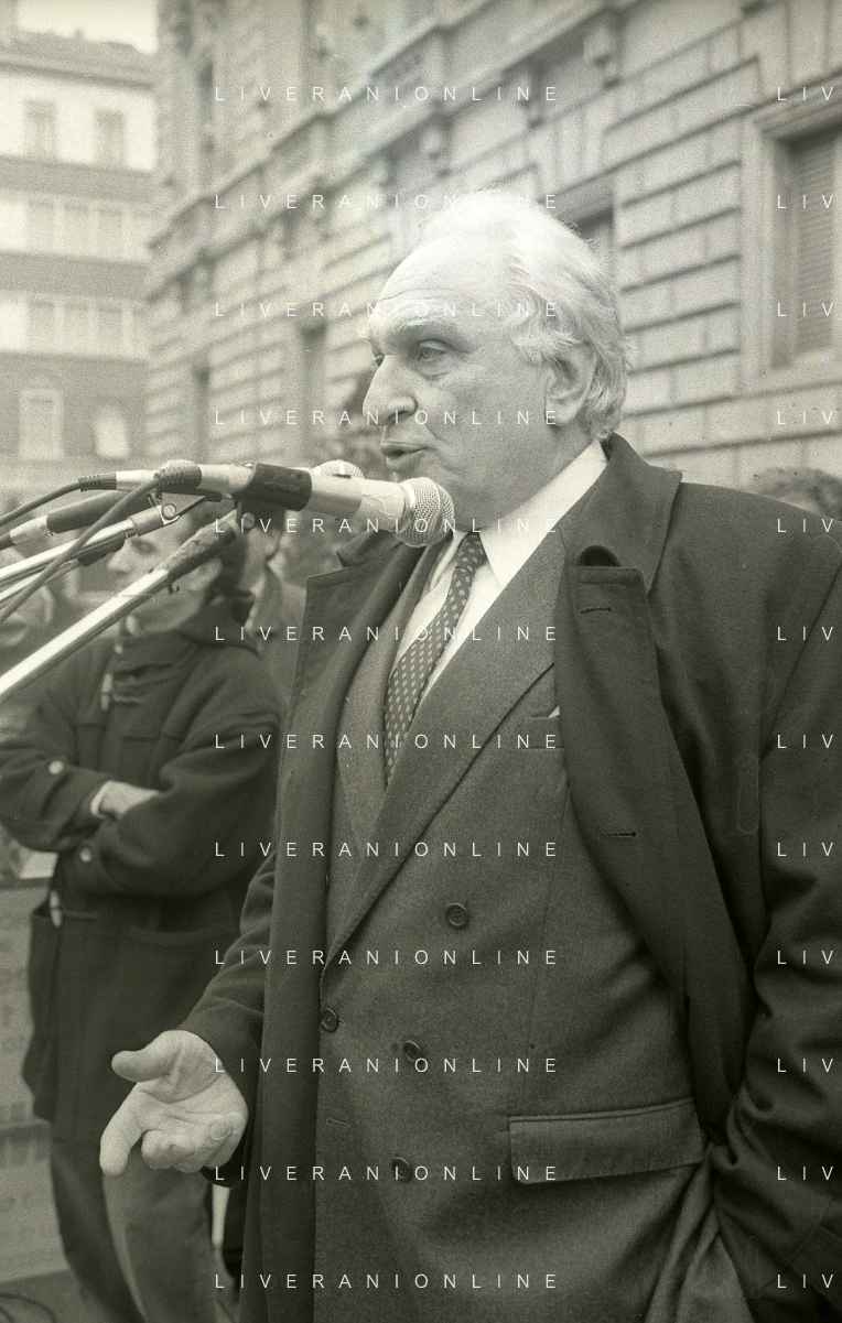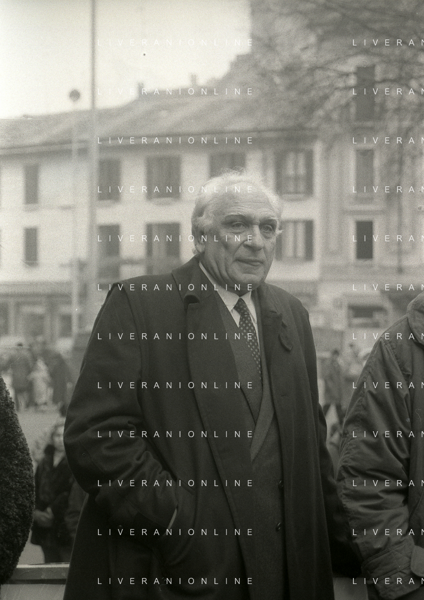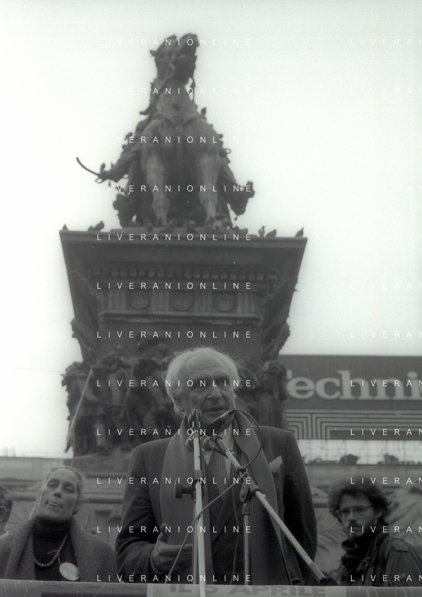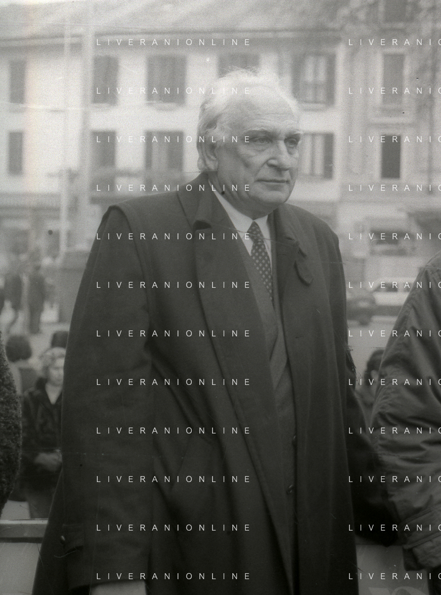 NEG-RETROSPETTIVA MARCO PANNELLA POLITICO NELLA FOTO MARCO PANNELLA NELL'ANNO 1992 IN PIAZZA DUOMO A MILANO AG ALDO LIVERANI SAS