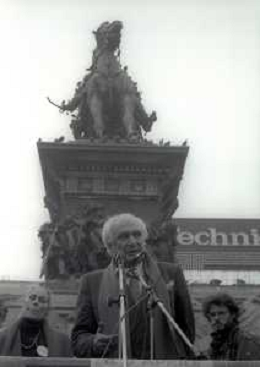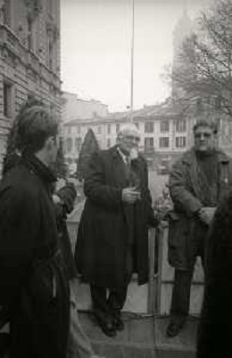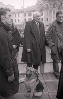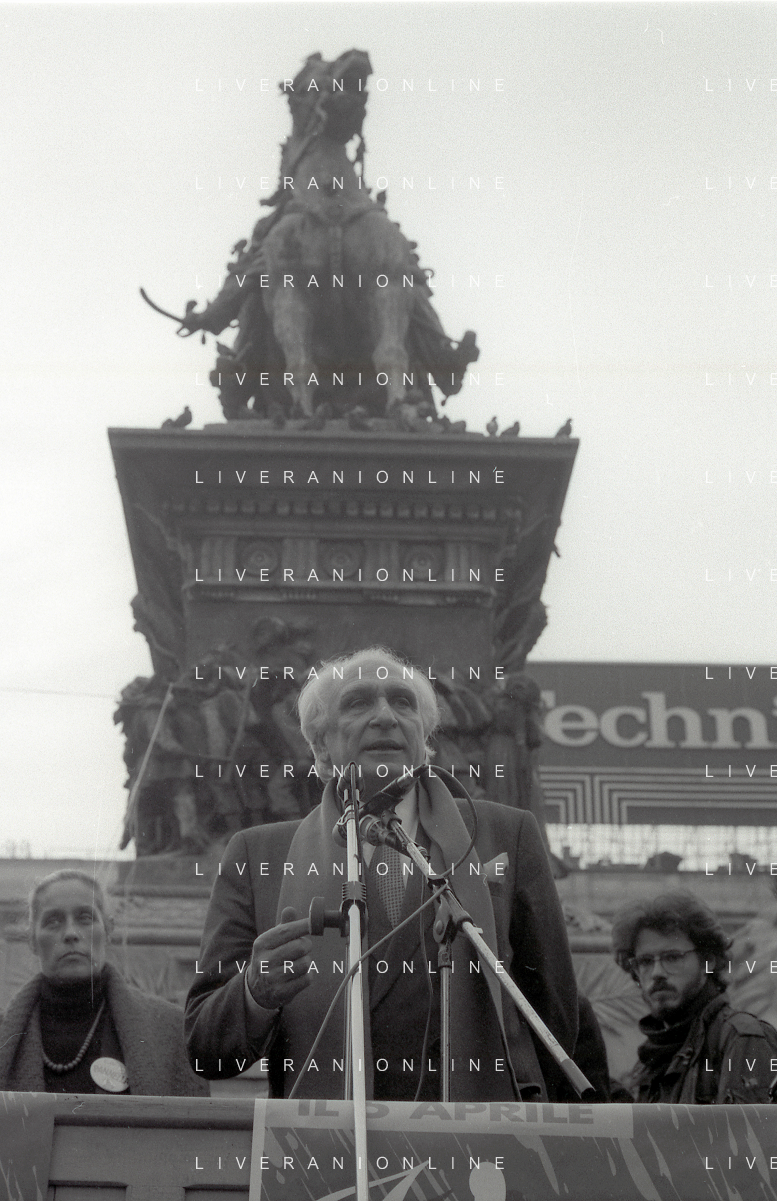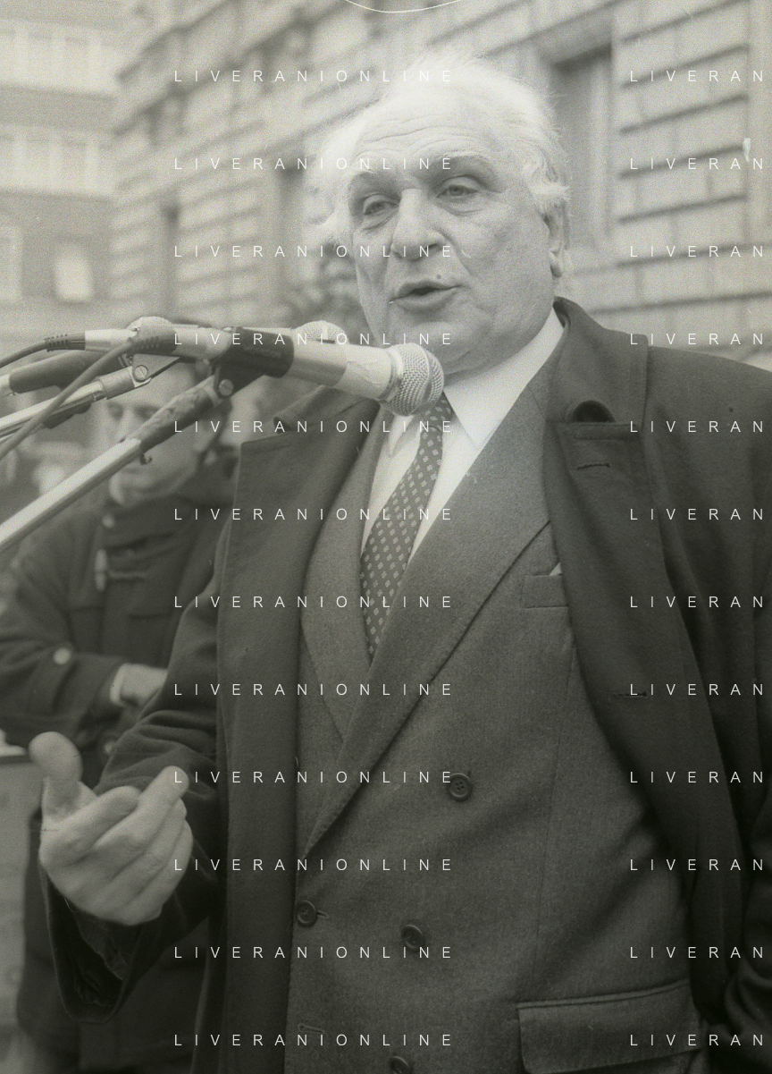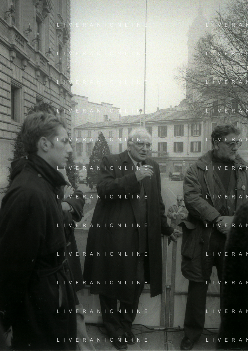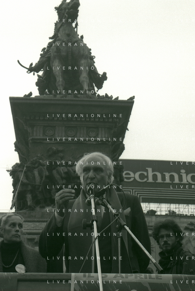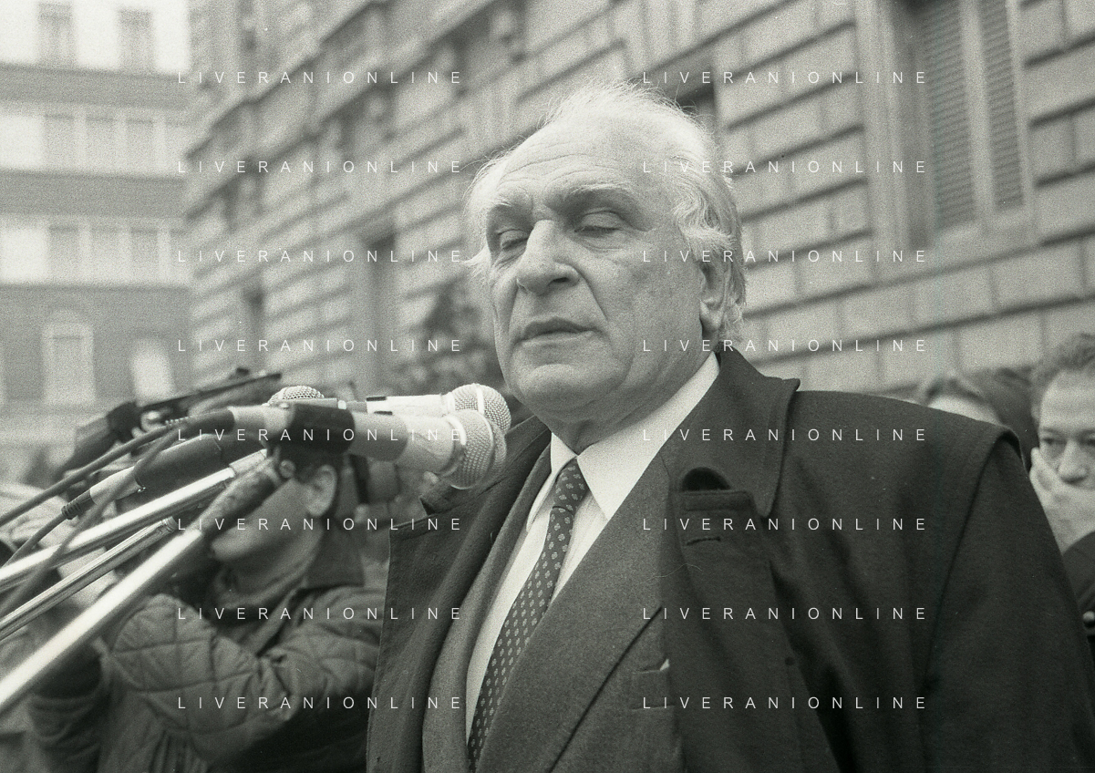 NEG-RETROSPETTIVA MARCO PANNELLA POLITICO NELLA FOTO MARCO PANNELLA NELL'ANNO 1992 IN PIAZZA DUOMO A MILANO AG ALDO LIVERANI SAS