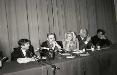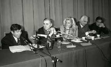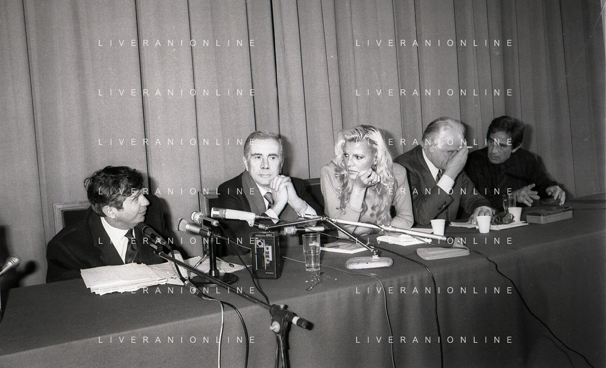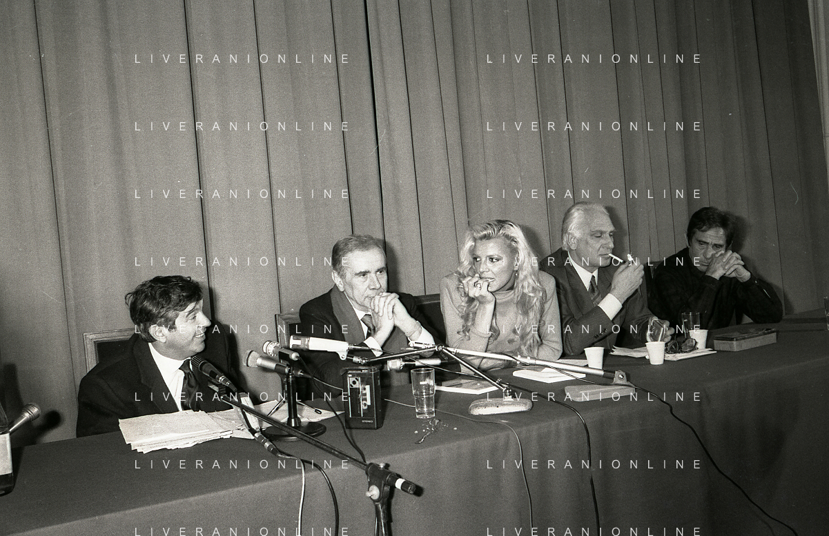 NEG-RETROSPETTIVA MARCO PANNELLA POLITICO NELLA FOTO ENZO TORTORA CON PATRIZIA CASELLI E WALTER CHIARI MARCO PANNELLA NELL'ANNO 1985 IN UNA CONFERENZA STAMPA AG ALDO LIVERANI SAS