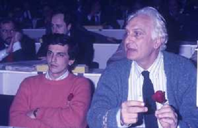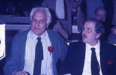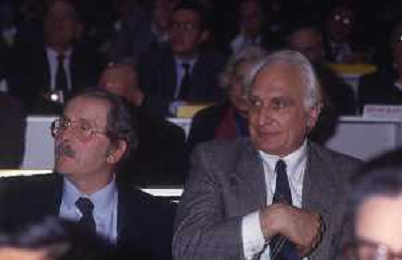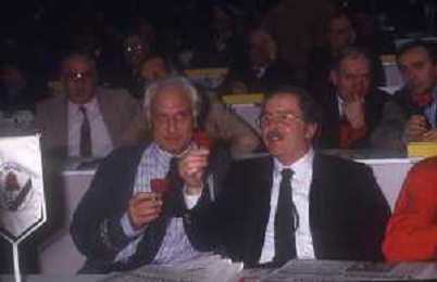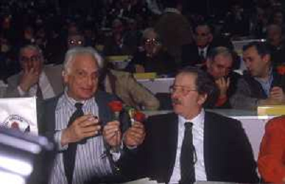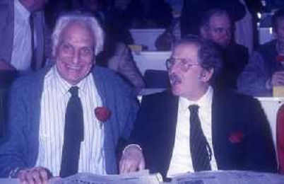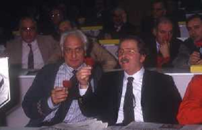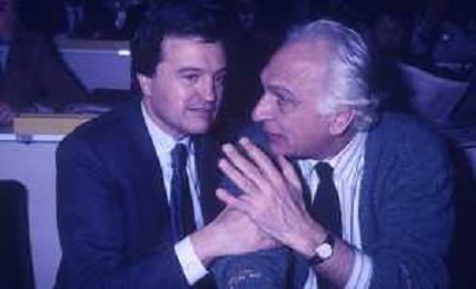 DIAP-RETROSPETTIVA MARCO PANNELLA POLITICO NELLA FOTO MARCO PANNELLA NELL'ANNO 1987 CON DOMENICO MODUGNO AG ALDO LIVERANI SAS