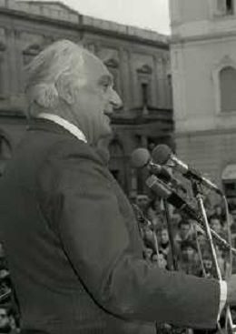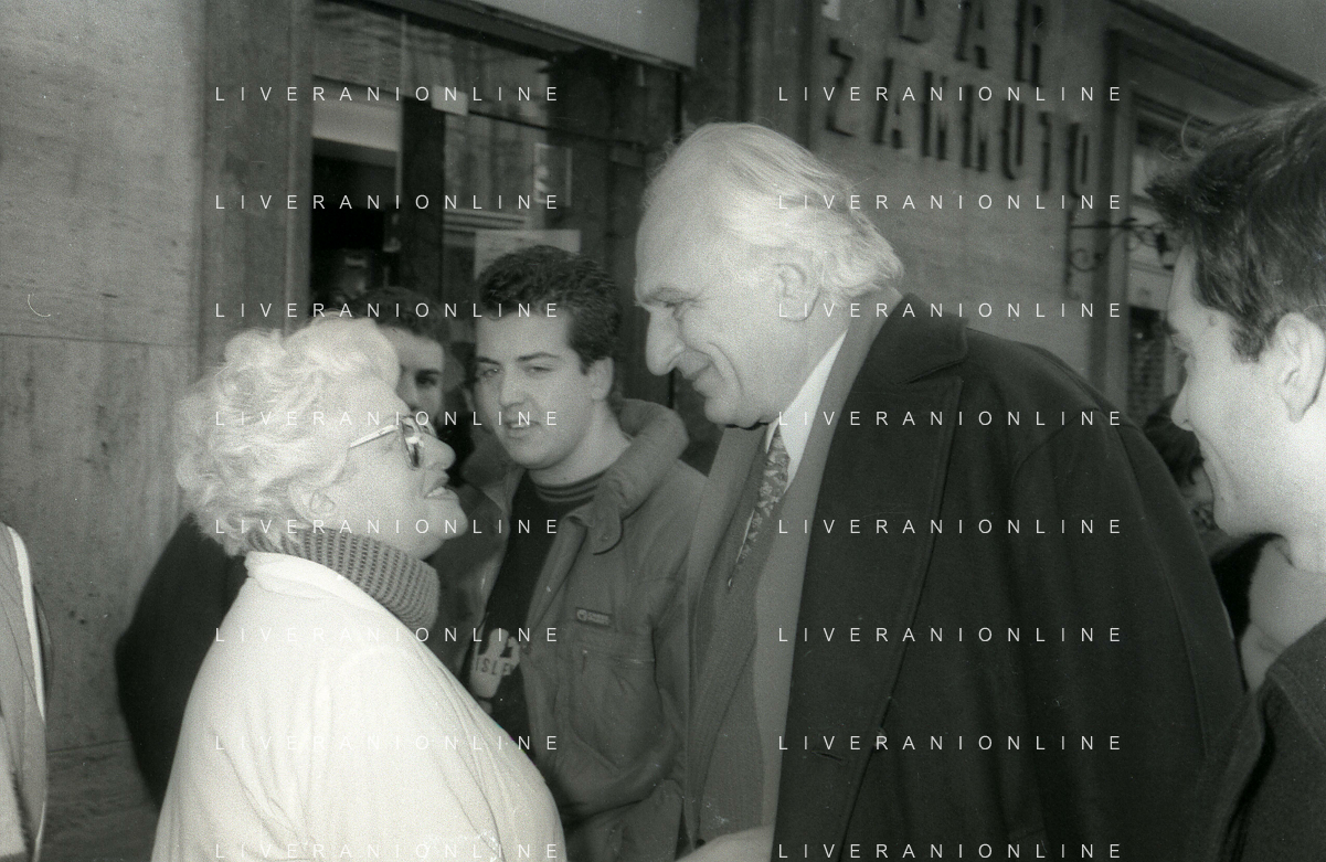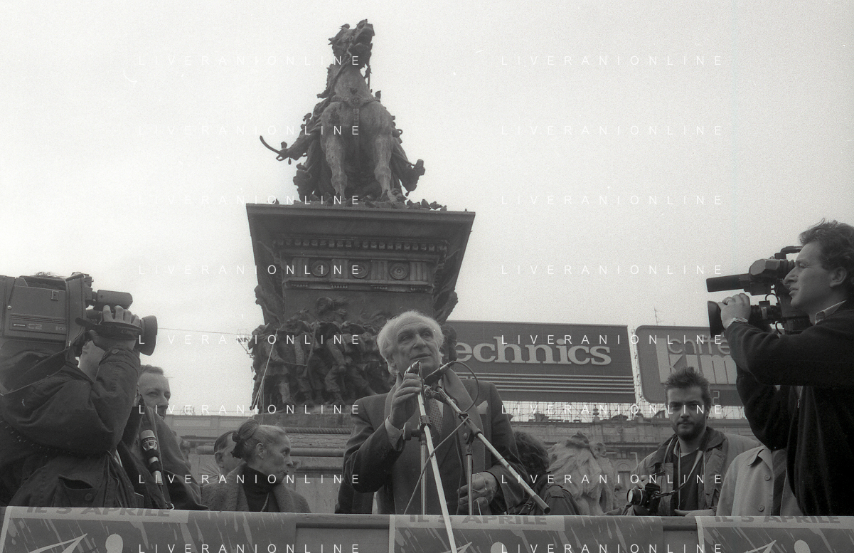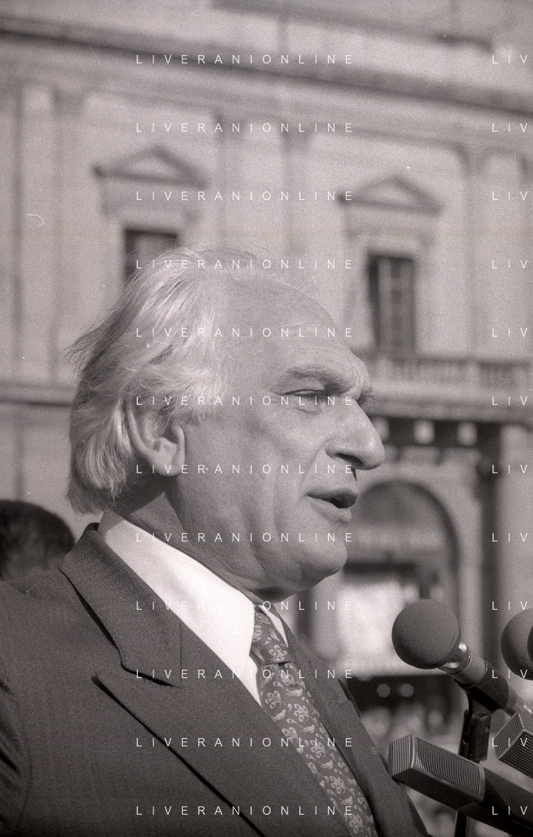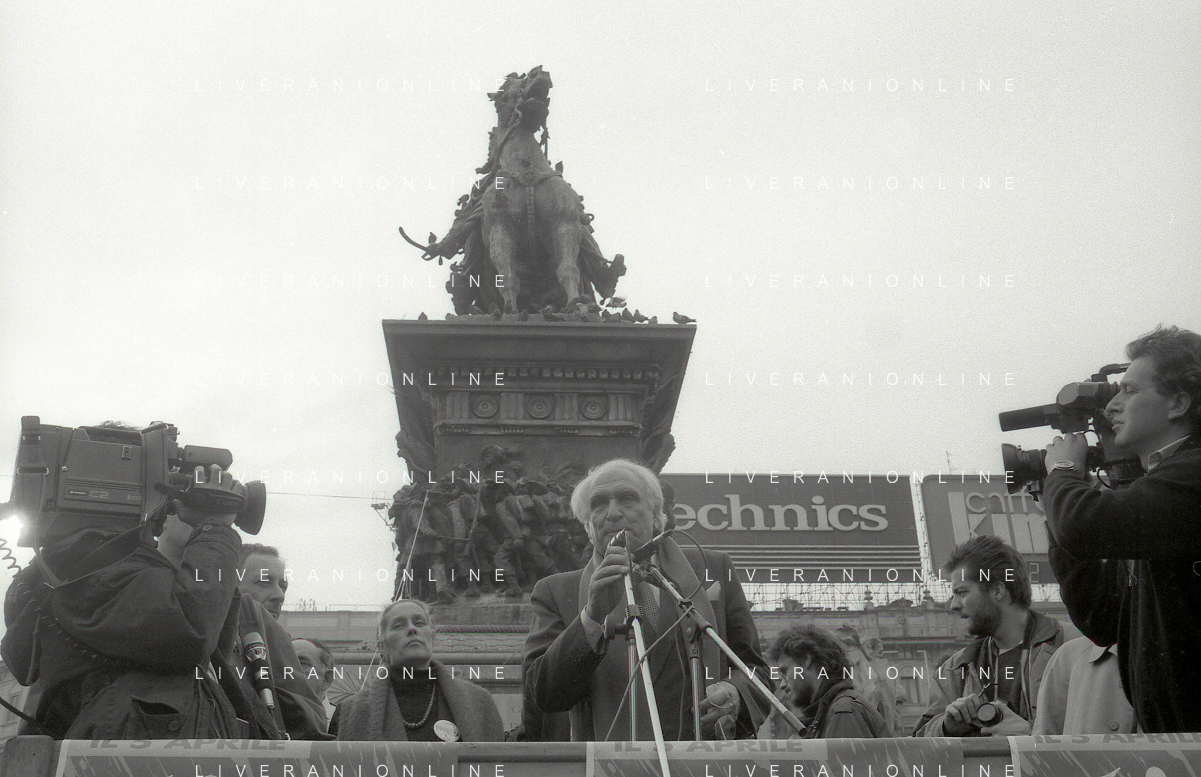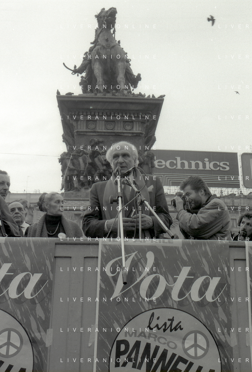 NEG-RETROSPETTIVA MARCO PANNELLA POLITICO NELLA FOTO MARCO PANNELLA NELL'ANNO 1992 IN PIAZZA DUOMO A MILANO AG ALDO LIVERANI SAS