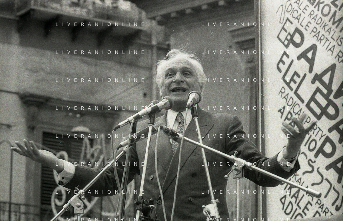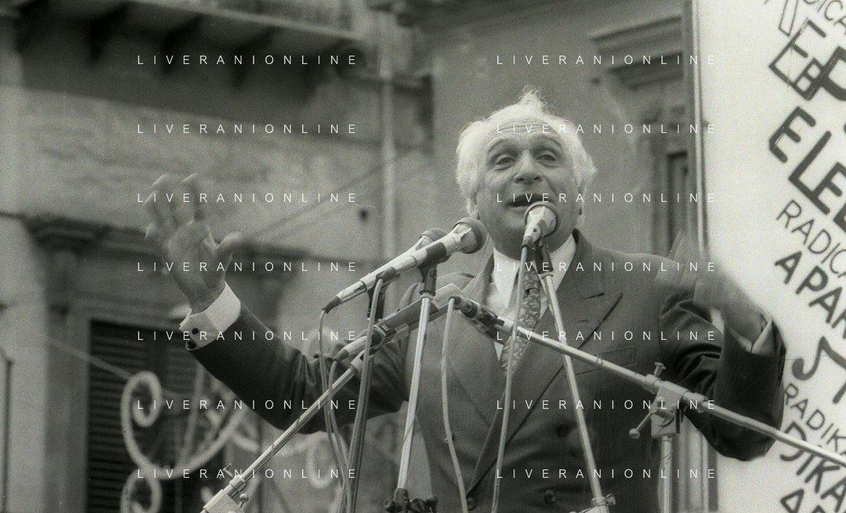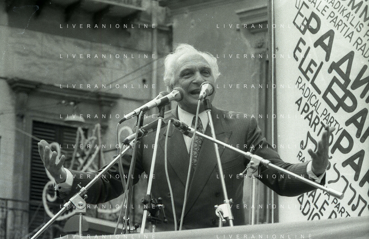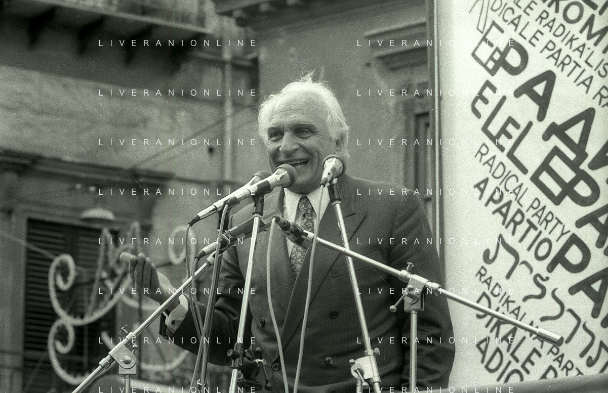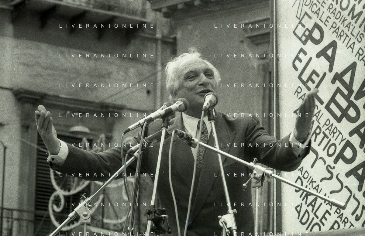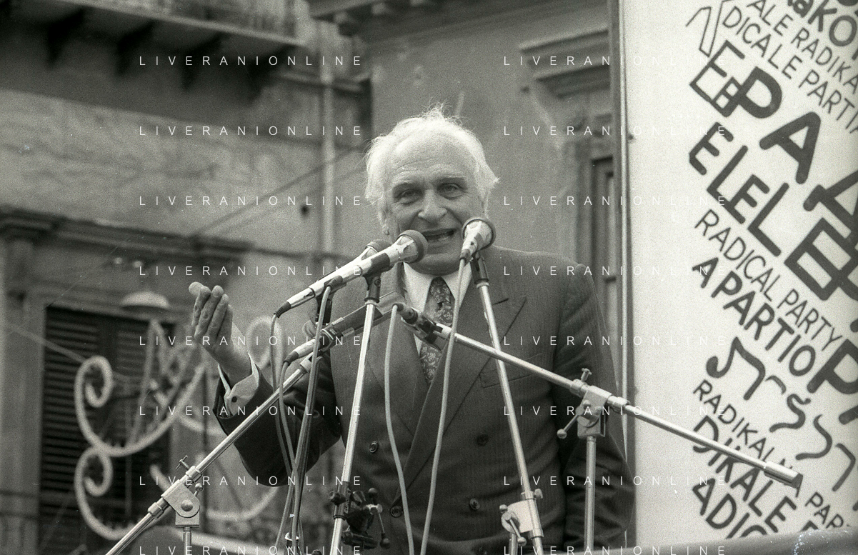 NEG-RETROSPETTIVA MARCO PANNELLA POLITICO NELLA FOTO MARCO PANNELLA NELL'ANNO 1989 A UN COMIZIO A FIRENZE AG ALDO LIVERANI SAS