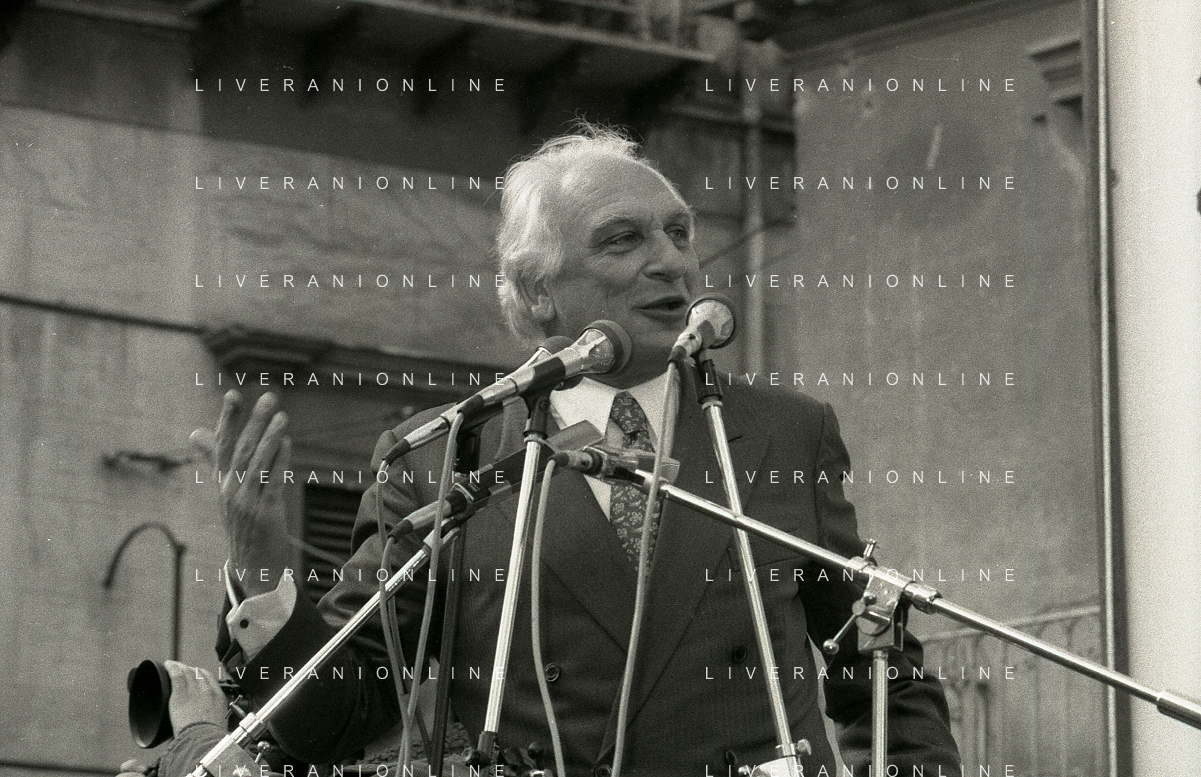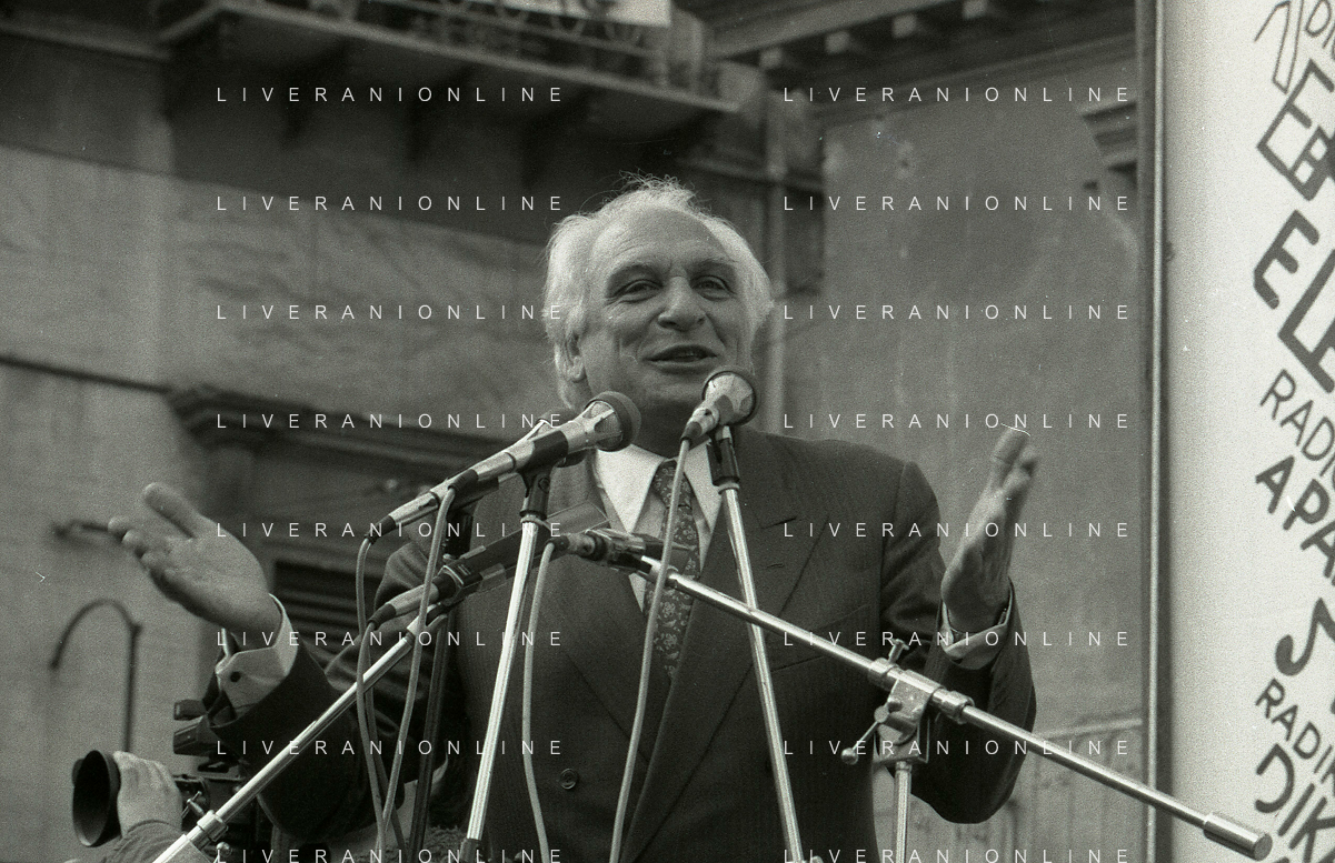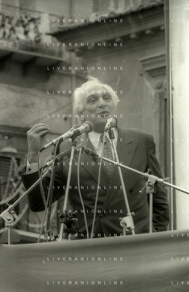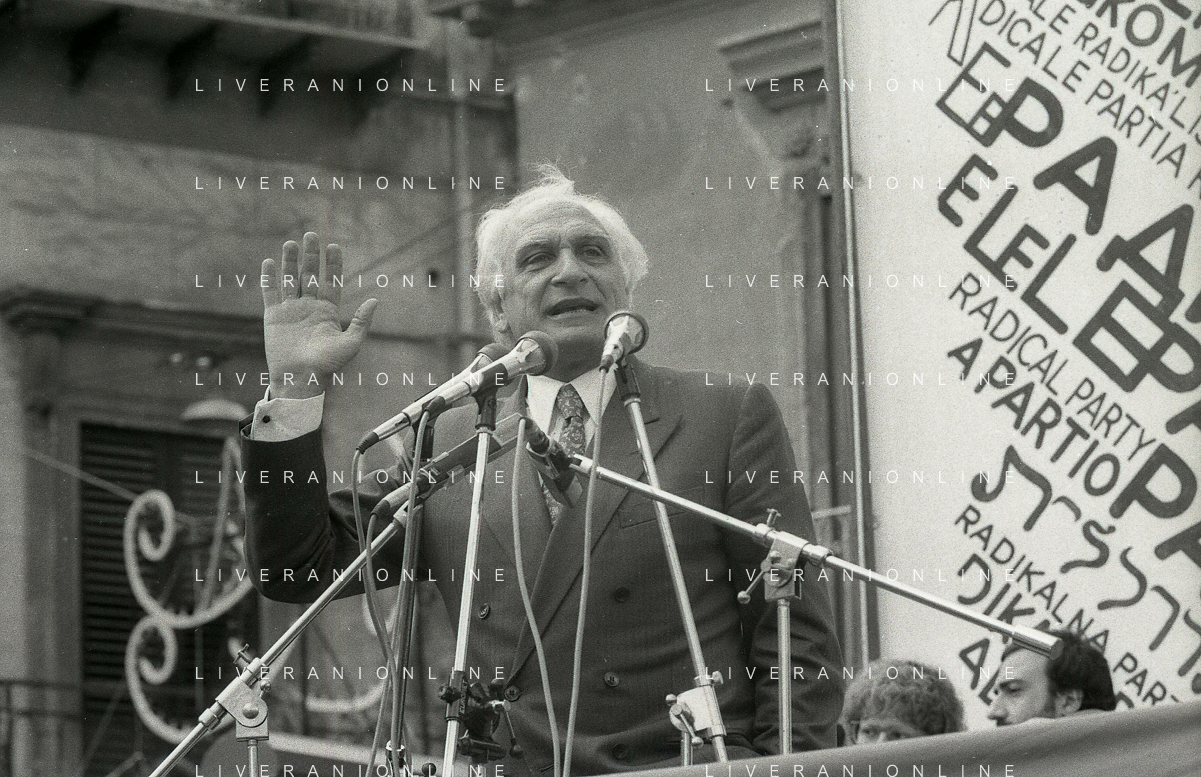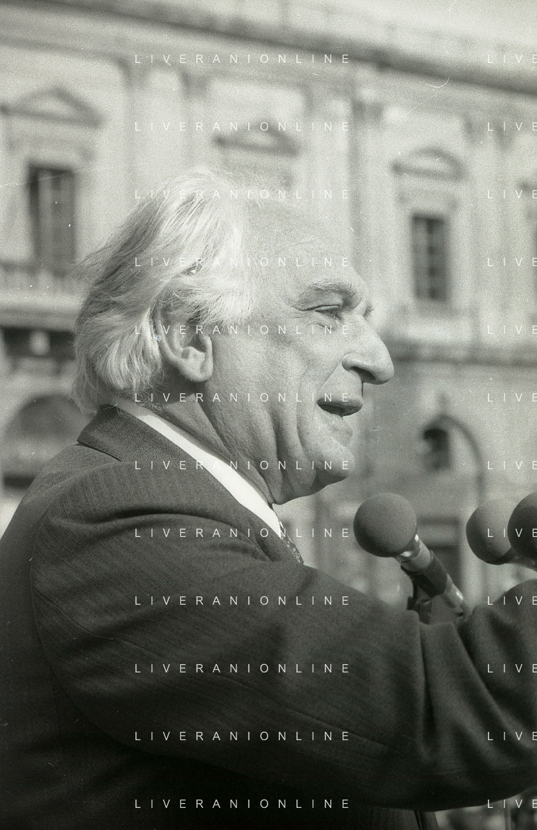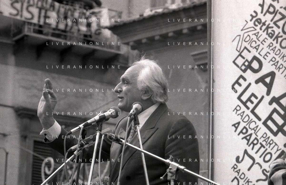 NEG-RETROSPETTIVA MARCO PANNELLA POLITICO NELLA FOTO MARCO PANNELLA NELL'ANNO 1989 A UN COMIZIO A FIRENZE AG ALDO LIVERANI SAS