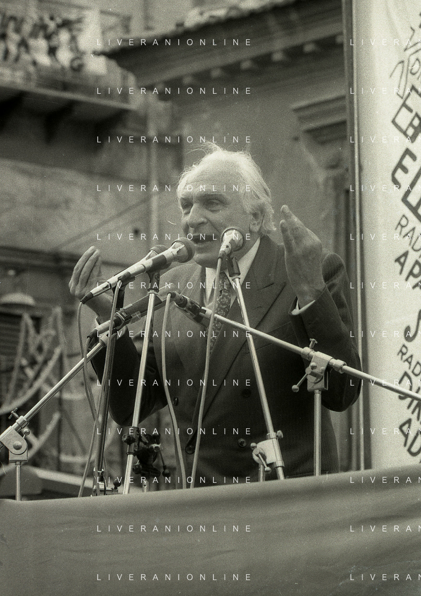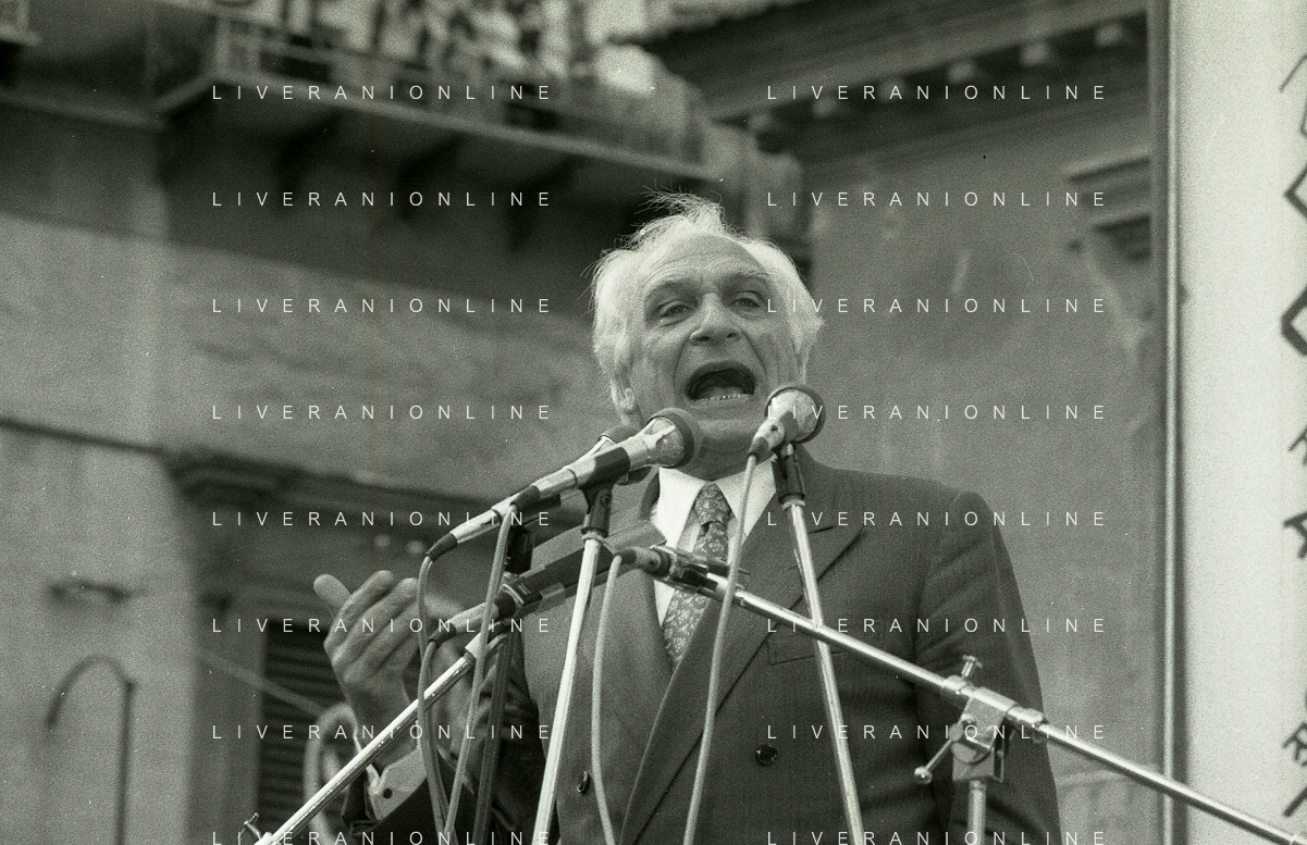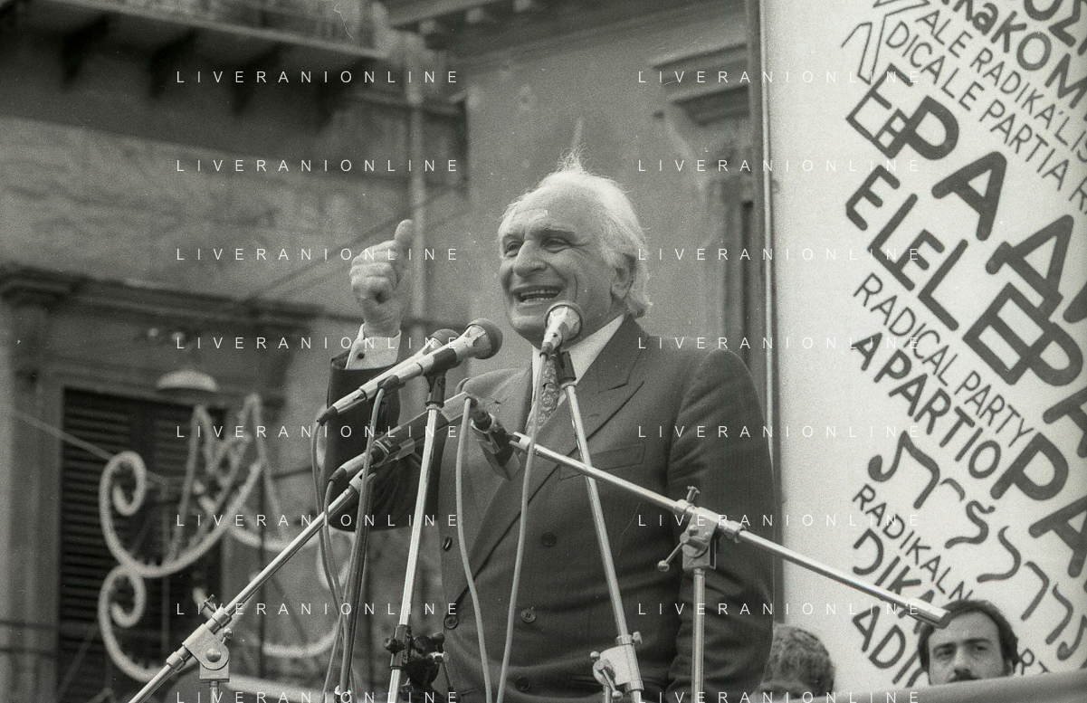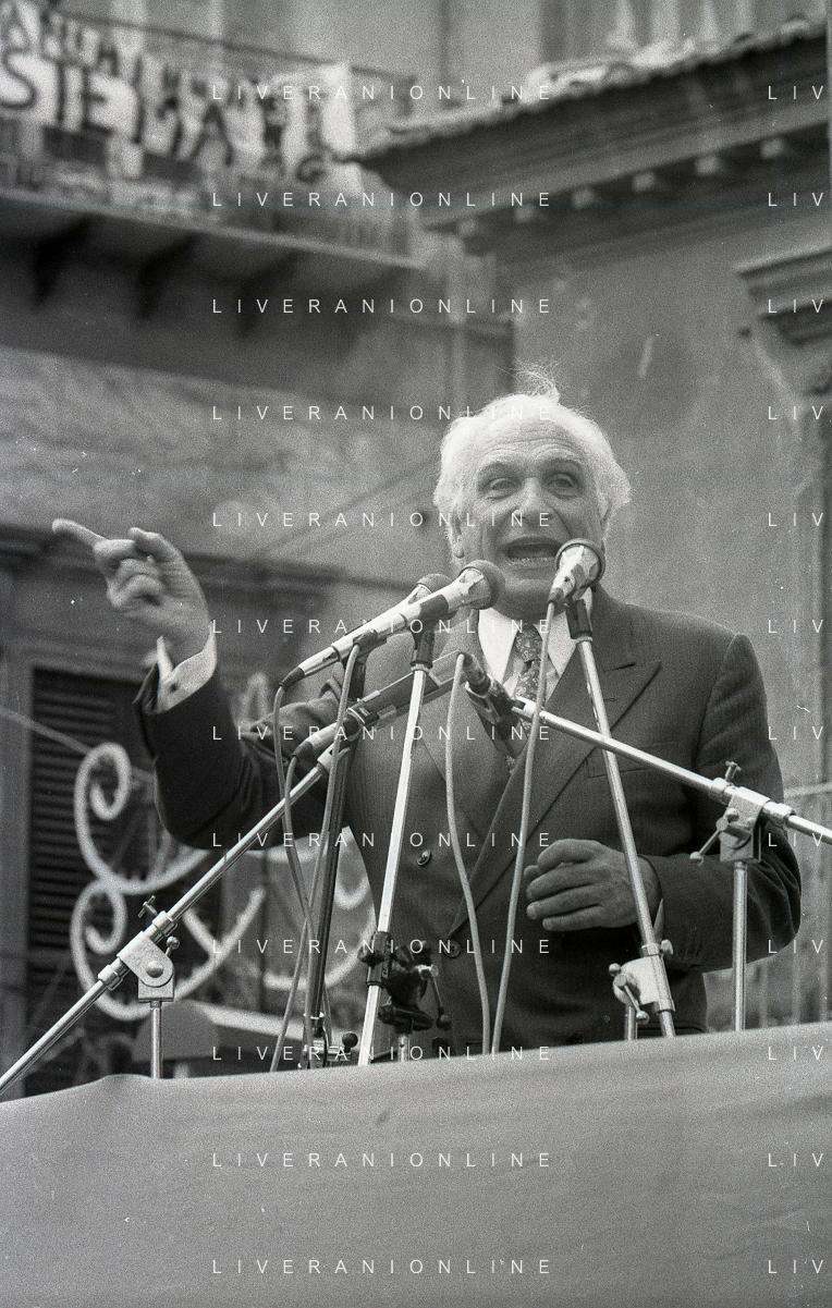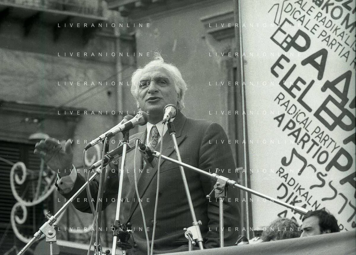 NEG-RETROSPETTIVA MARCO PANNELLA POLITICO NELLA FOTO MARCO PANNELLA NELL'ANNO 1989 A UN COMIZIO A FIRENZE AG ALDO LIVERANI SAS