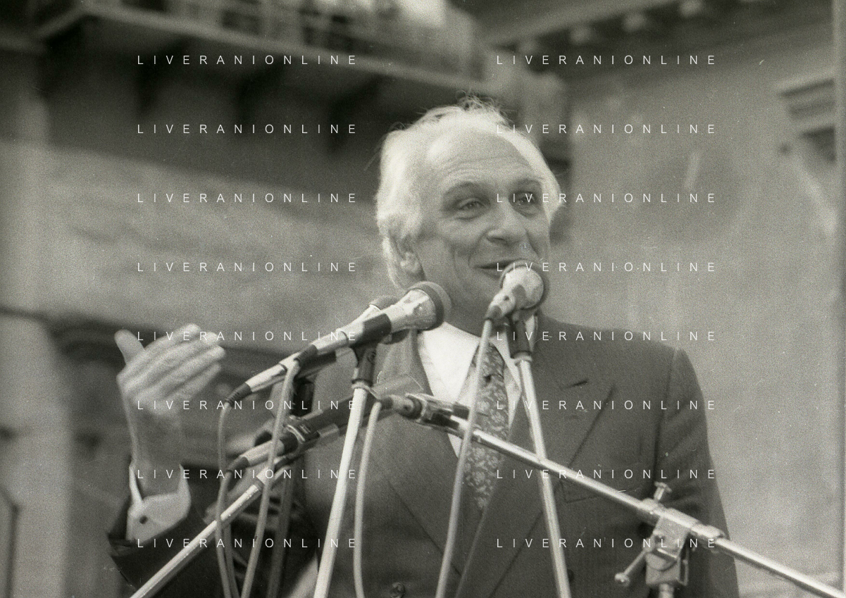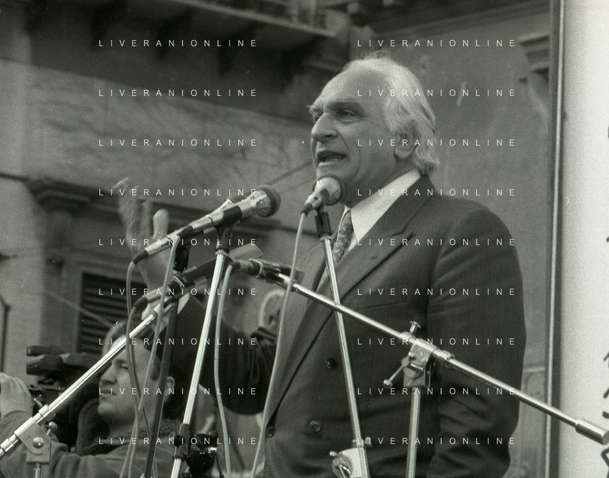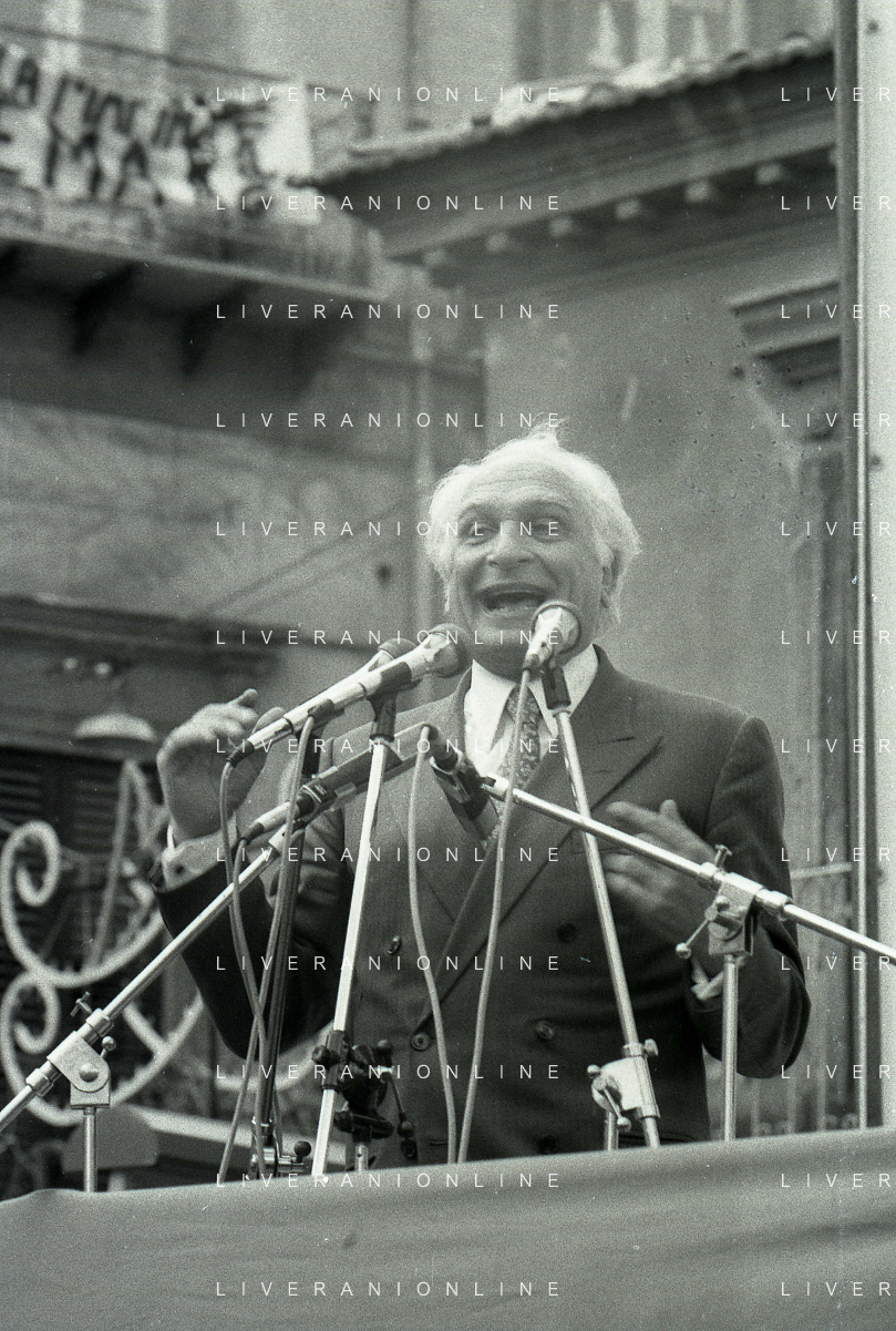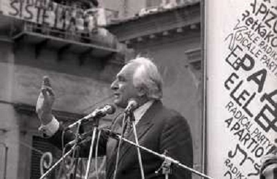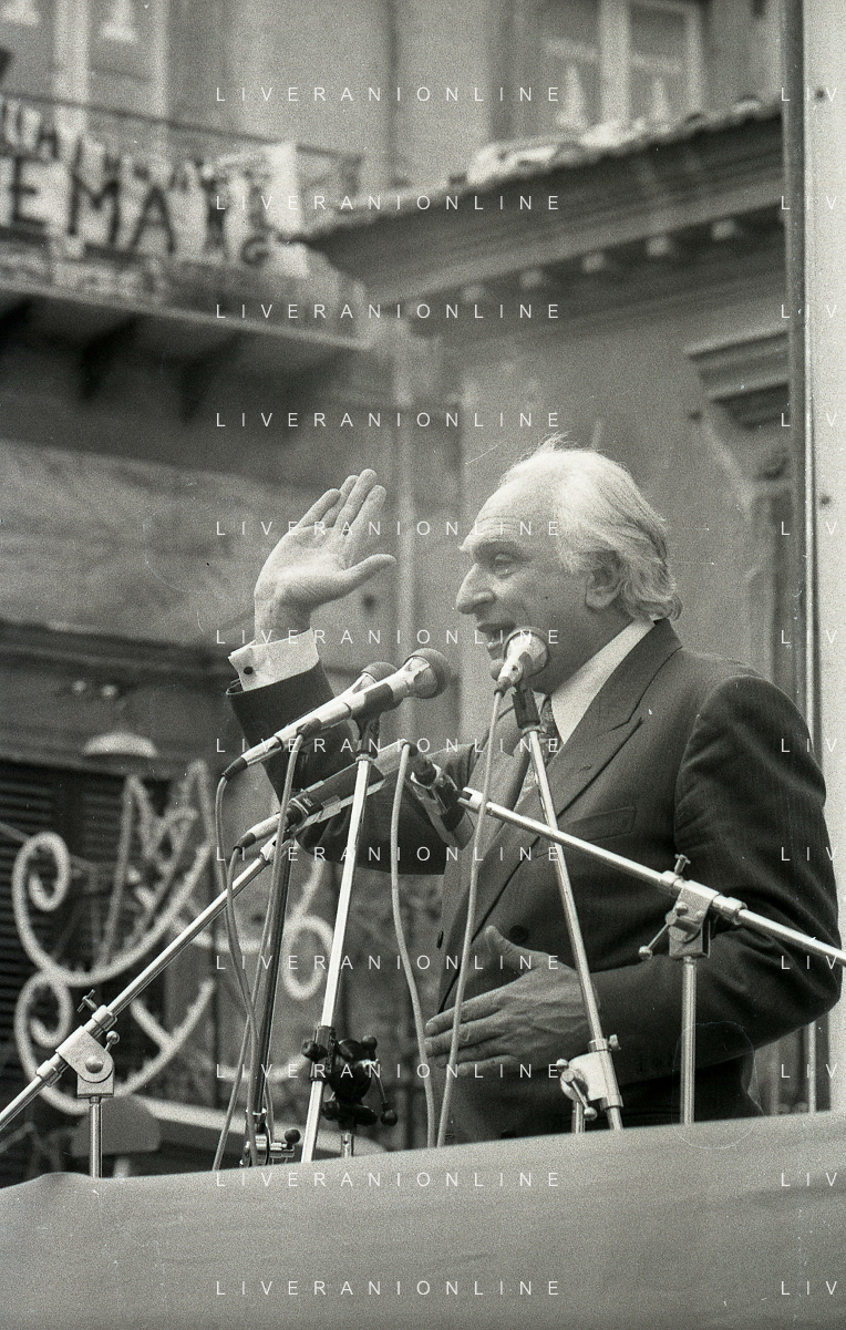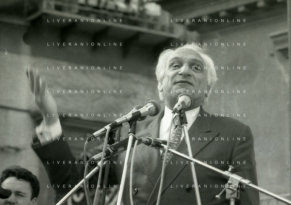 NEG-RETROSPETTIVA MARCO PANNELLA POLITICO NELLA FOTO MARCO PANNELLA NELL'ANNO 1989 A UN COMIZIO A FIRENZE AG ALDO LIVERANI SAS