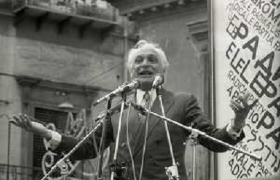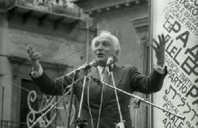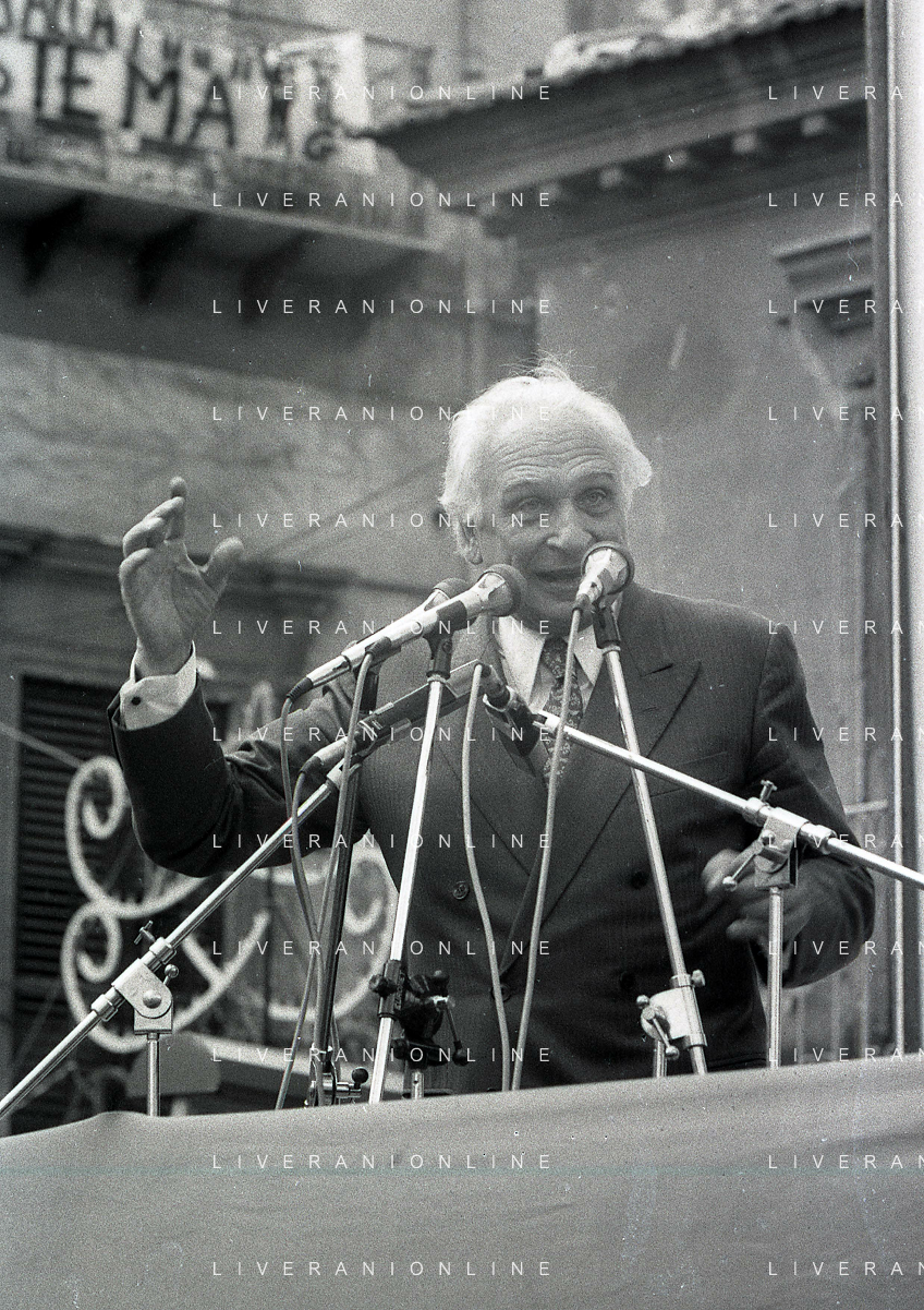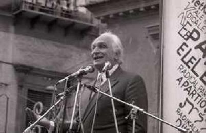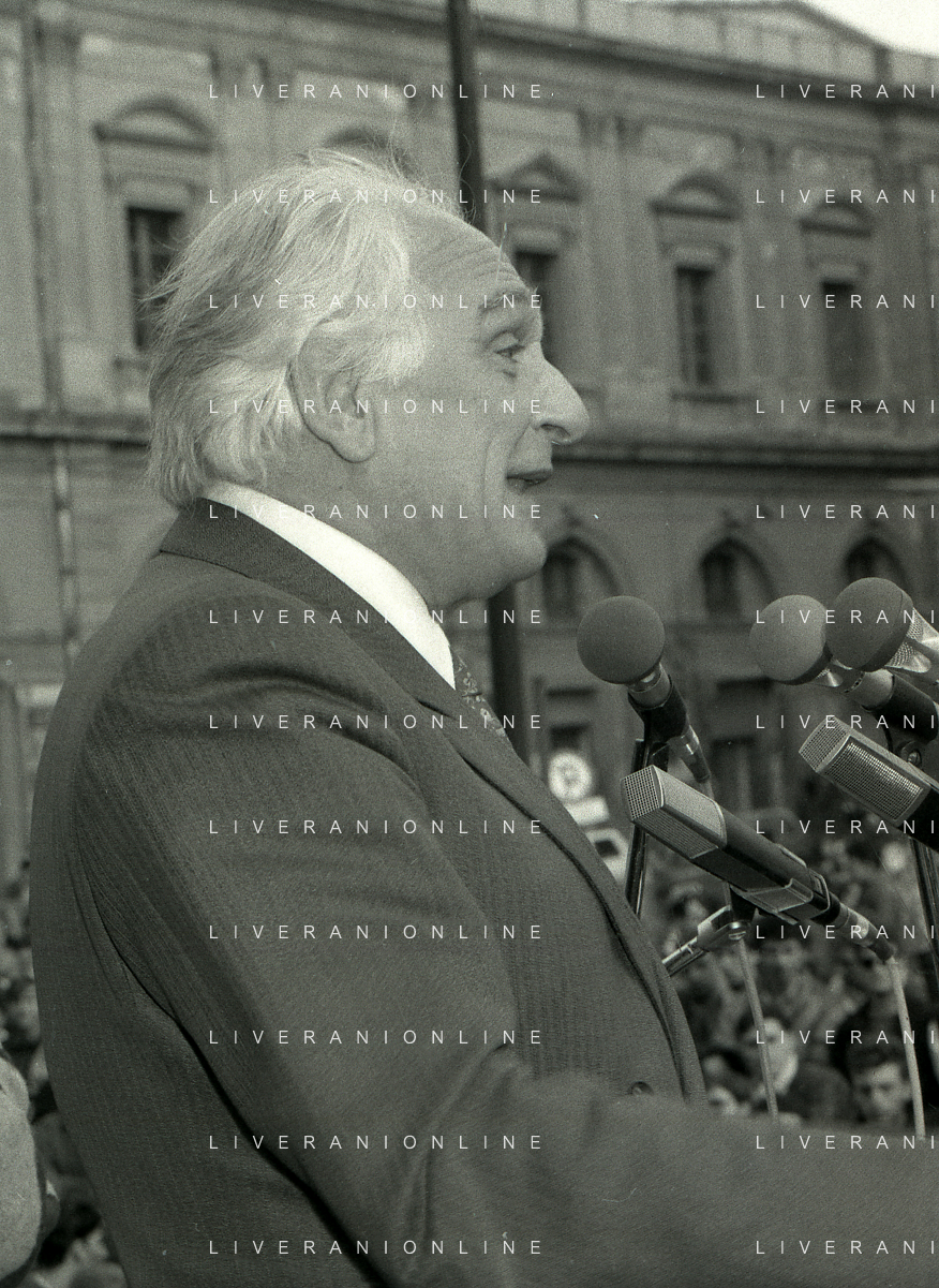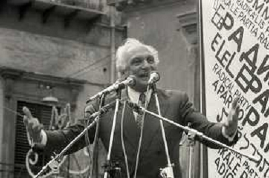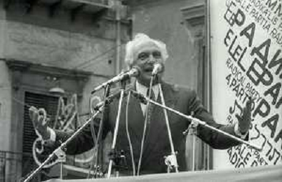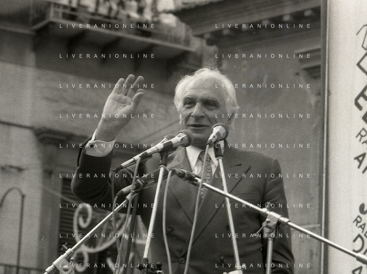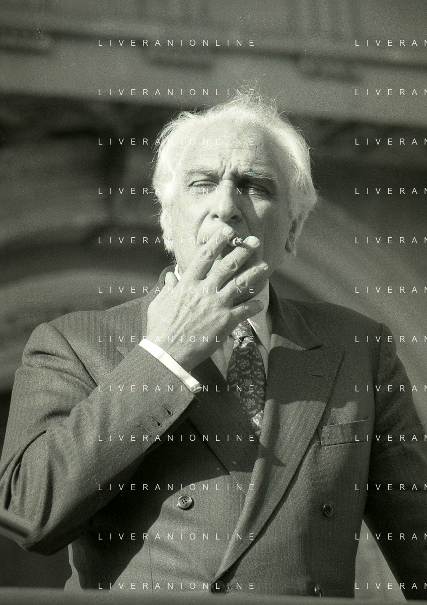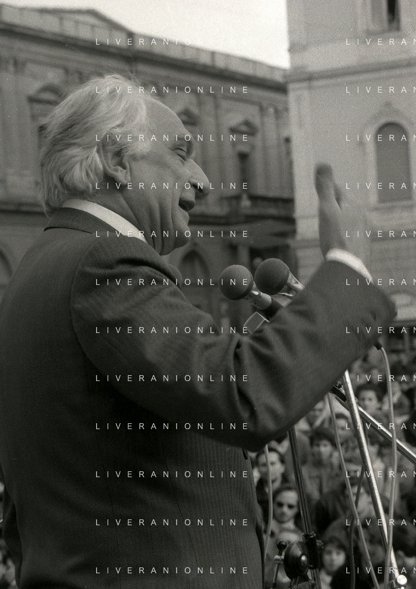 NEG-RETROSPETTIVA MARCO PANNELLA POLITICO NELLA FOTO MARCO PANNELLA NELL'ANNO 1989 A UN COMIZIO A FIRENZE AG ALDO LIVERANI SAS