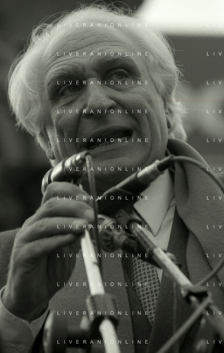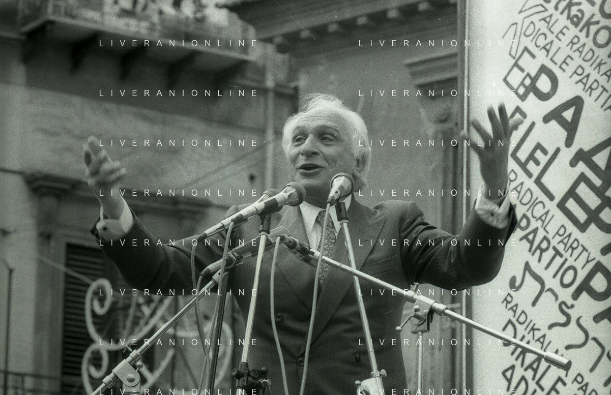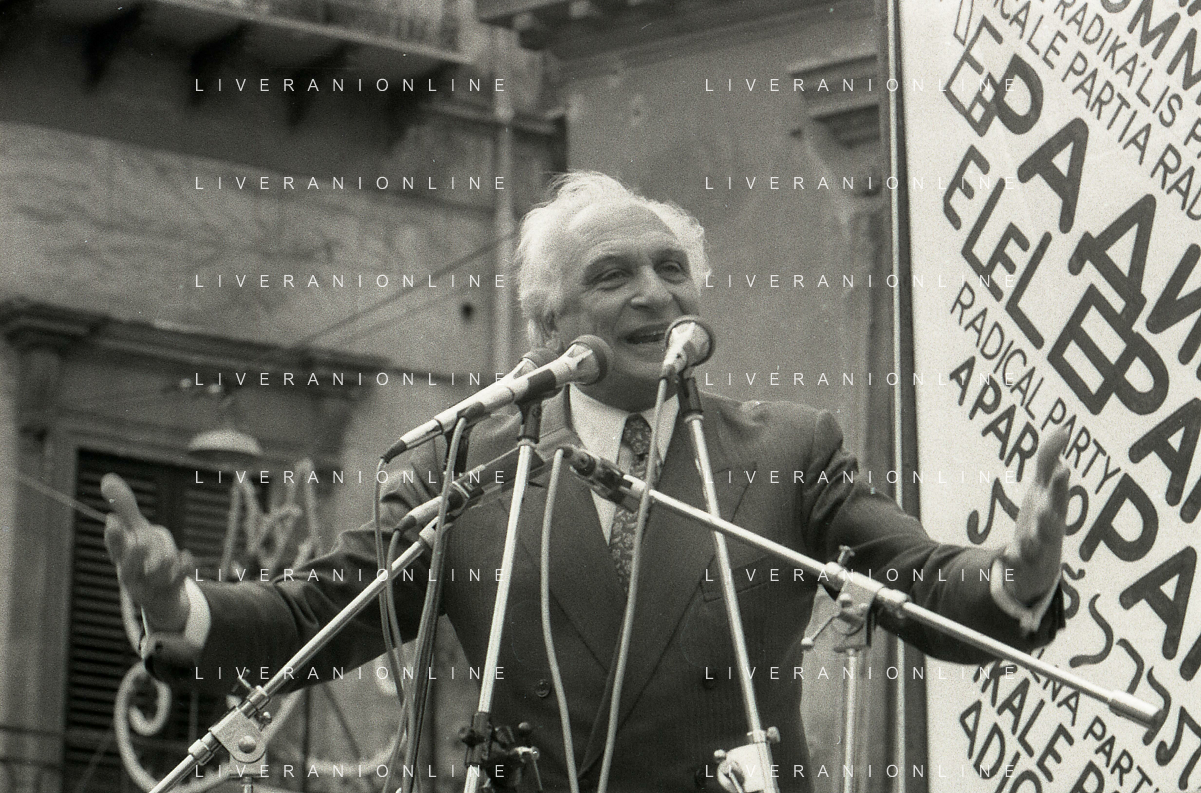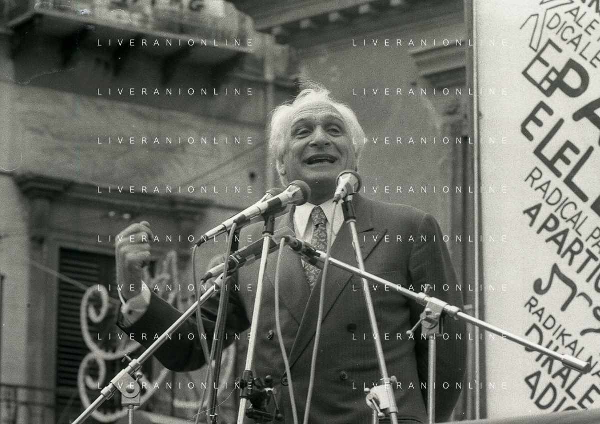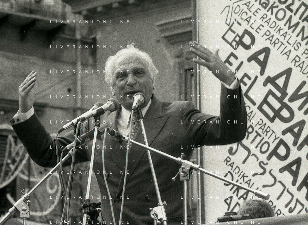 NEG-RETROSPETTIVA MARCO PANNELLA POLITICO NELLA FOTO MARCO PANNELLA NELL'ANNO 1989 A UN COMIZIO AG ALDO LIVERANI SAS