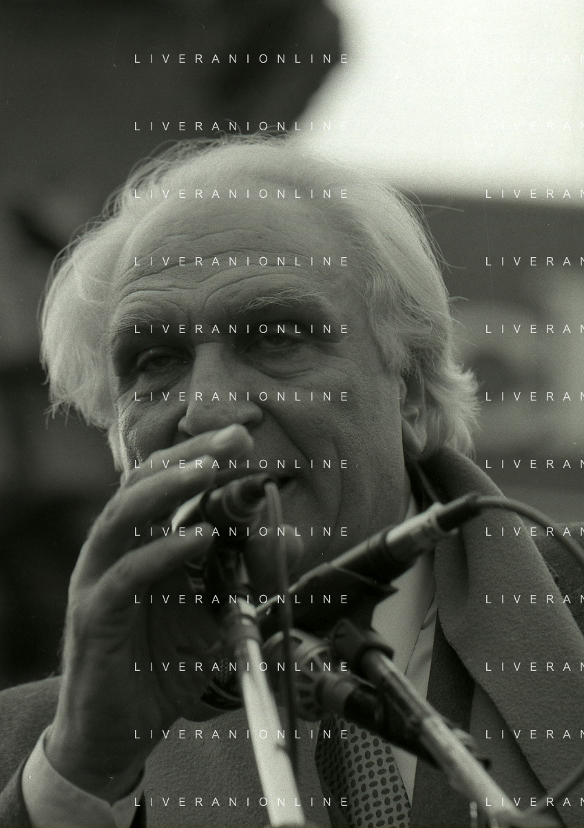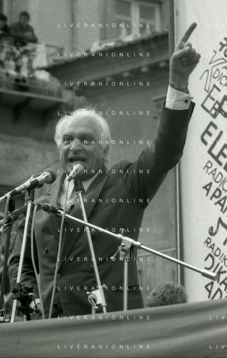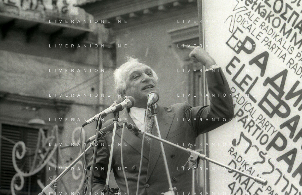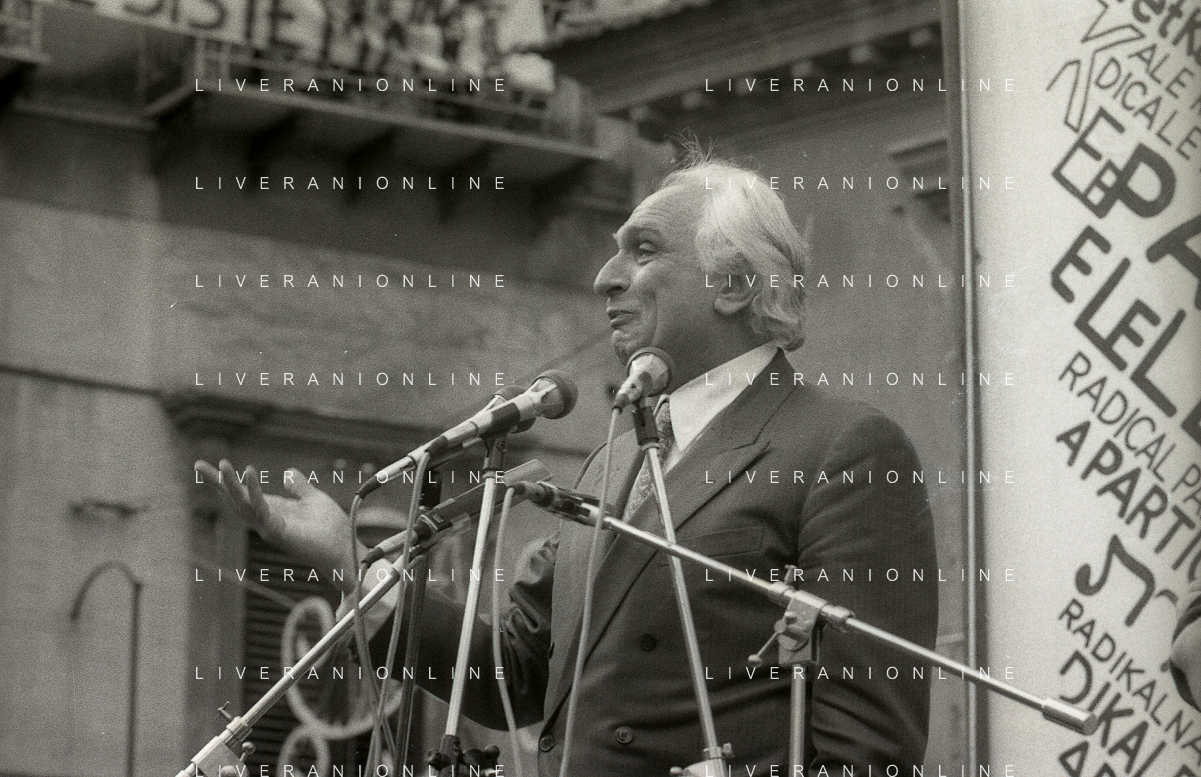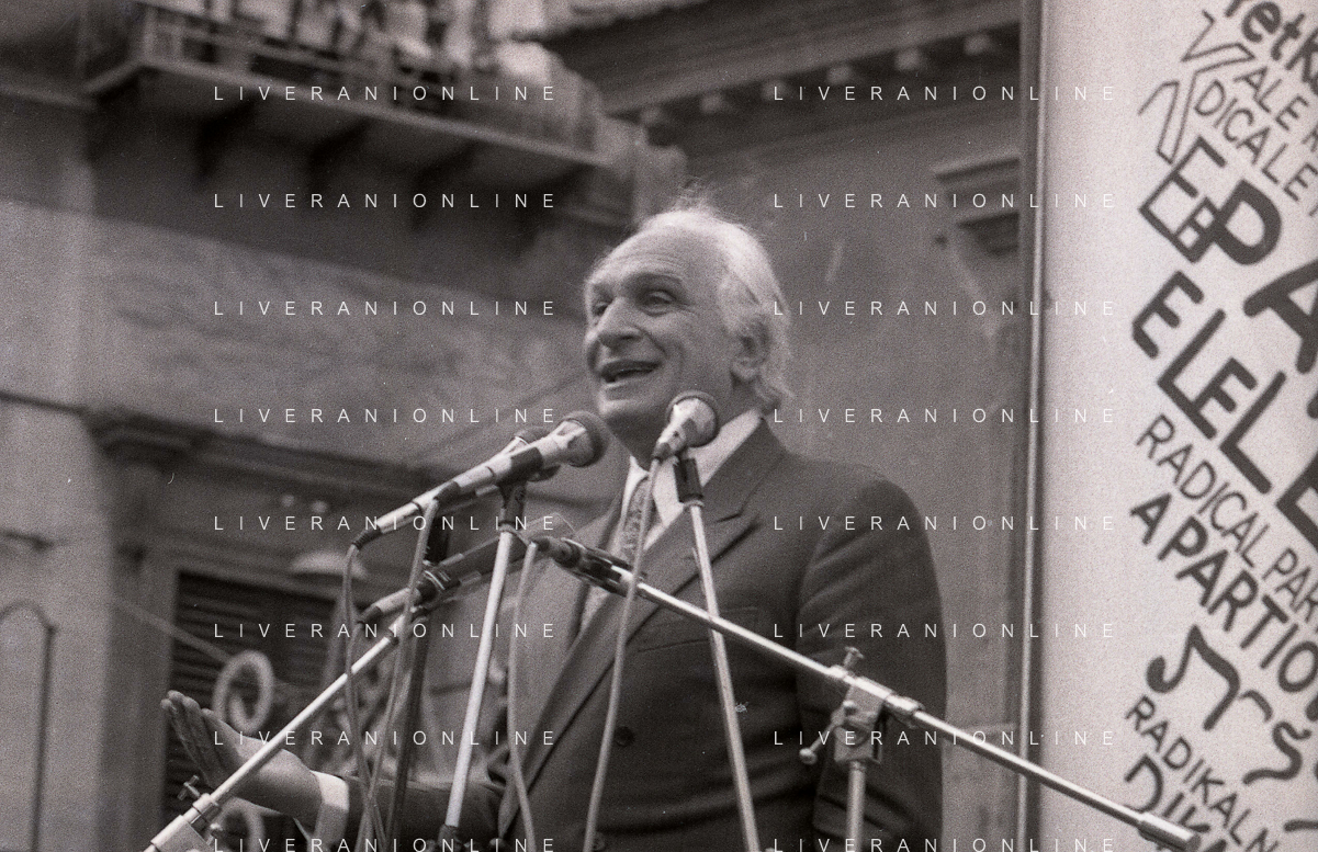 NEG-RETROSPETTIVA MARCO PANNELLA POLITICO NELLA FOTO MARCO PANNELLA NELL'ANNO 1989 A UN COMIZIO AG ALDO LIVERANI SAS