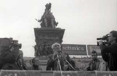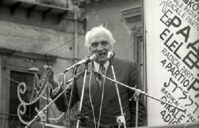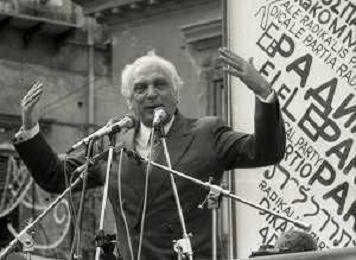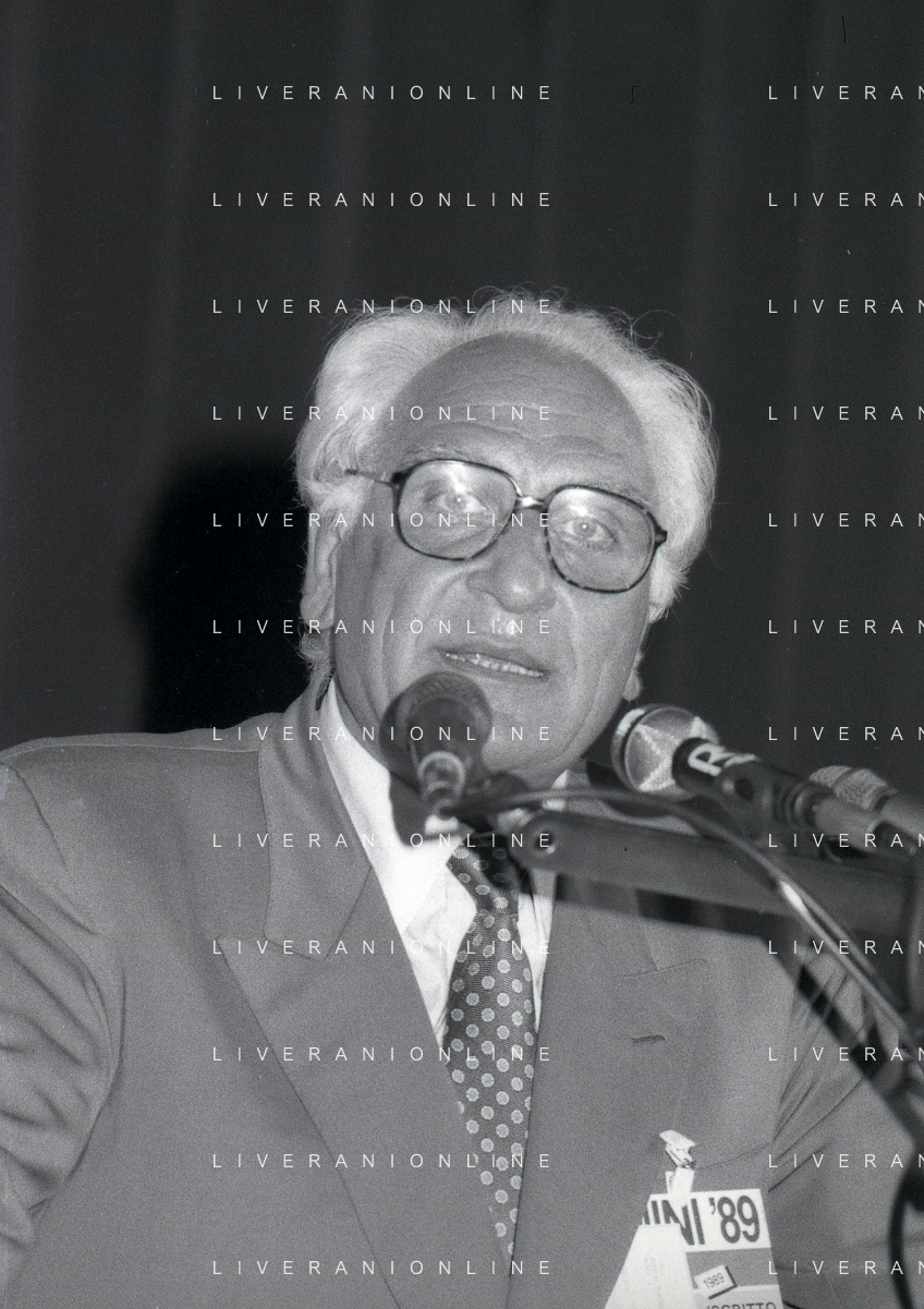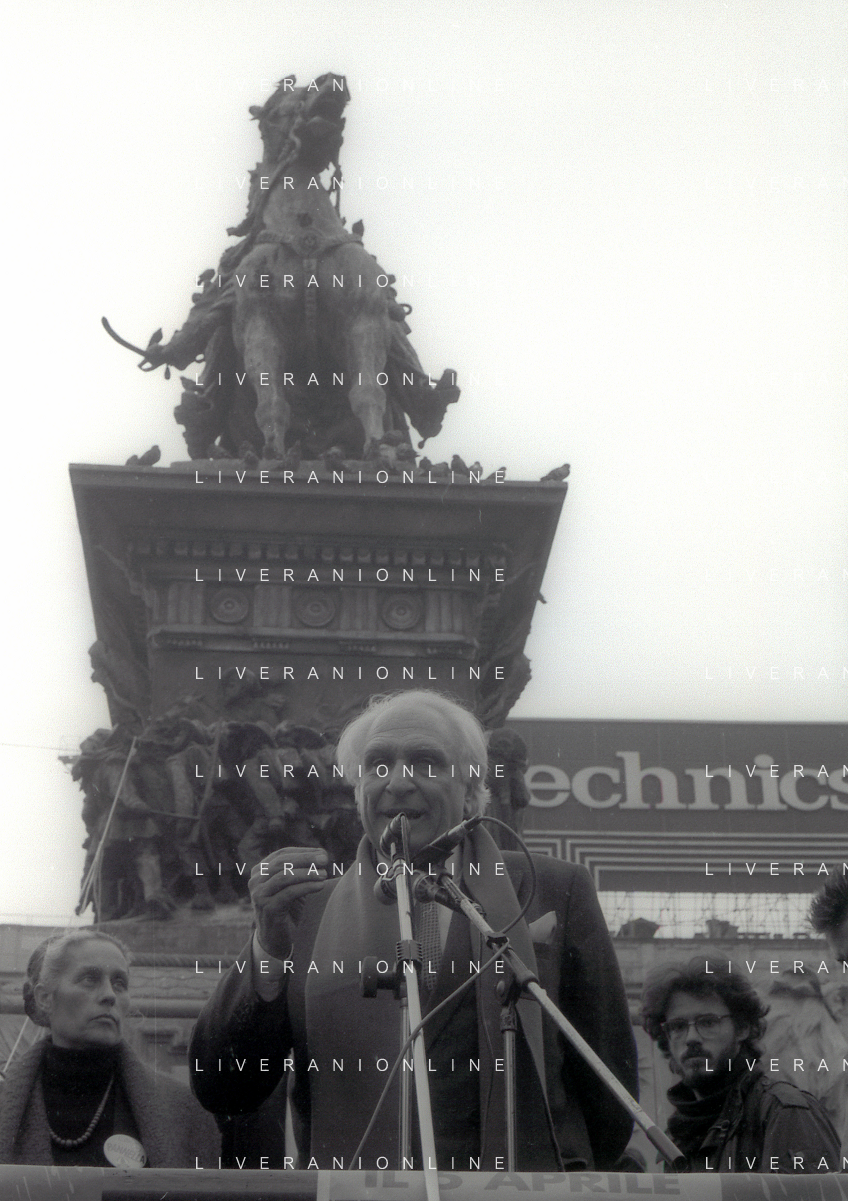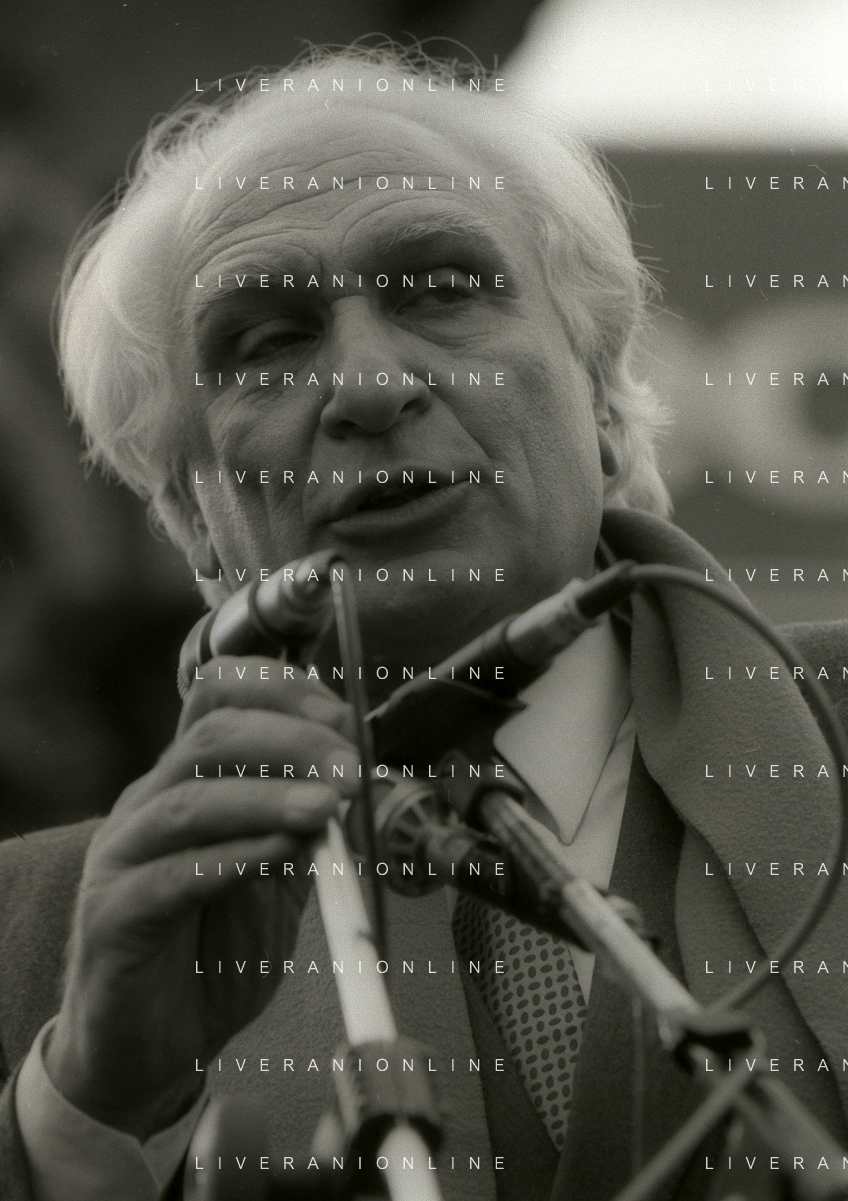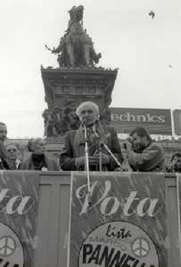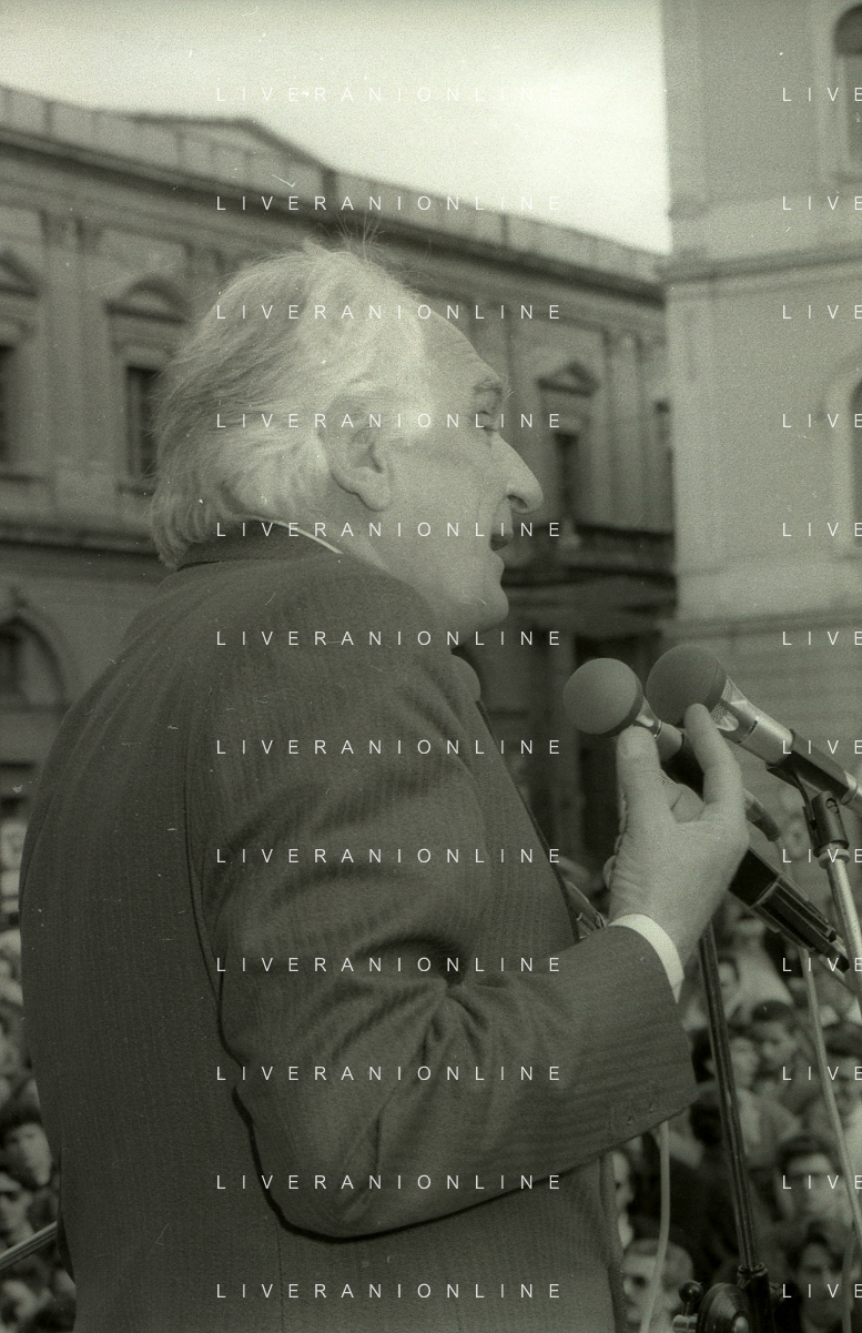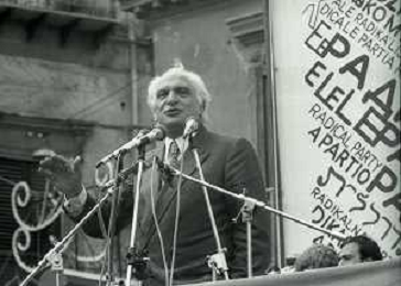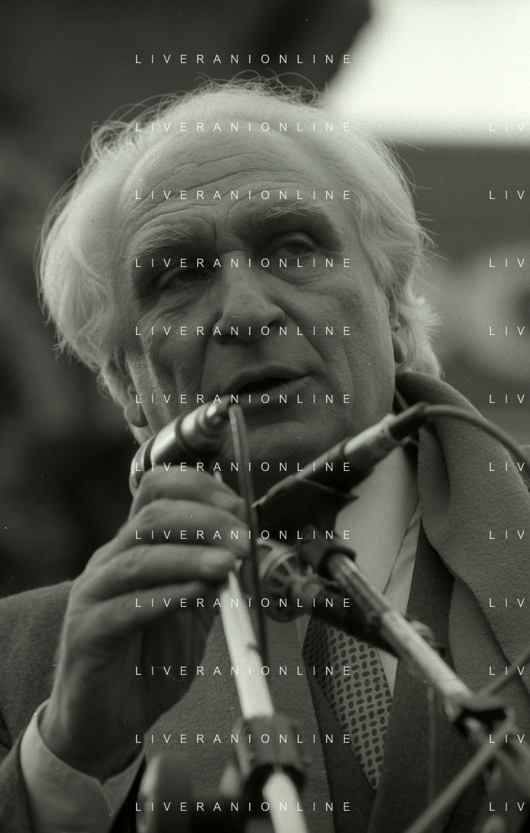 NEG-RETROSPETTIVA MARCO PANNELLA POLITICO NELLA FOTO MARCO PANNELLA NELL'ANNO 1989 A UN COMIZIO AG ALDO LIVERANI SAS