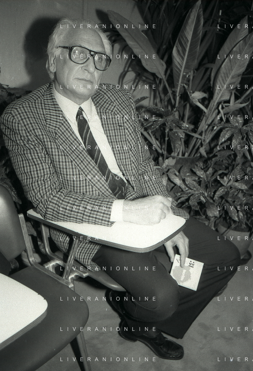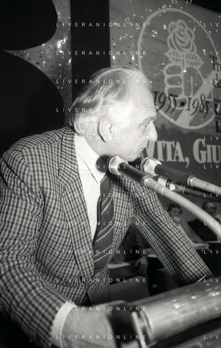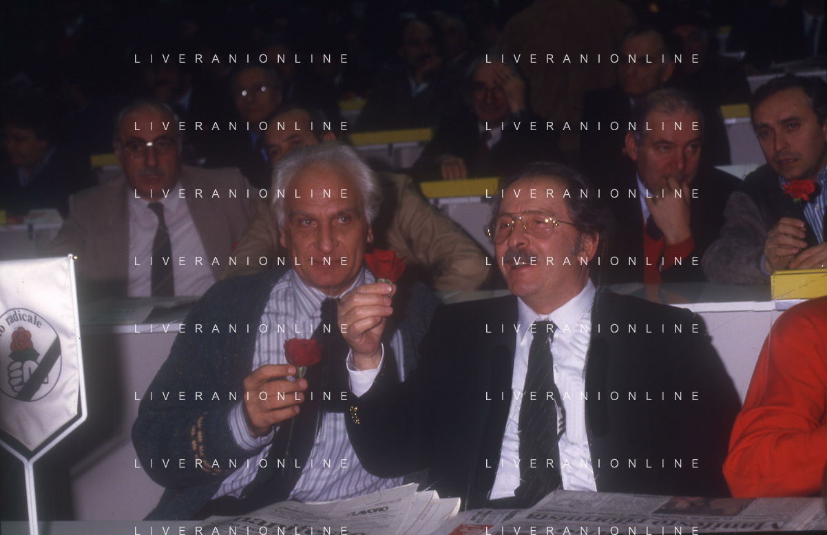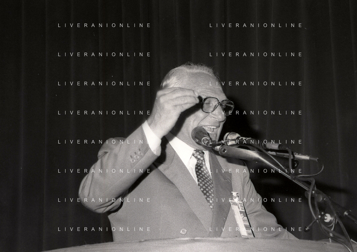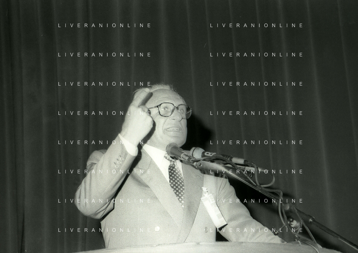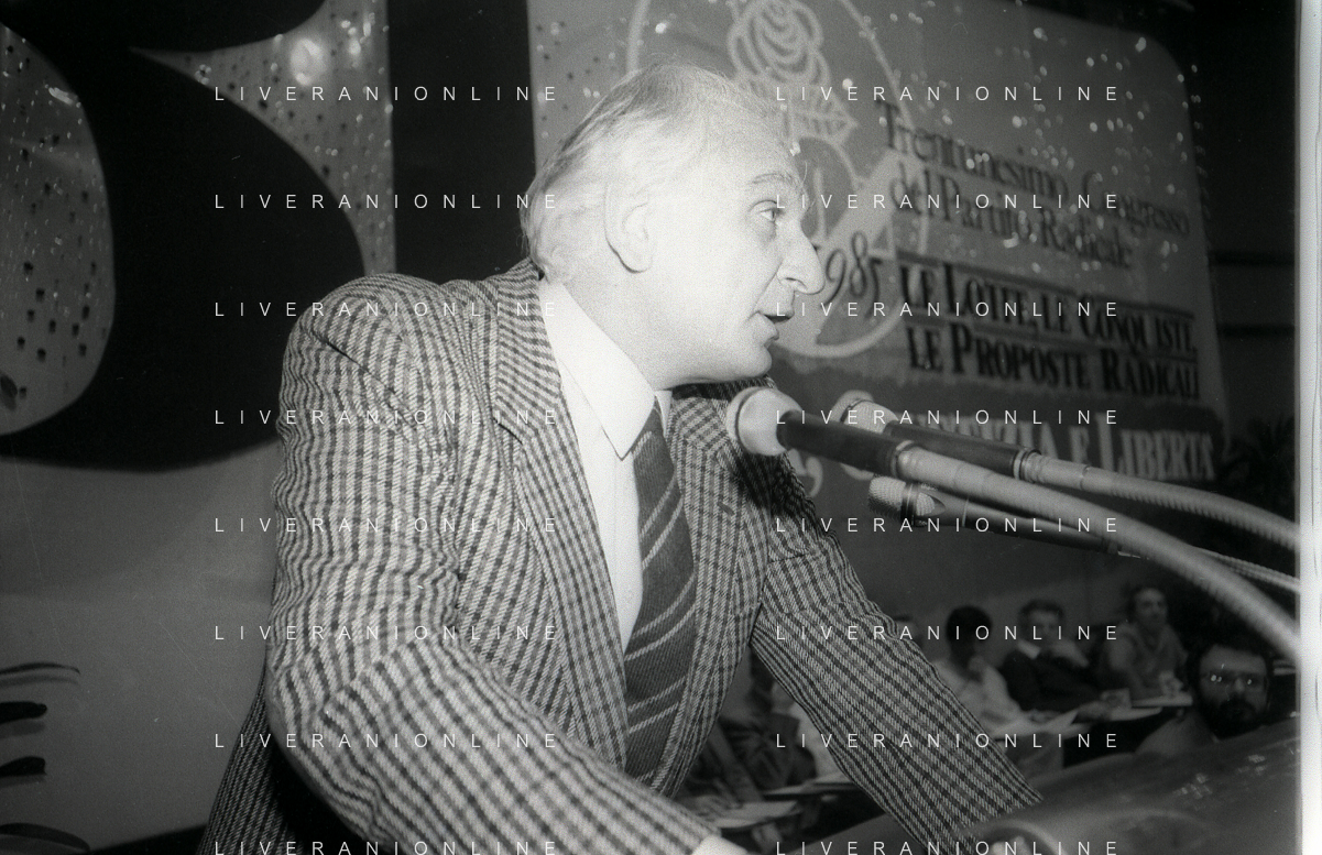 NEG-RETROSPETTIVA MARCO PANNELLA POLITICO NELLA FOTO MARCO PANNELLA NELL'ANNO 1985 A UN CONGRESSO AG ALDO LIVERANI SAS