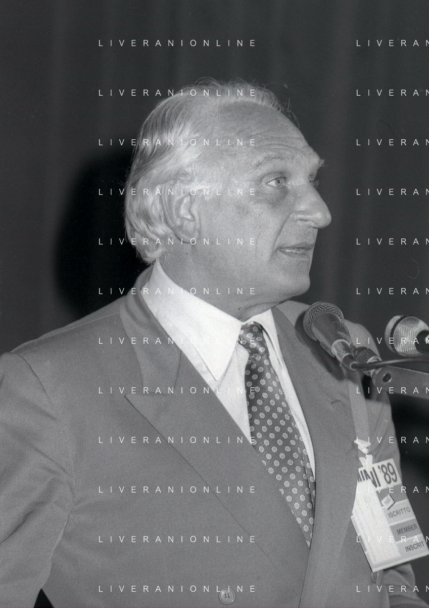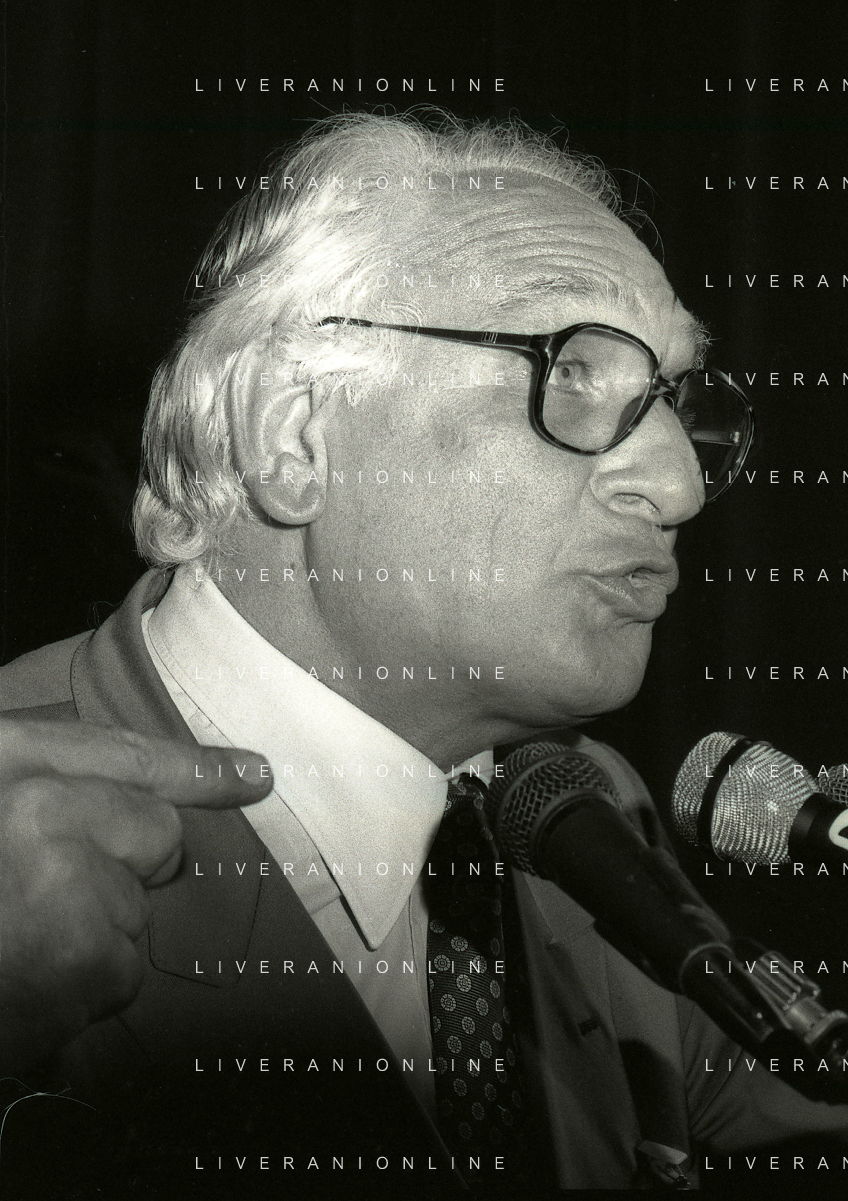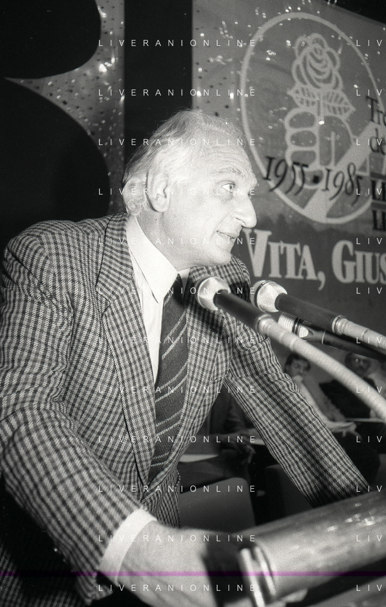 NEG-RETROSPETTIVA MARCO PANNELLA POLITICO NELLA FOTO MARCO PANNELLA NELL'ANNO 1987 A UN CONGRESSO AG ALDO LIVERANI SAS
