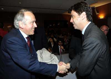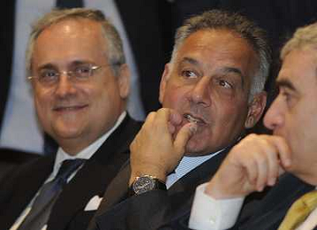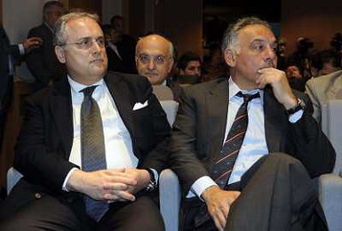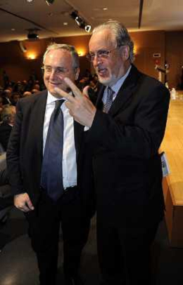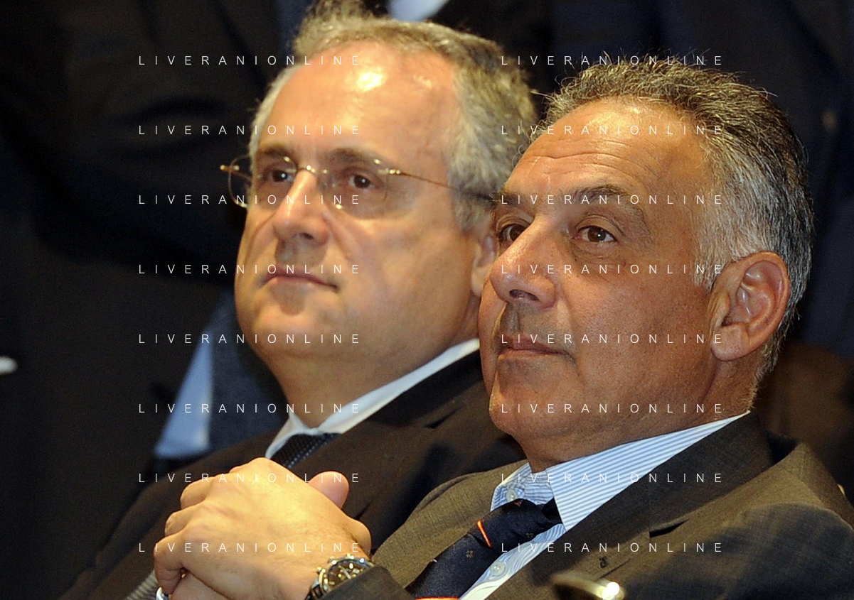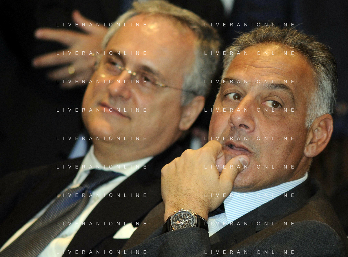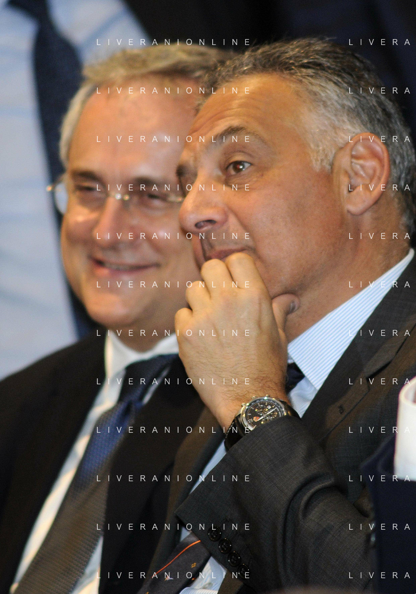 MILANO 20/5/2013 SALA BUZZATI VIA BALZAN, 3 CONVEGNO DELLA GAZZETTA DELLO SPORT: 'IL CALCIO CHE VOGLIAMO' NELLA FOTO JAMES PALLOTTA E CLAUDIO LOTITO FOTO ROMANO/AG ALDO LIVERANI S.A.S.