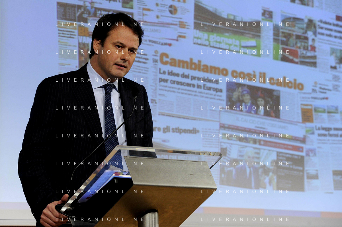 MILANO 20/5/2013 SALA BUZZATI VIA BALZAN, 3 CONVEGNO DELLA GAZZETTA DELLO SPORT: 'IL CALCIO CHE VOGLIAMO' NELLA FOTO PIETRO SCOTT JOVANE AMMINISTRATORE DELEGATO RCS FOTO ROMANO/AG ALDO LIVERANI S.A.S.