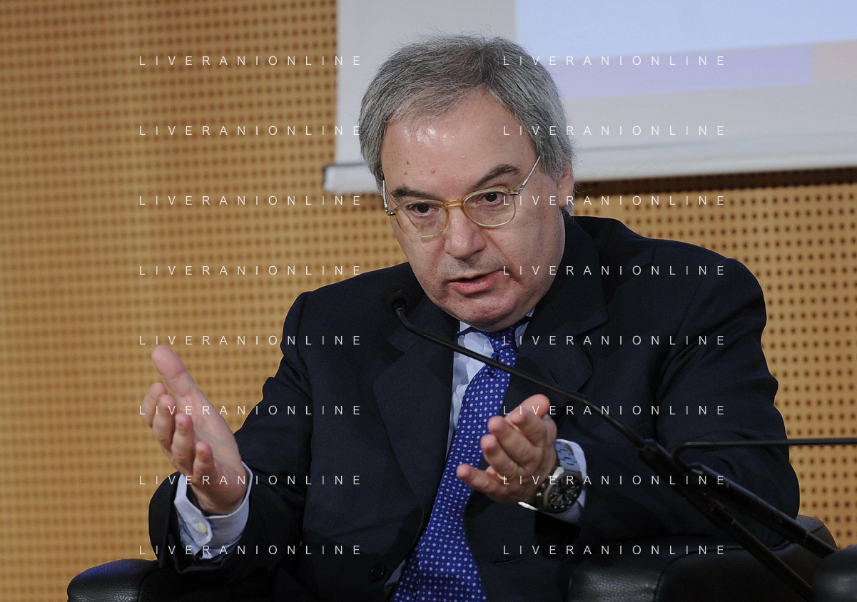 MILANO 20/5/2013 SALA BUZZATI VIA BALZAN, 3 CONVEGNO DELLA GAZZETTA DELLO SPORT: 'IL CALCIO CHE VOGLIAMO' NELLA FOTO FRANCO CARRARO FOTO ROMANO/AG ALDO LIVERANI S.A.S.